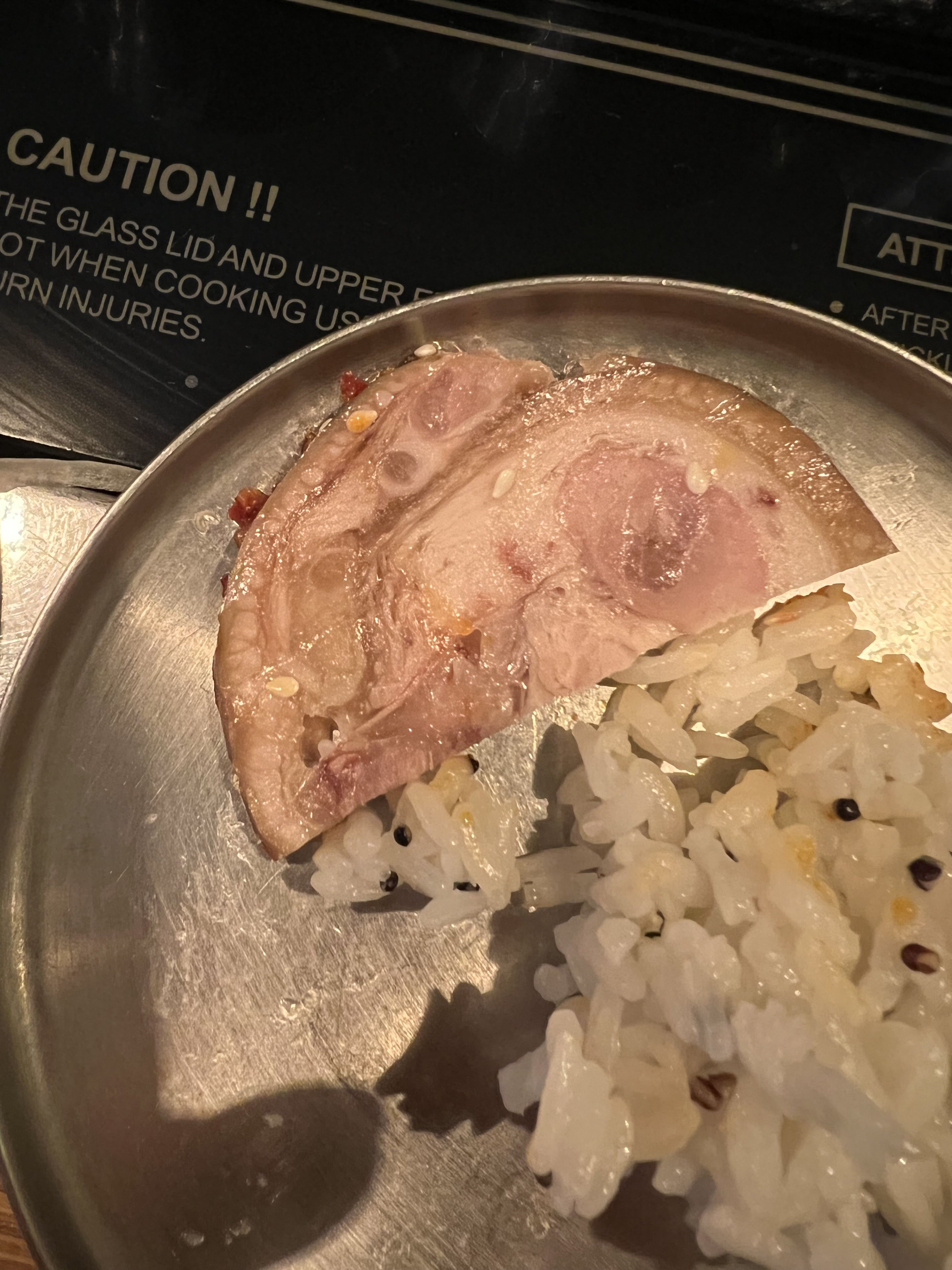 고기 두꺼워 마쒸쫘나… ❤️ Impeccable. Je vois pourquoi ce resto est connu dans la communauté coréenne. La qualité de la viande, nickel. Déjà c’est bien épais, donc même s’il est bien grillé il en reste encore du jus dedans 🥰❤️ les accompagnements aussi, très bons🤤.. et le service est bien rapide.