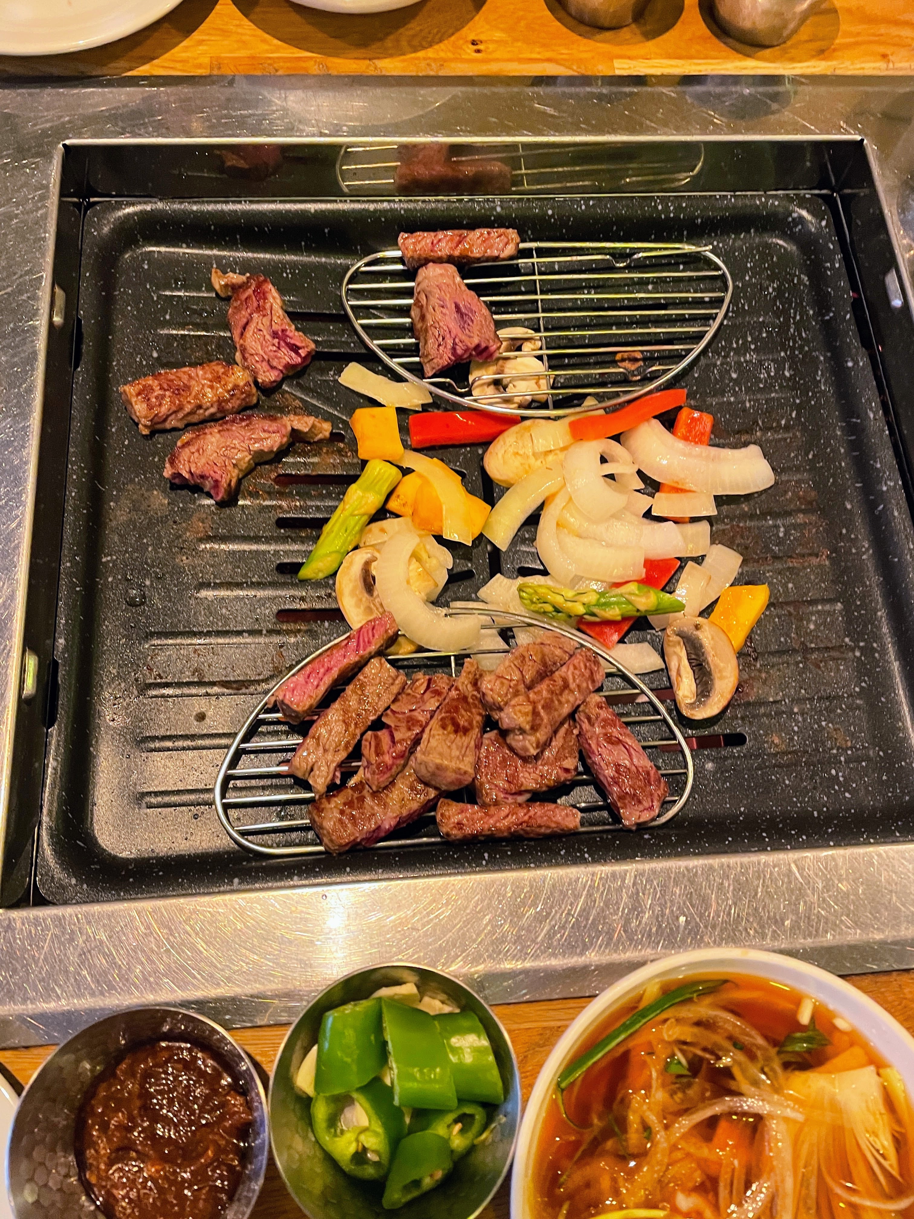 Le barbecue est génial dans ce restaurant korean, le menu est copieux, on passe un très bon moment entre amis.