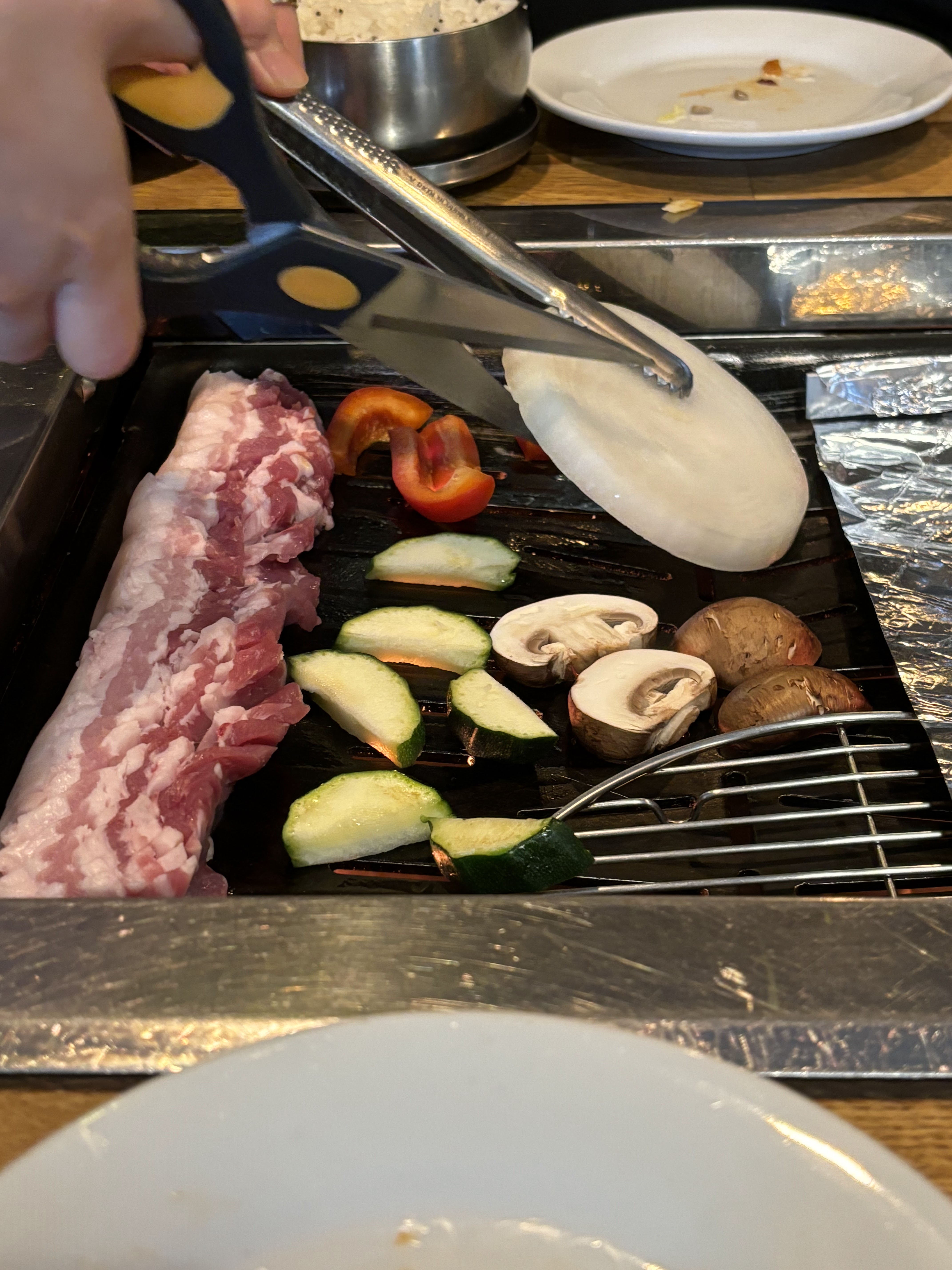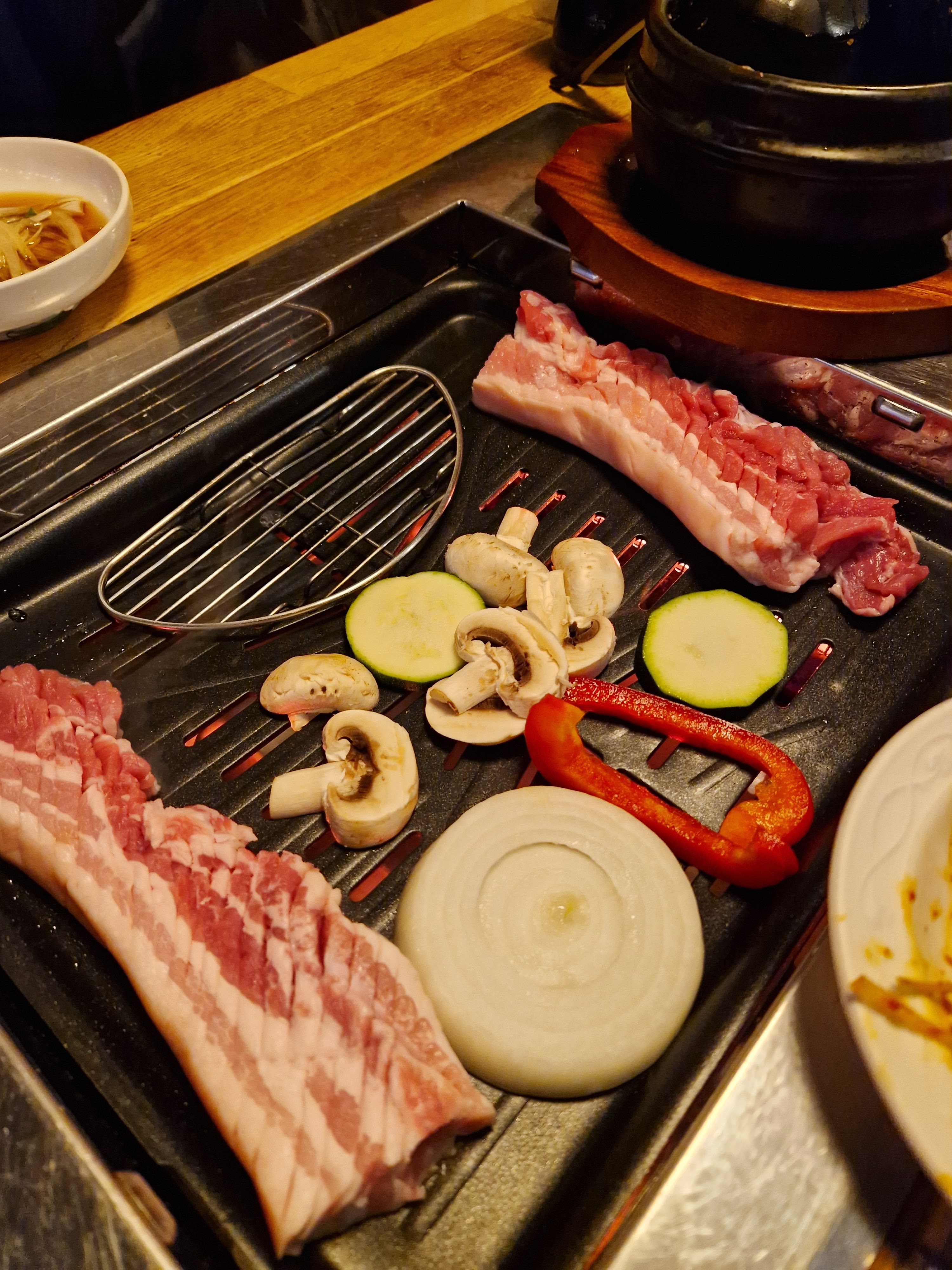 Bon restaurant de barbecue à la coréenne. Le choix est vaste et les prix abordables et comme souvent chez dans ces restaurants on se retrouve avec une table pleine d'accompagnements très bons. Mention spéciale pour le bingsu énorme ! La grillade est assurée par le personnel jusqu'à la fin.