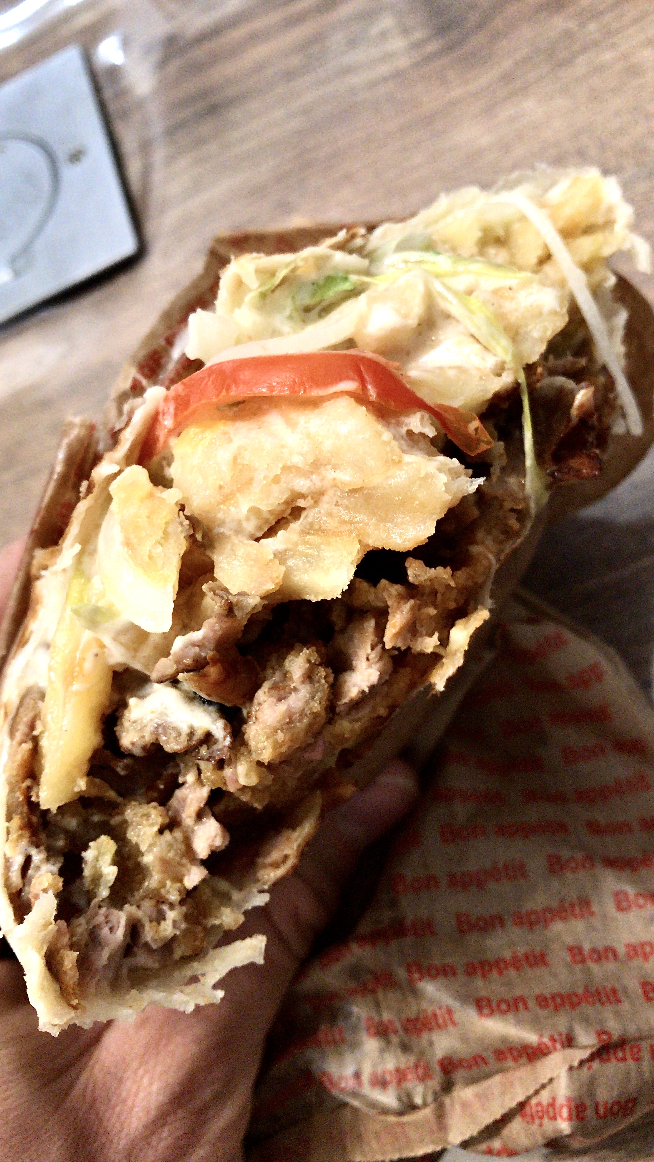 Très bon Kebab, bien garni! Pourvu que ça dure!