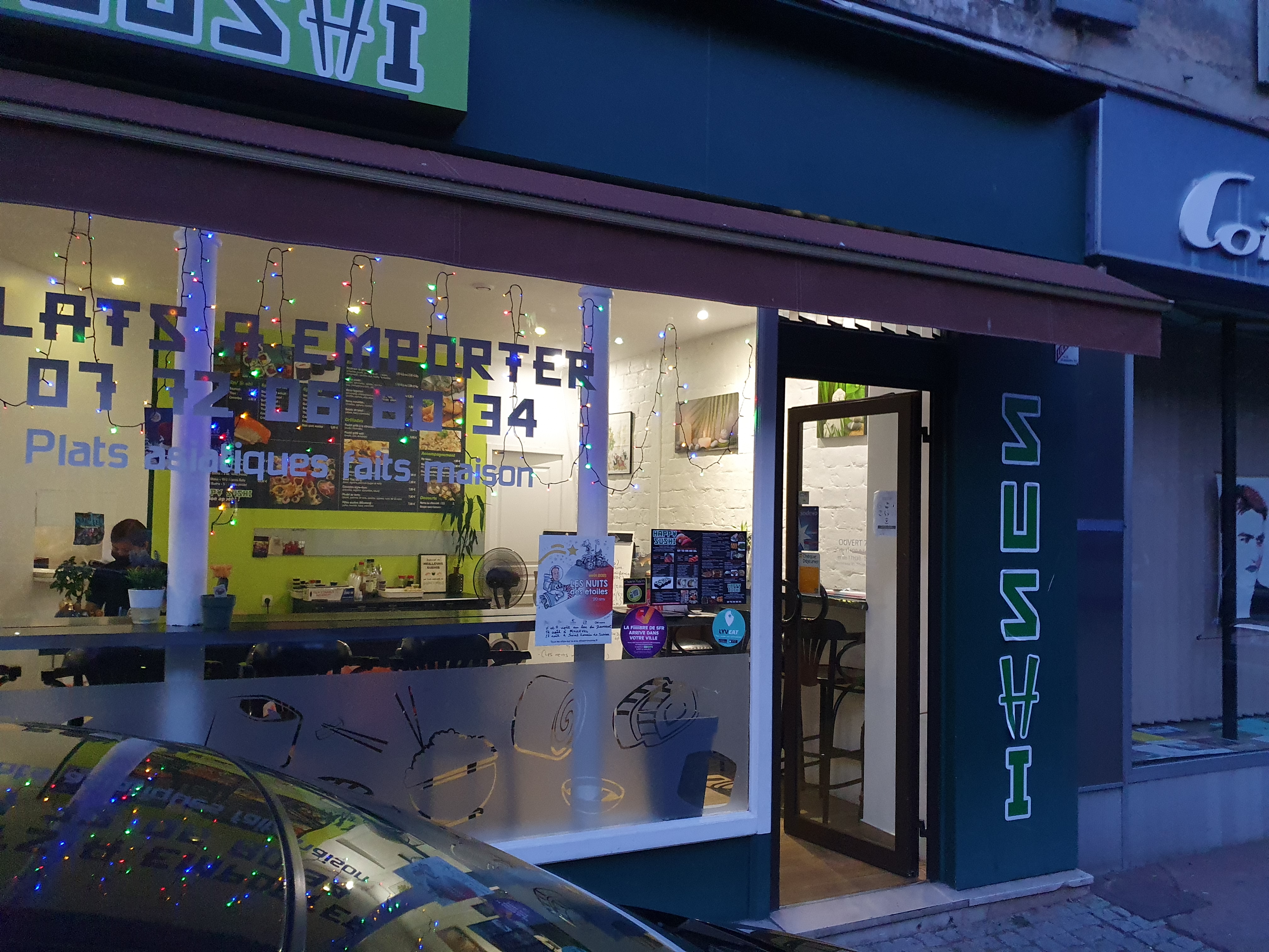 Happy sushi avec mes copines c’est notre lieu , on est fan de thaï et sushi et pour moi ce petit sushi halal en banlieue est pourtant à mes yeux le meilleur, les sushi sont immense et frais, le shirashi incroyable, la qualité le goût c’est juste royale , je suis jamais déçu, les pat Thai épices mes préférées ou le riz curry coco, les brochettes sont excellentes ainsi que la salade de choux, le riz contenais bref j’ai tout essayer et j’aime tout, dommage que j’ai déménagé car nous venions chaque dimanche .
