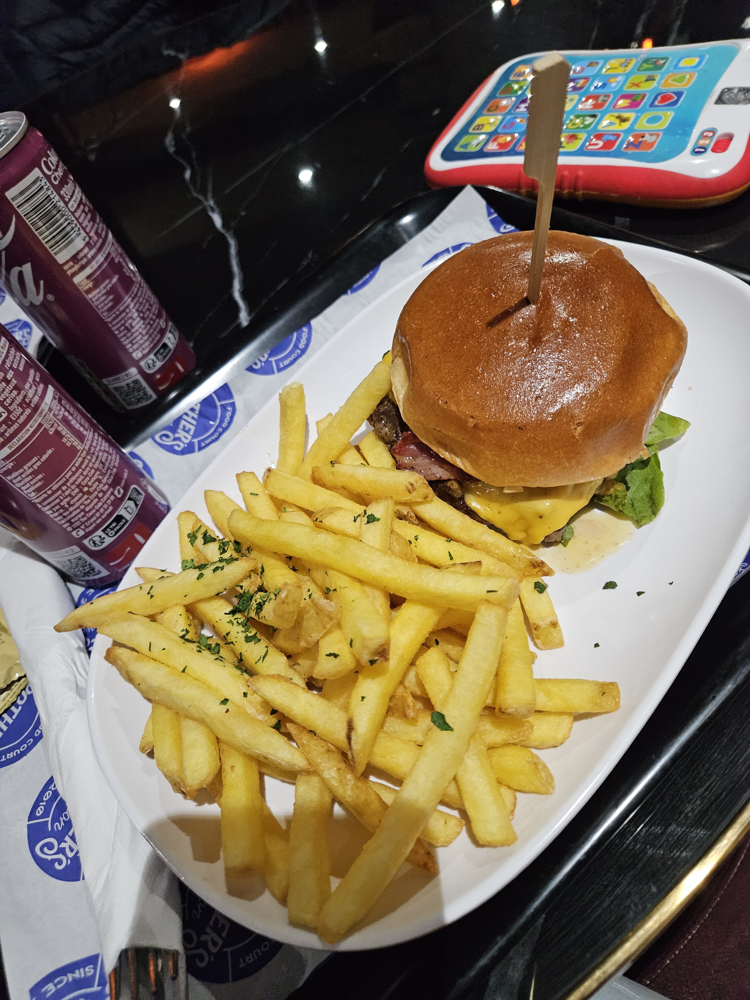 L'endroit est accueillant et la déco geek / street art est magnifique. Le burger bœuf / chèvre/ truffe était très bon. Le burger bacon aussi. Les produits sont frais, les frites sont bonnes. Le cheese cake était très bon aussi. Nous sommes ensuite monté chez Mama Cofee prendre un Milk Shake, ils ont été préparés devant nous, il étaient bons et généreux. Un endroit agréable pour passer un bon moment. Il y a même des espaces jeux et manèges pour les enfants et un barbier. Pour ceux qui critiquent, ils n'en sont qu'à leur première semaine, laissez leur le temps de se mettre en place et de se roder. En tout cas merci pour ce nouvel espace de vie de quartier qui manquait en périphérie de la ville.