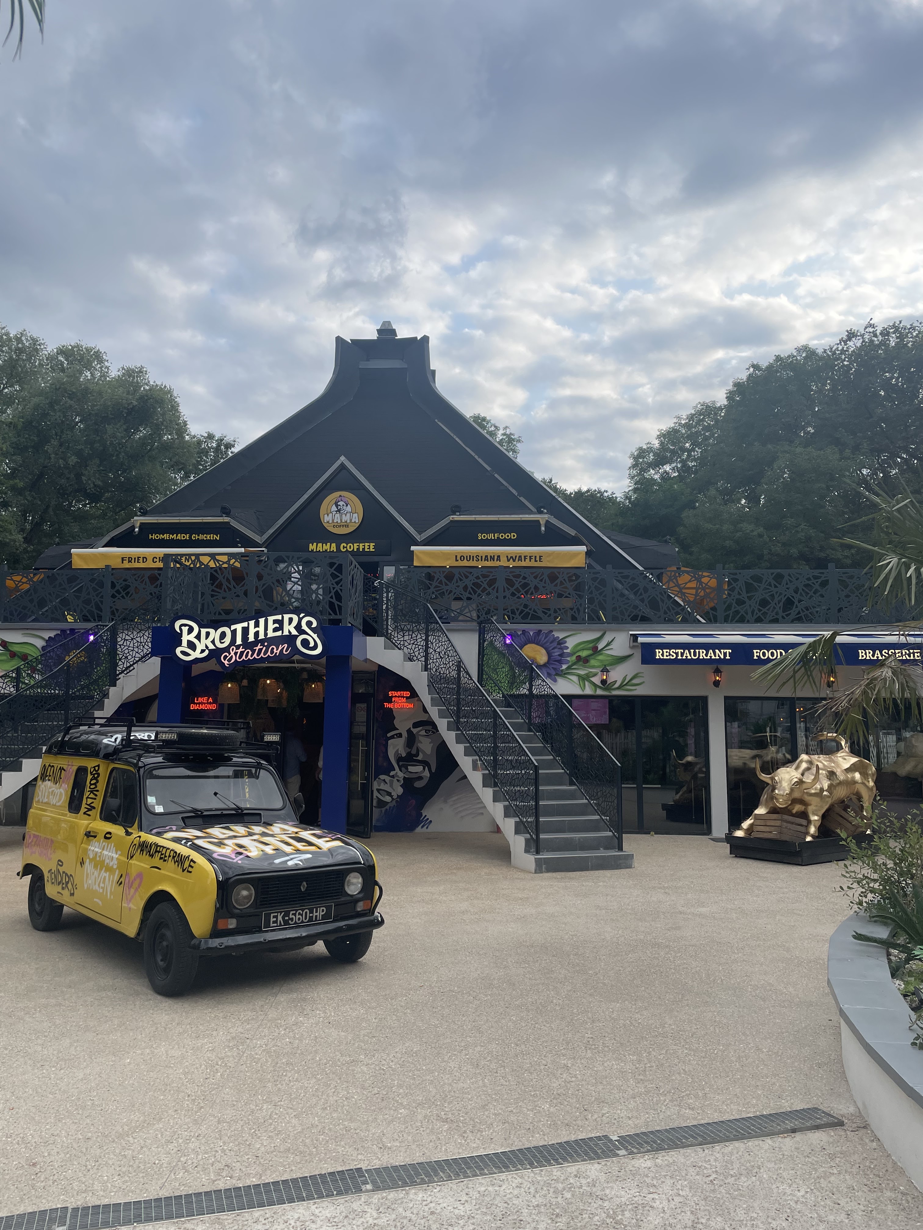 Nous avons adoré manger à Harmonie village, plusieurs restaurants en un. Activités pour enfants. J'ai choisi un menu Thai, c'était au top. Le prix est abordable, tu commandes à une borne et tu récupères ensuite ton plateau avec le plat et tu t'installes où tu veux. Nous avons été accueillis à l'entrée par un monsieur qui nous a expliqué le concept. On s'est installé à notre table, ambiance musicale au top. Les enfants se sont amusés. Même leurs toilettes femmes sont stylés 😂