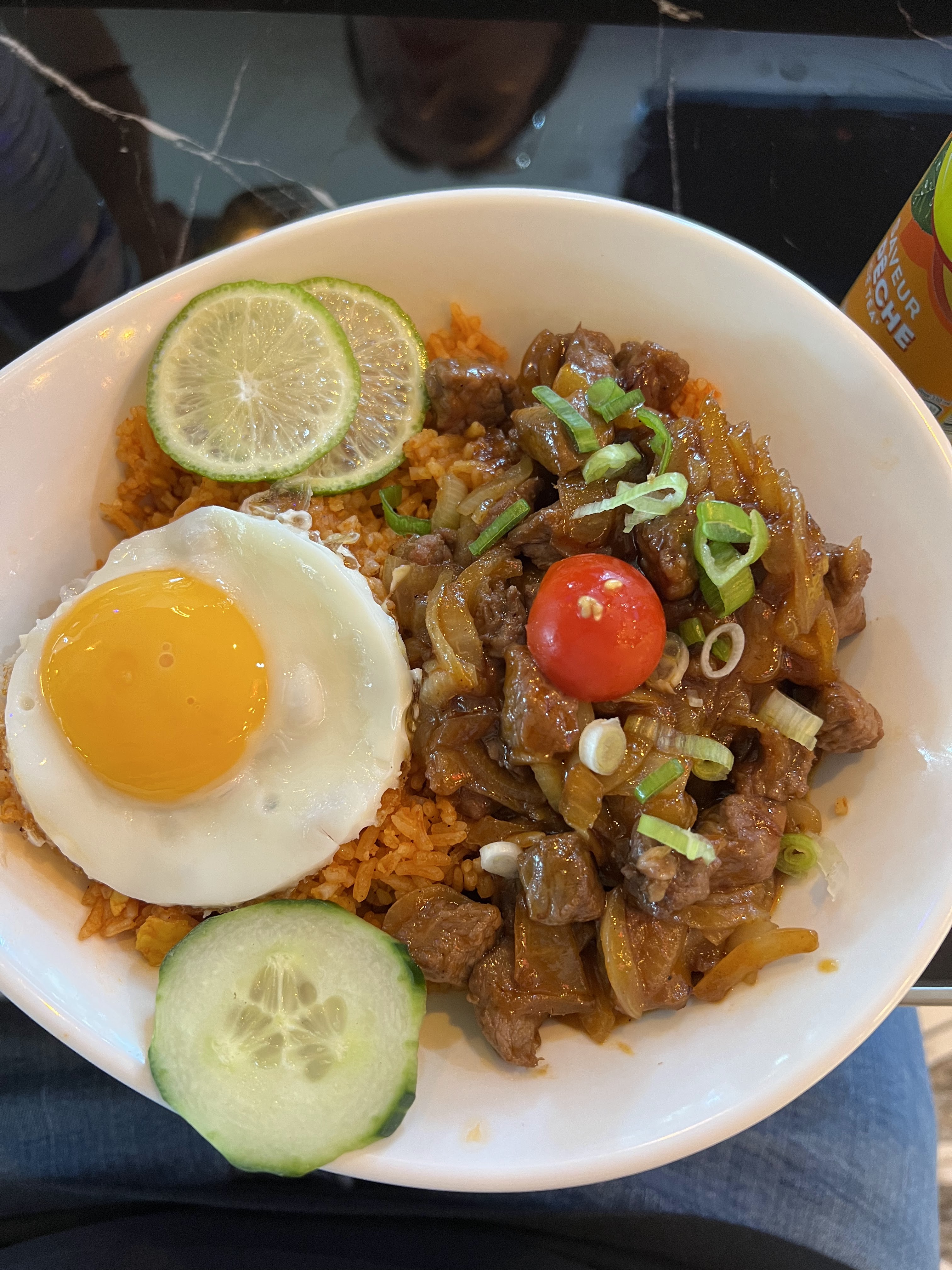 Le lok lak est vraiment horrible. On ne retrouve pas les marqueurs du plat originelle. La pizza était vraiment basique ,soit disant pour une pizza feu de bois Mais c'est vraiment dommage d'avoir tout miser sur le décor mais peu dans la nourriture ... Vraiment déçu.
