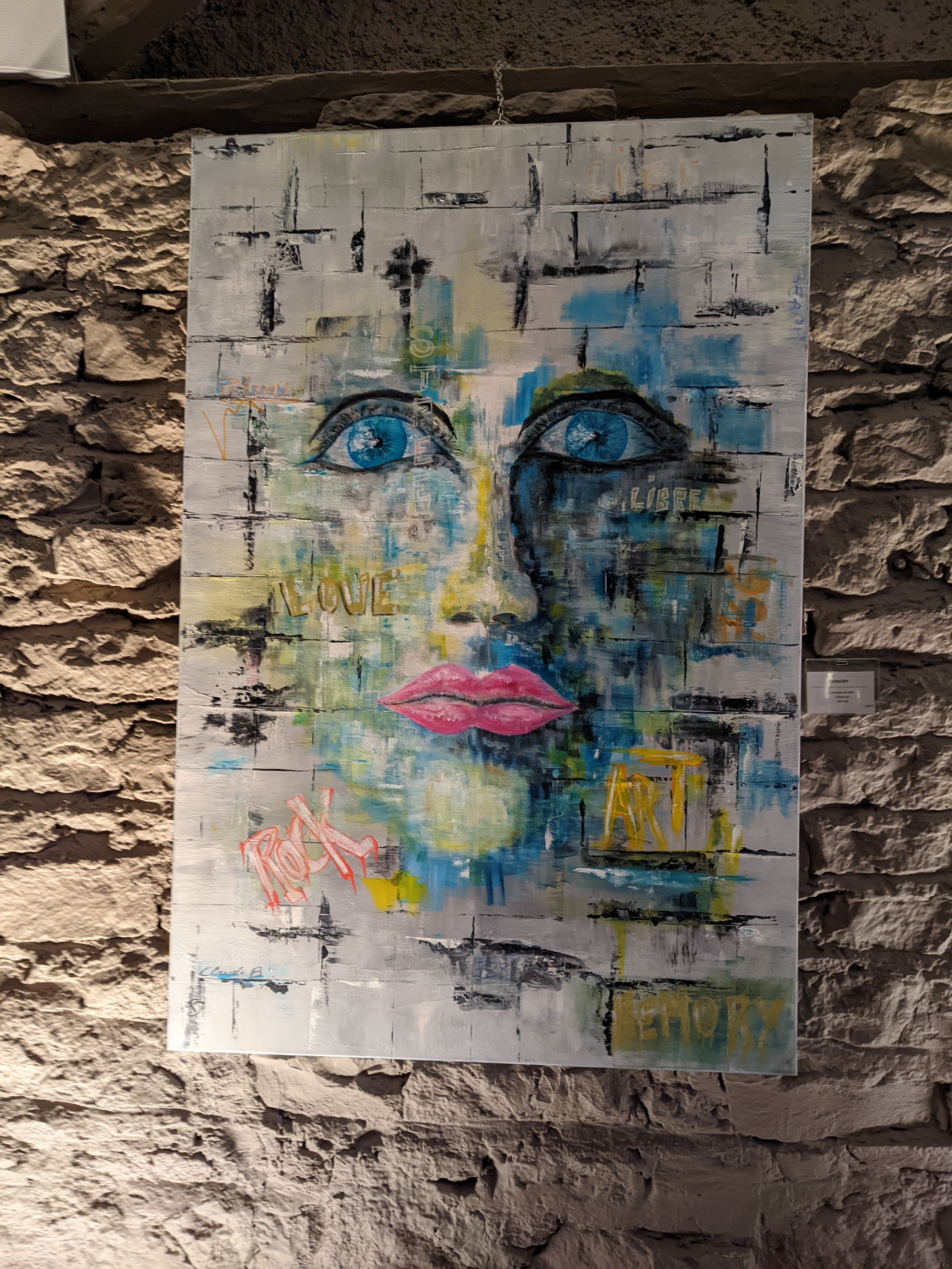 Bonne ambiance avec les peintures , bonne fromage et du vin! Hautement recommandé !