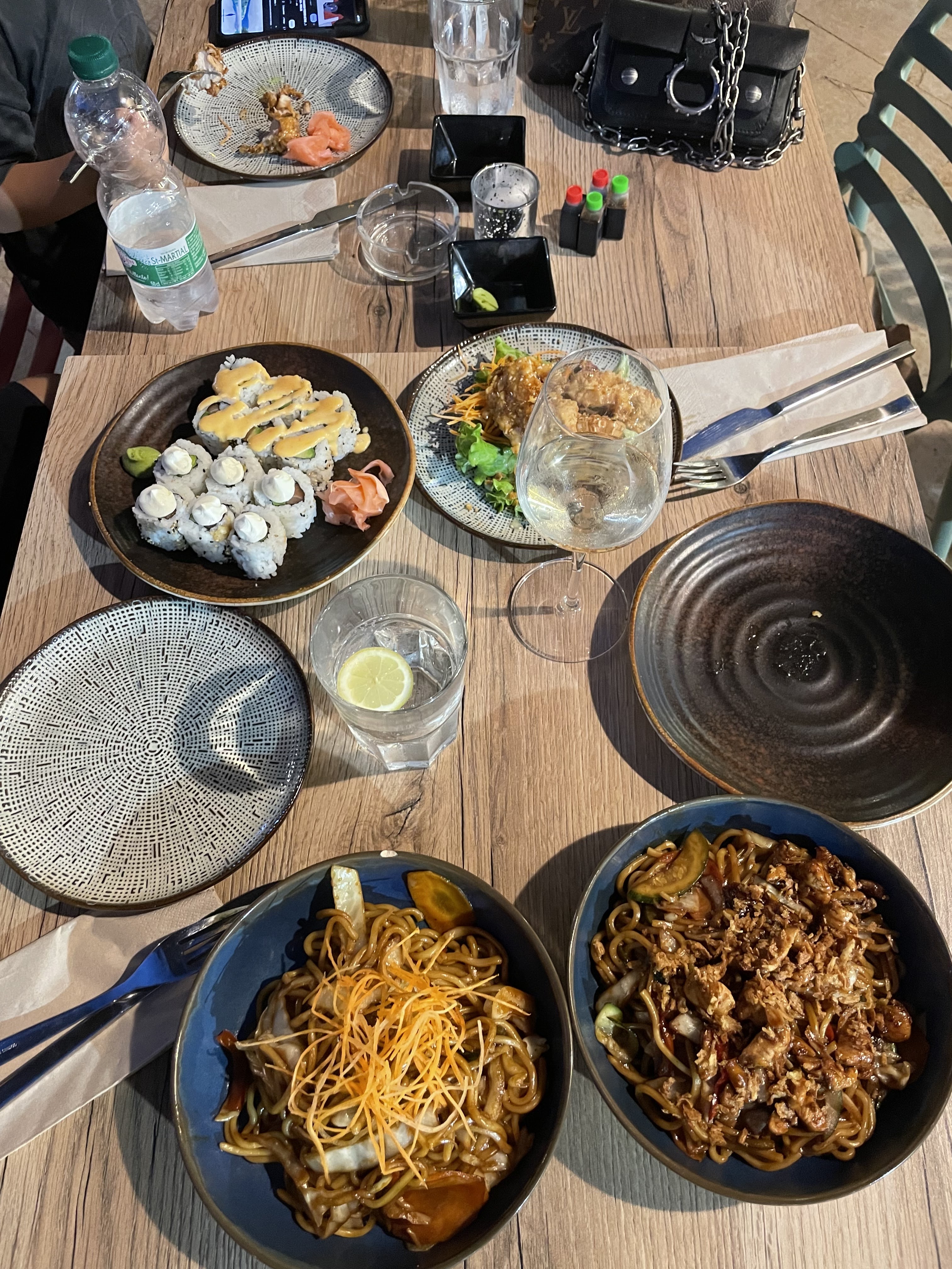 Effarant de lire un avis négatif sur ce restaurant en comparaison d'en autre restaurant japonais tropézien !... Sinon volontairement orienté !? Nous avons partagé tout au contraire un très bon moment en famille autour de plat excellents et généreux. Le service est top et l'accueil chalereux. La place sous les pins est calme. A recommander vivement.