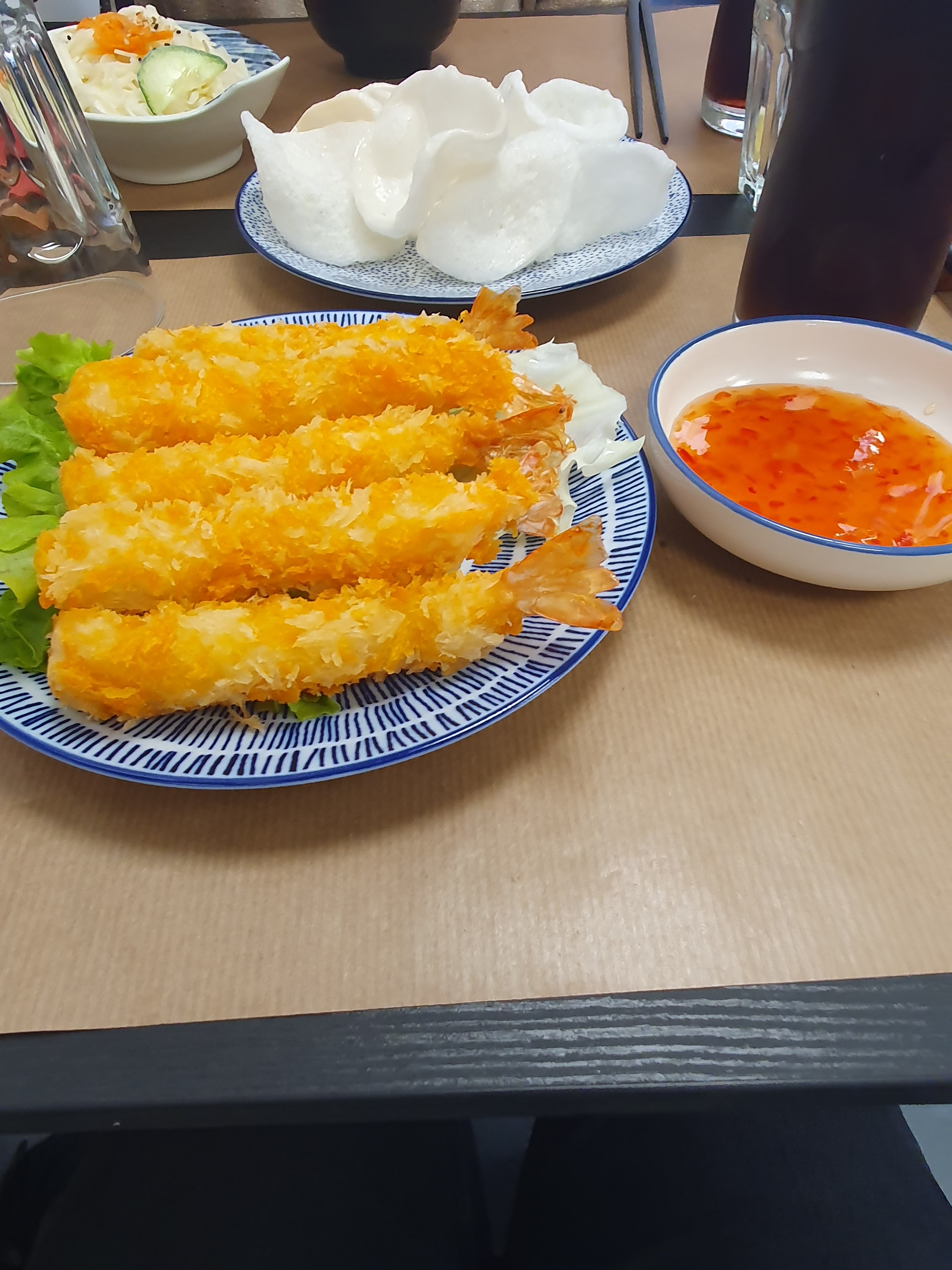 Génial, l'ambiance est agréable,les chaises sont confortables, il y a de jolies décoration,la salle est petite mais calme, le service est plutôt rapide. Au niveau de la nourriture, un délice 🤭 (attention sauce chili piquante) si vous pouvez Allez 🤣⭐