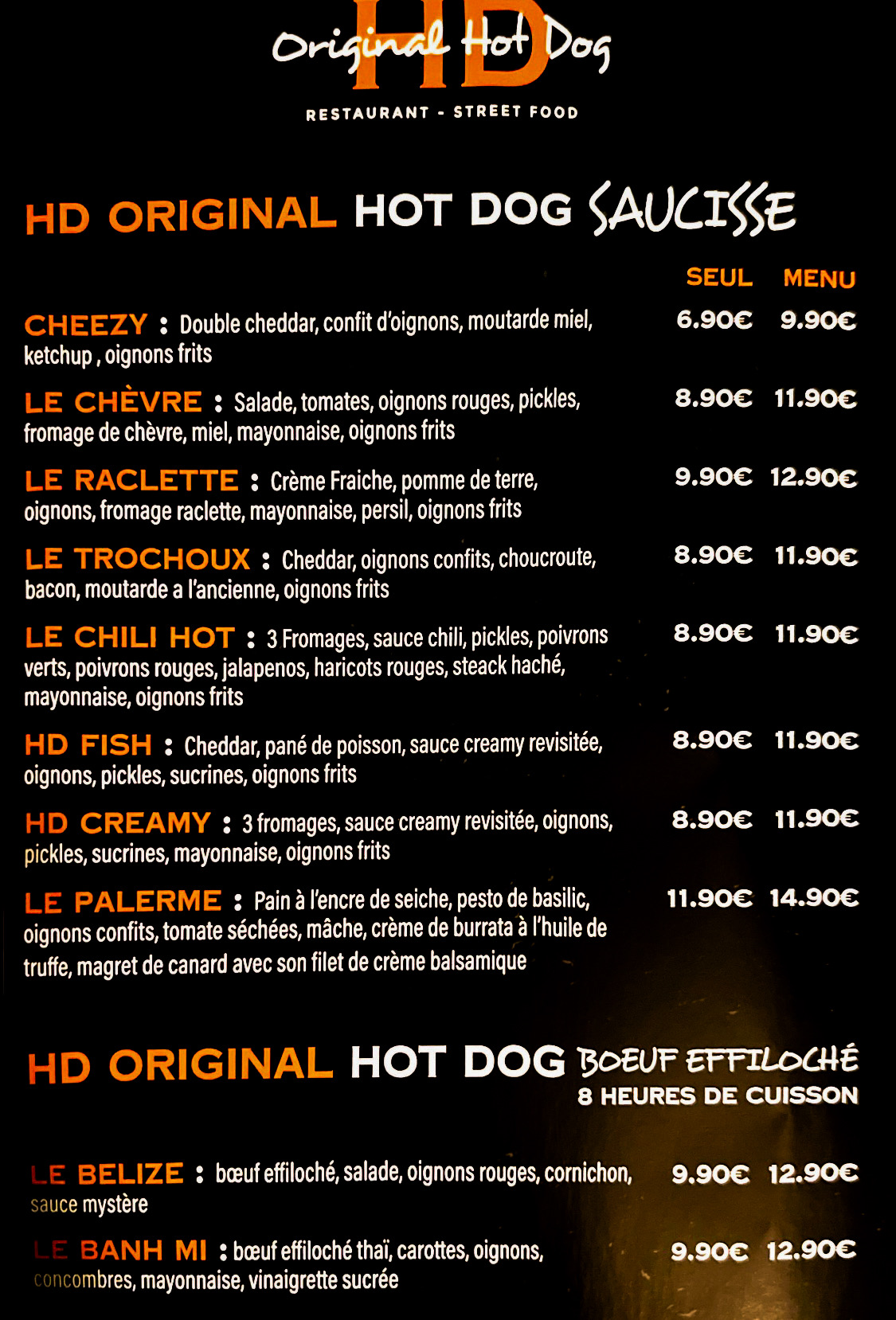 Quelle belle découverte ce soir là où plusieurs restaurants fermaient leurs portes à 21h, nous avons été très bien accueilli au HD Original Hot Dog. Très bonne qualité de leurs produits Le tout pour un tarif très honnête Merci pour ce bon moment.
