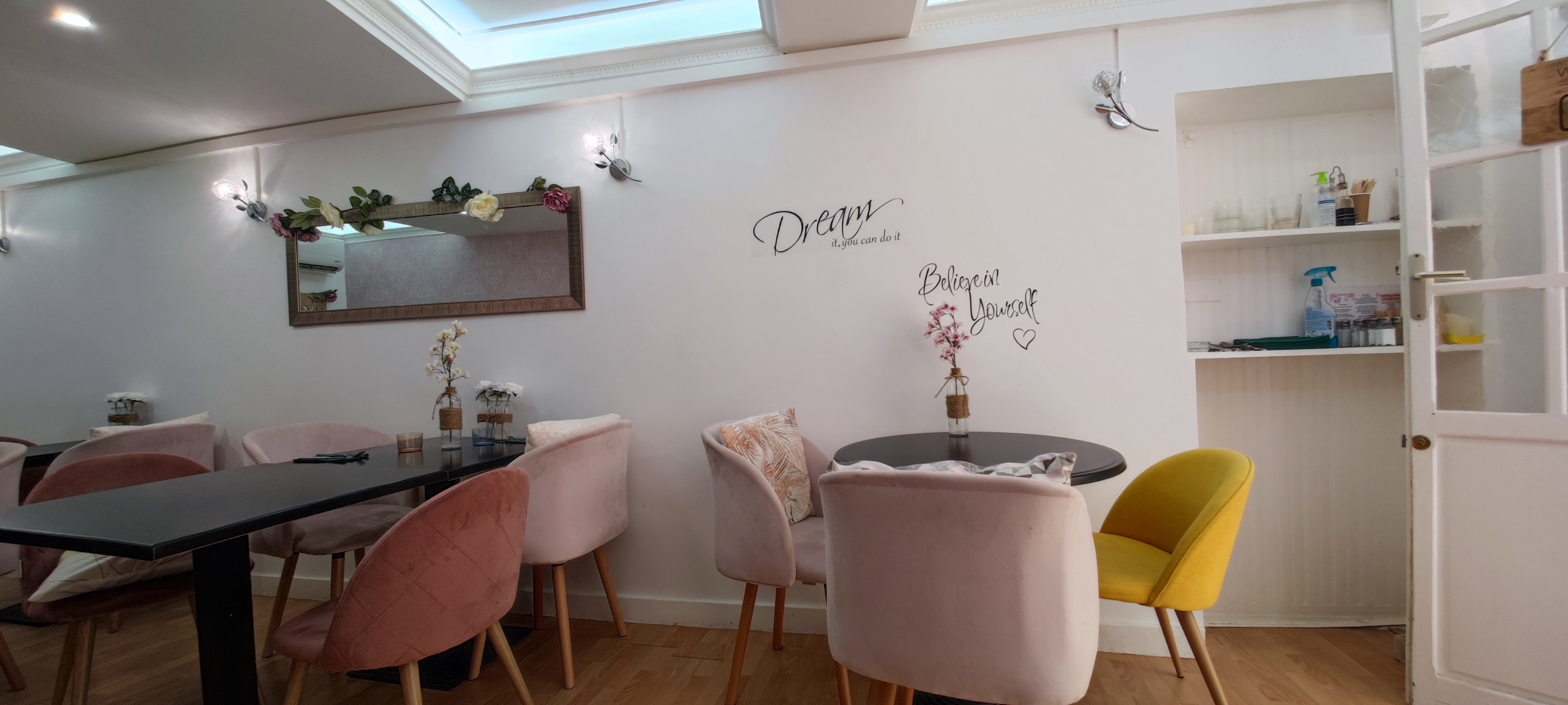 Un endroit très girly où vous , messieurs n’avez pas peur d’y rentrer et vous avez raison ! Cette endroit n’est pas que charmant, on s’y nourrit délicieusement bien ! On en ressort le ventre plein avec une sensation de bien-être en plus . C’est juste bon , bien équilibré et original. Service en salle très sympa. Admirative de ces jeunes femmes entrepreneuses . Bonne continuation !