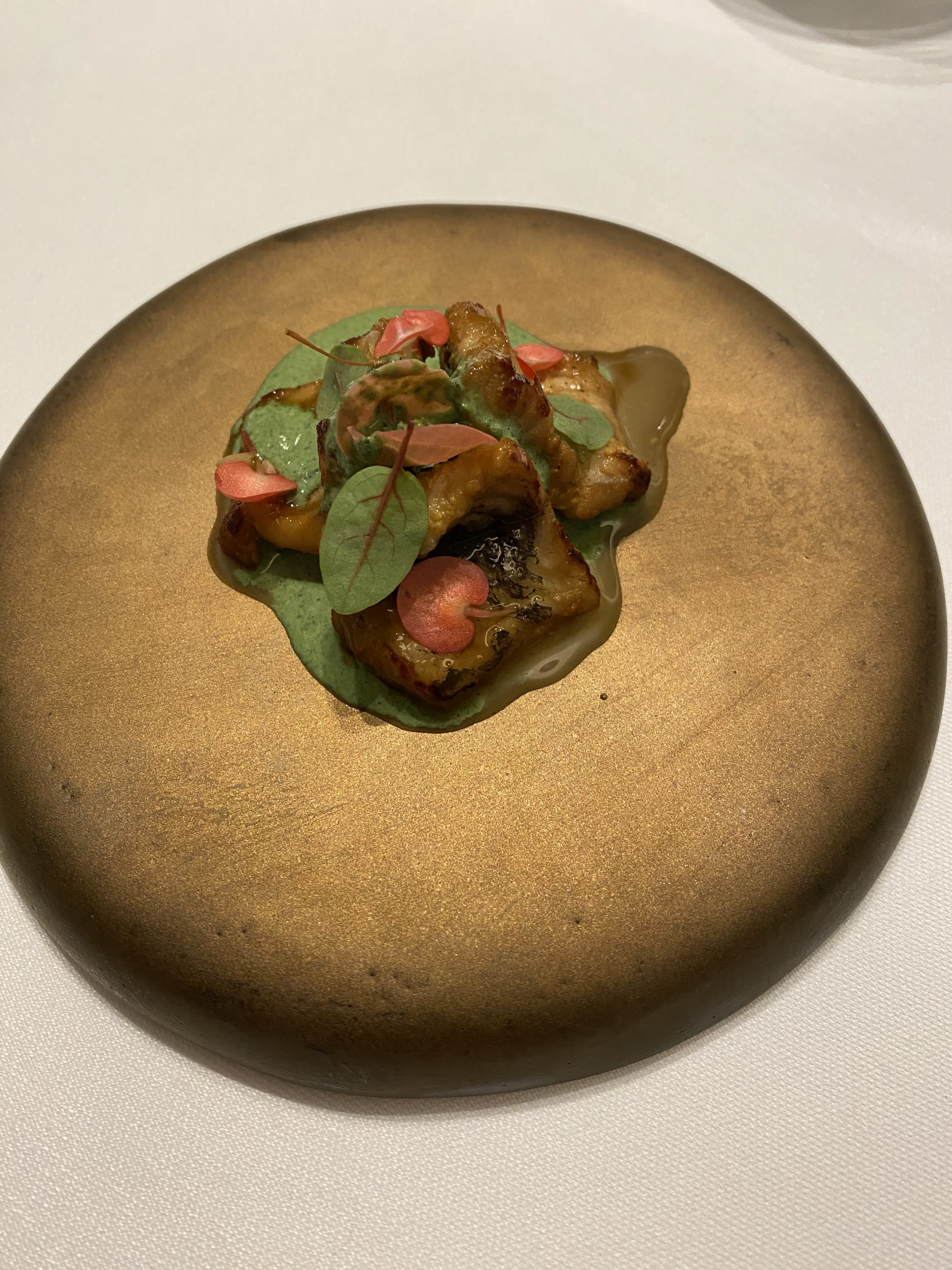 Je veux commencer par le fait que j'ai honnêtement laissé des avis à moins que l'expérience ne soit incroyable ou horrible. Hier soir, c'était une situation malheureuse où je ne pouvais pas attendre la fin du dîner de 4 heures. J’ai fréquenté des restaurants étoilés Michelin à travers l’Europe au cours du mois dernier et 9 fois sur 10, je ne veux pas que cette expérience prenne fin. Hier soir, la nourriture était mauvaise depuis le début. Peut-être que le chef a eu une soirée libre car, d'après toutes les autres critiques, les gens semblent vraiment apprécier la nourriture ici. La plupart des expériences/menus Michelin ont tendance à durer environ 2,5 heures à 3 heures maximum, celle-ci représentait près de quatre heures de misère. Il n’y avait pas un seul parcours sur les 12 qui valait un 10/10. Tout autour, une expérience douloureuse et je pouvais non seulement ne pas recommander cet endroit, mais aussi offrir des conseils pour rester à l'écart.