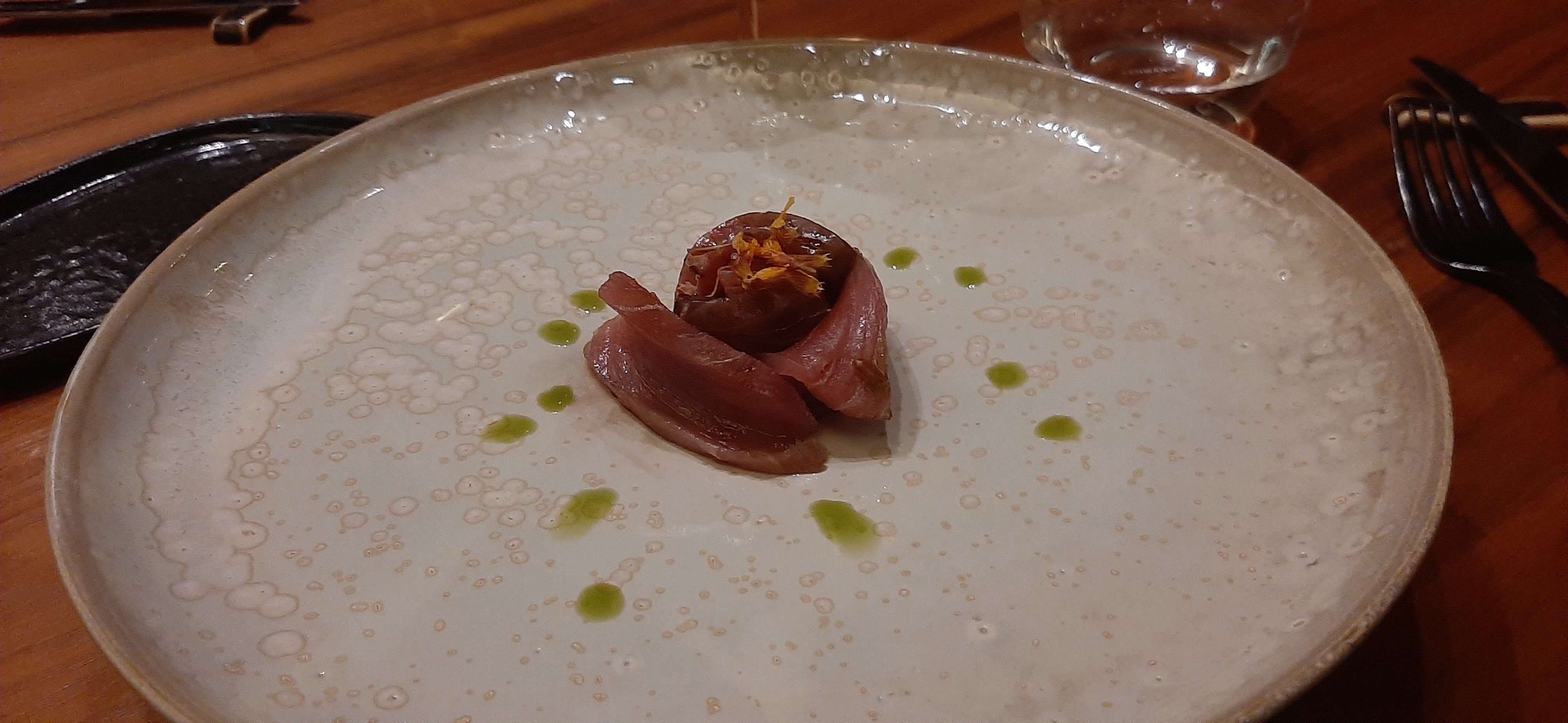 Une expérience vraiment passionnante de la part d'un jeune chef talentueux et de son équipe. Nous nous sommes assis dans la cuisine et avons vraiment apprécié le spectacle culinaire.