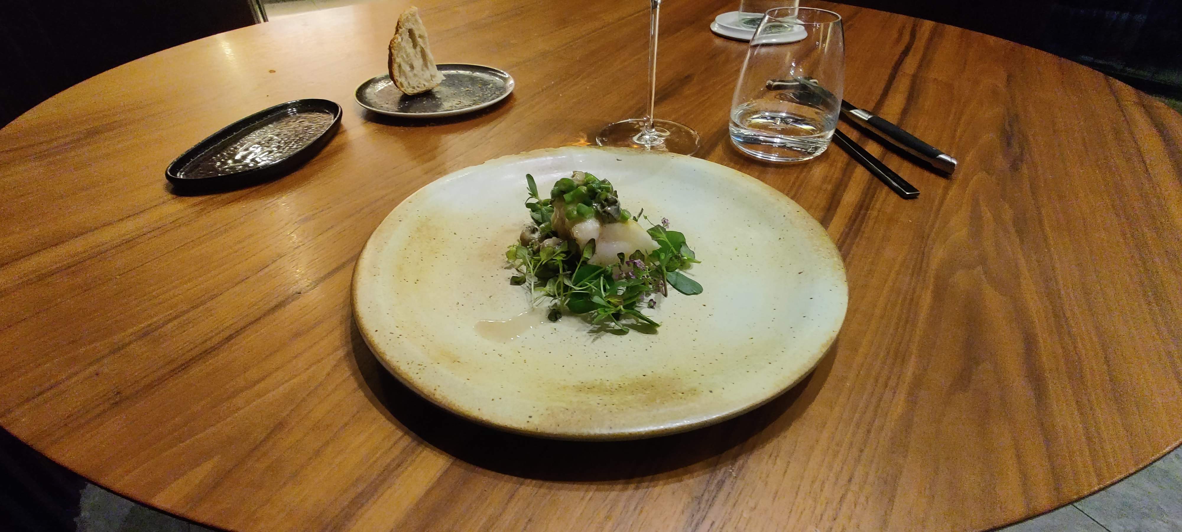 Repas décevant, à l'air bon manque de saveur. Service très lent. Certaines critiques ont commenté de bons cocktails, il n'y en a pas, pas d'apéritif offert au bar. Aucun remplacement pour les options sans gluten non plus, ce qui nous aurait été conseillé lors de la réservation car ils ont vérifié les allergènes mais n'ont rien dit. Personnel adorable mais… ne vaut pas le prix