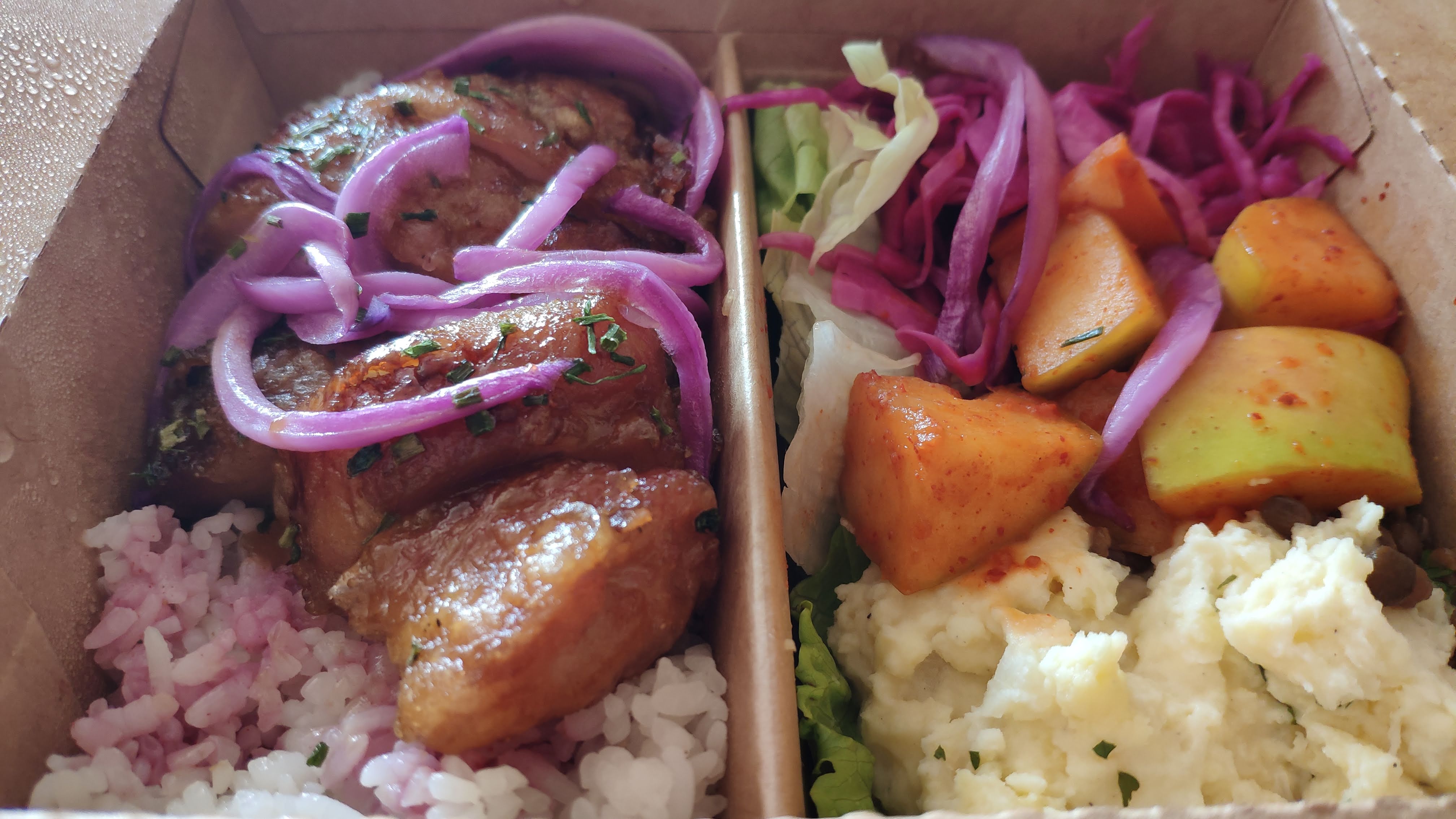 Venu à midi pour prendre à emporter. Le service a été rapide et agréable. La nourriture plutôt bonne, le tout pour moins de 15€. Je recommande (: Les plats sont automatiquement accompagnés de légumes/riz. Ce qui est vraiment chouette car c’est très varié (purée, choux, concombre…) et se marie plutôt bien avec les plats qu’ils proposent (KFC, tofu, bulgogi, calamar etc.). En tout cas c’était nourrissant et j’avais bonne conscience en mangeant (merci les légumes).