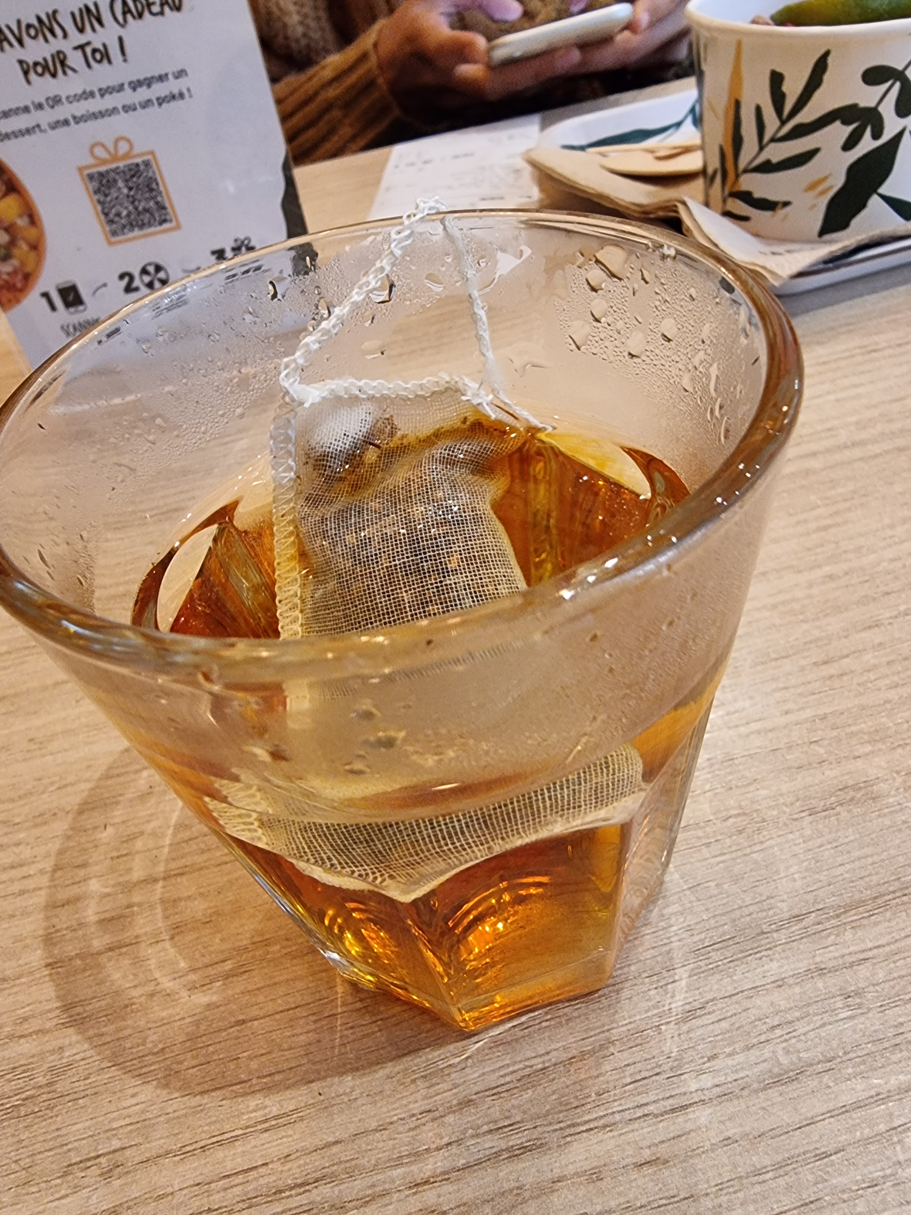 On commande du thé à 3.50€ .. et voilà ! Un bon verre d’eau !