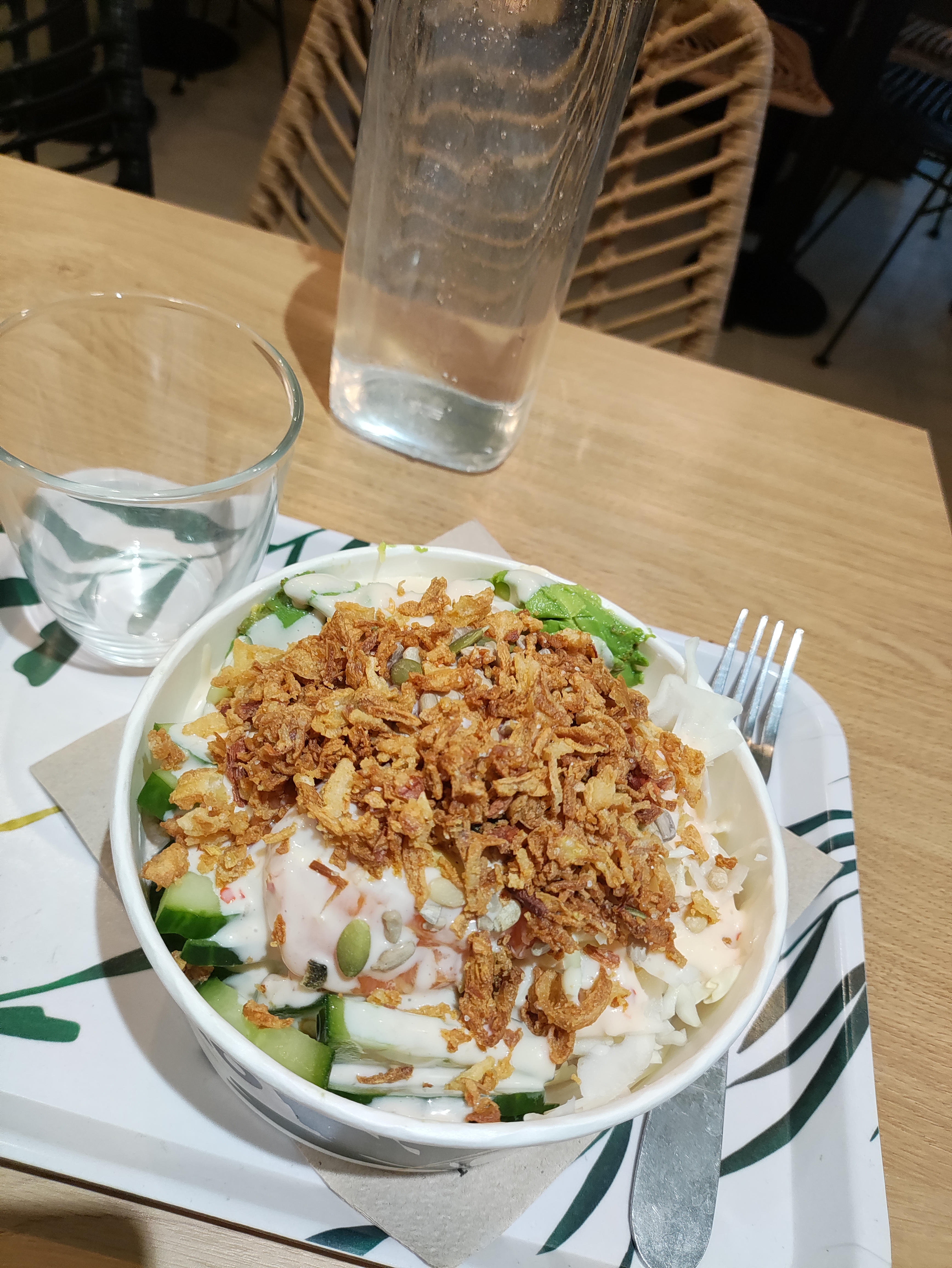 Parfait! J’adore ! Rien à dire, produits frais, bowls copieux et savoureux ! Personnel hyper accueillant et le restaurant est grand, propre et joli :) Une superbe adresse que je recommande et qui va certainement devenir ma nouvelle cantine! Vraiment, vous pouvez y aller les yeux fermé !
