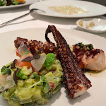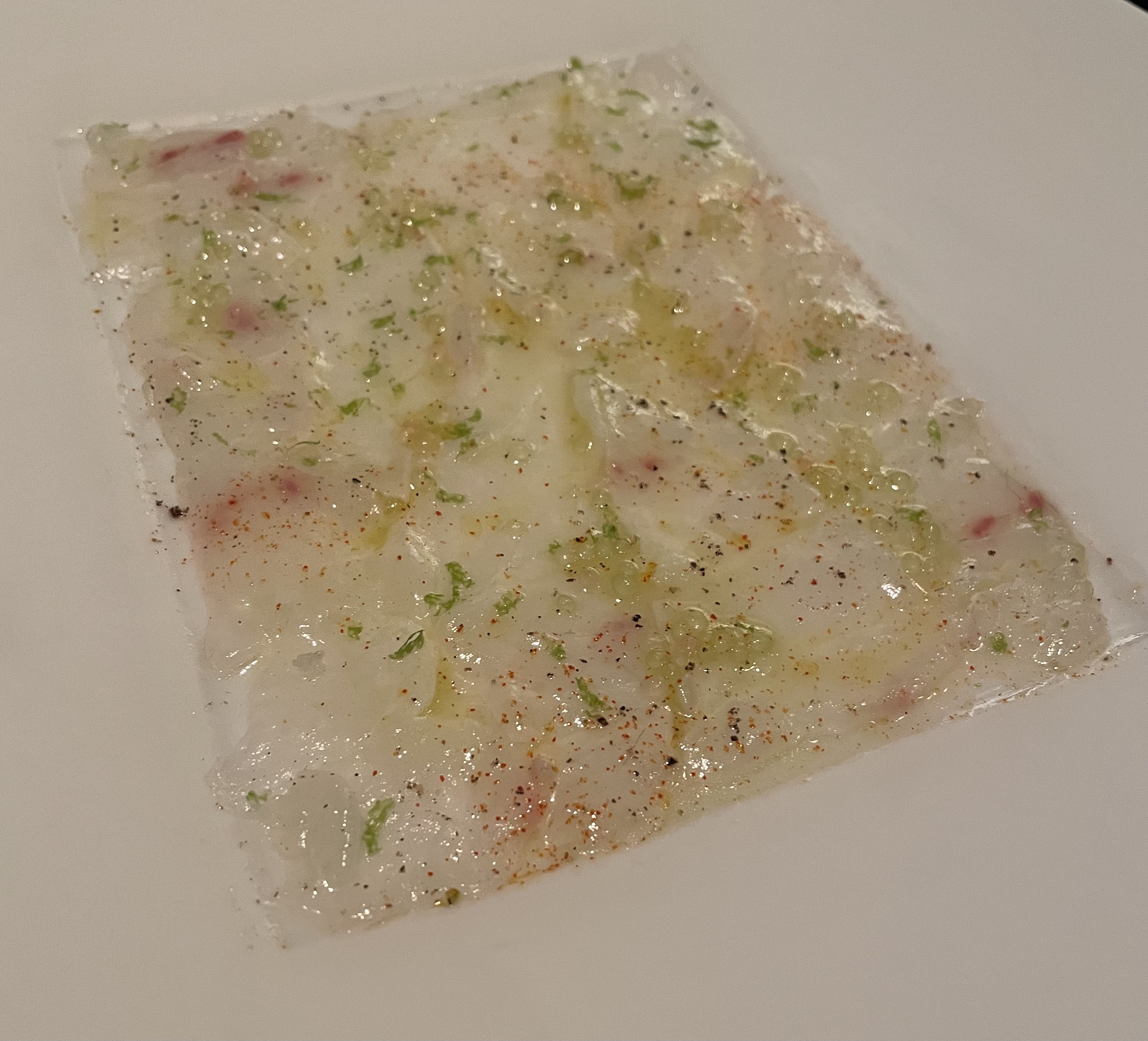 C’était très bon, de beaux poissons, variés, le poulpe très bien cuit. Mais pour 150€ le menu on eût aimé autre chose que de la simple baguette, des serveurs disponibles, une description des plats, une salle plus adaptée. Globalement c’était très bien mais pas du niveau d’un étoilé. Et trois entrées au milieu de la table à partager à 7 (voir les photos, 3 plats de carpaccio très fin, bon mais pas grand chose à manger… à diviser en sept !). Une table à côté avait les mêmes assiettes pour deux !! Bref je recommande mais à la moitié du prix environ. 70/75€ c’est parfait. Avoir faim à la fin d’un repas étoilé c’est dommage.