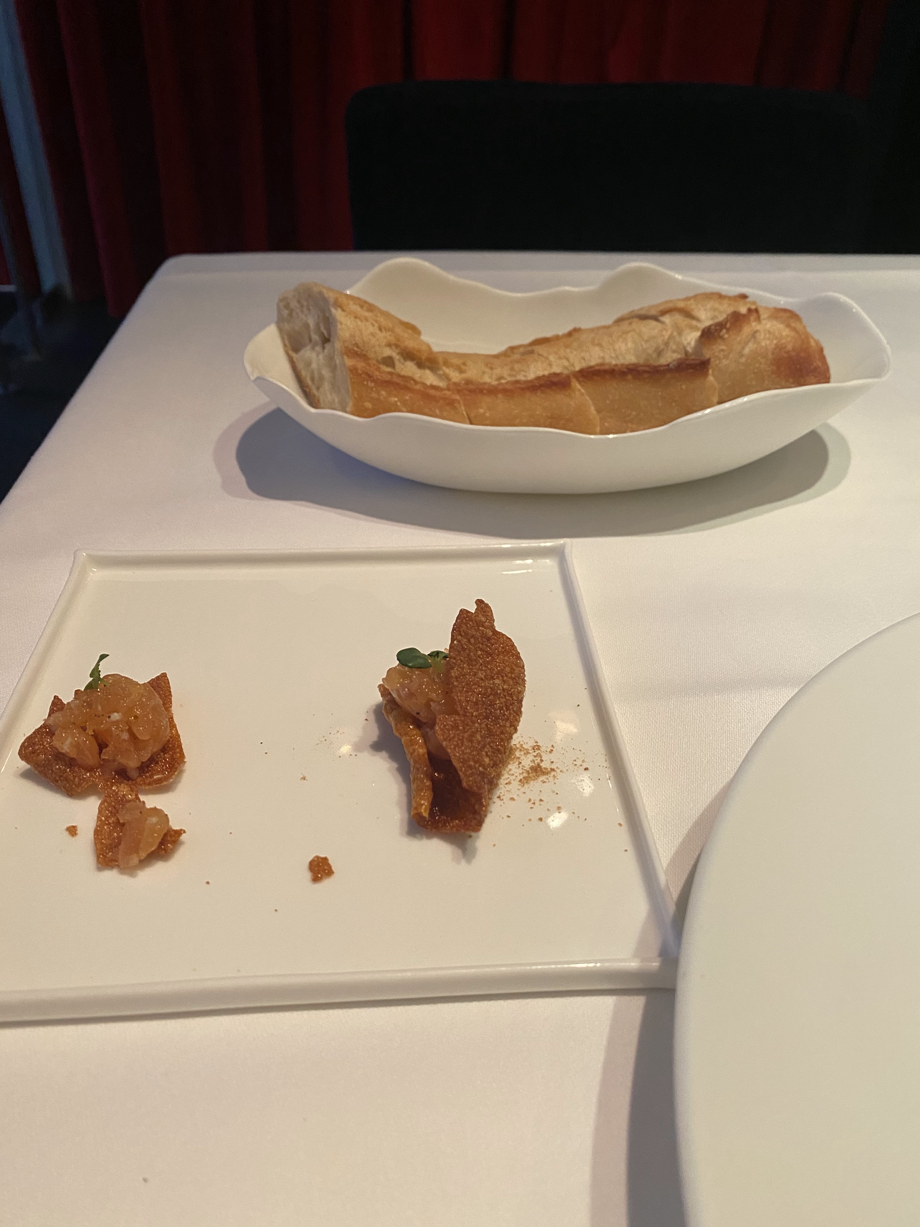 Nous avons dîner à 3, mon épouse et ma fille... L entrée du jour 2 écrevisses avec une rondelles d orange 70 euros..... Du jamais vu.... Si vous aimez le minimalism hors de prix... Welcome. Je n ai jamais vu ça.....