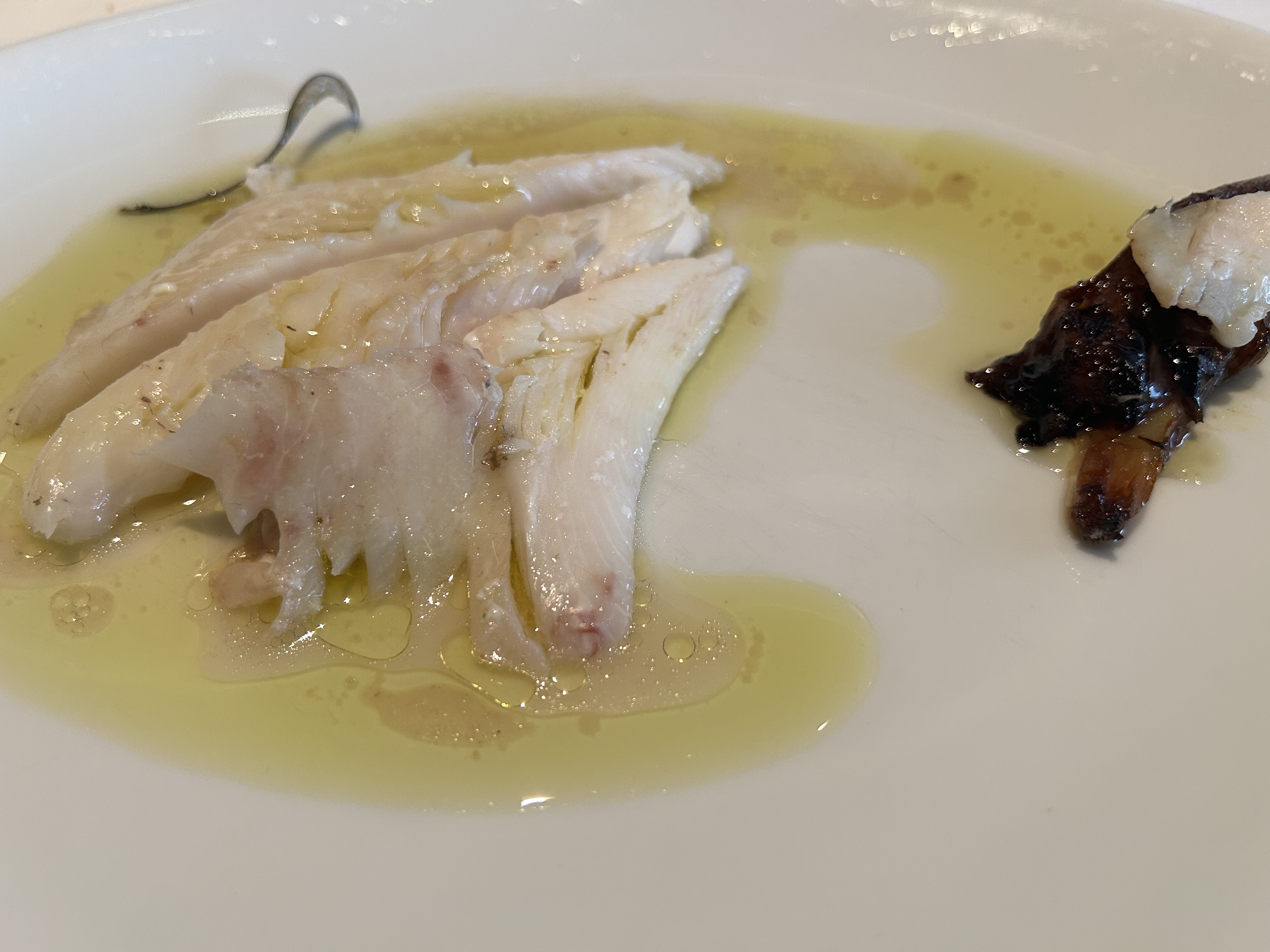 Le poisson était très frais et bien préparé. Cependant, ils n'avaient pas de langoustines, de coquilles Saint-Jacques et de moules à disposition lorsque nous sommes allés déjeuner. Une vraie déception. Le ceviche et le carpaccio de poisson étaient très bien préparés mais j'ai commandé que le bébé turbot soit simplement grillé, ce qui était peut-être une erreur car le poisson était livré sans assaisonnement et je ne pouvais pas non plus goûter la douceur du poisson lui-même. J'aurais dû laisser au chef le soin de le réparer de manière traditionnelle. Ce n'est pas grave que le poisson contienne pas mal d'arêtes, mais j'ai été surpris qu'un restaurant une étoile Michelin n'ait pas retiré tous les arêtes.