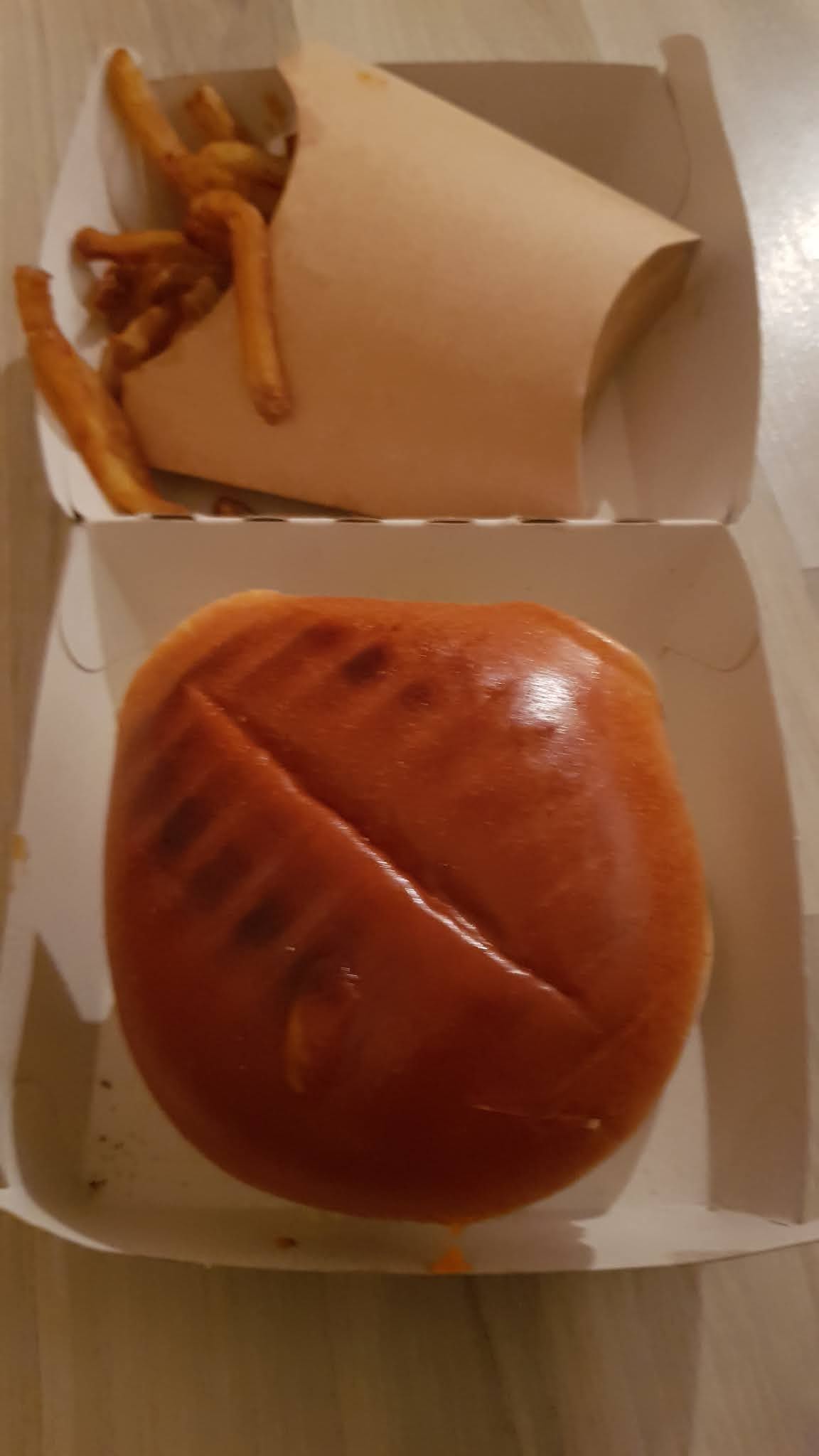 Vraiment dommage Portions de frites énormes, burger bons Mais pour le 2eme fois ma commande (via uber eats) est incomplète (manquent 2 frites et 2 cocas sur 3...). Sacs non ouverts donc erreur de Helen's burger. J'appelle et n'ai qu'un timide désolé. Je ne commanderai plus, trop facile...