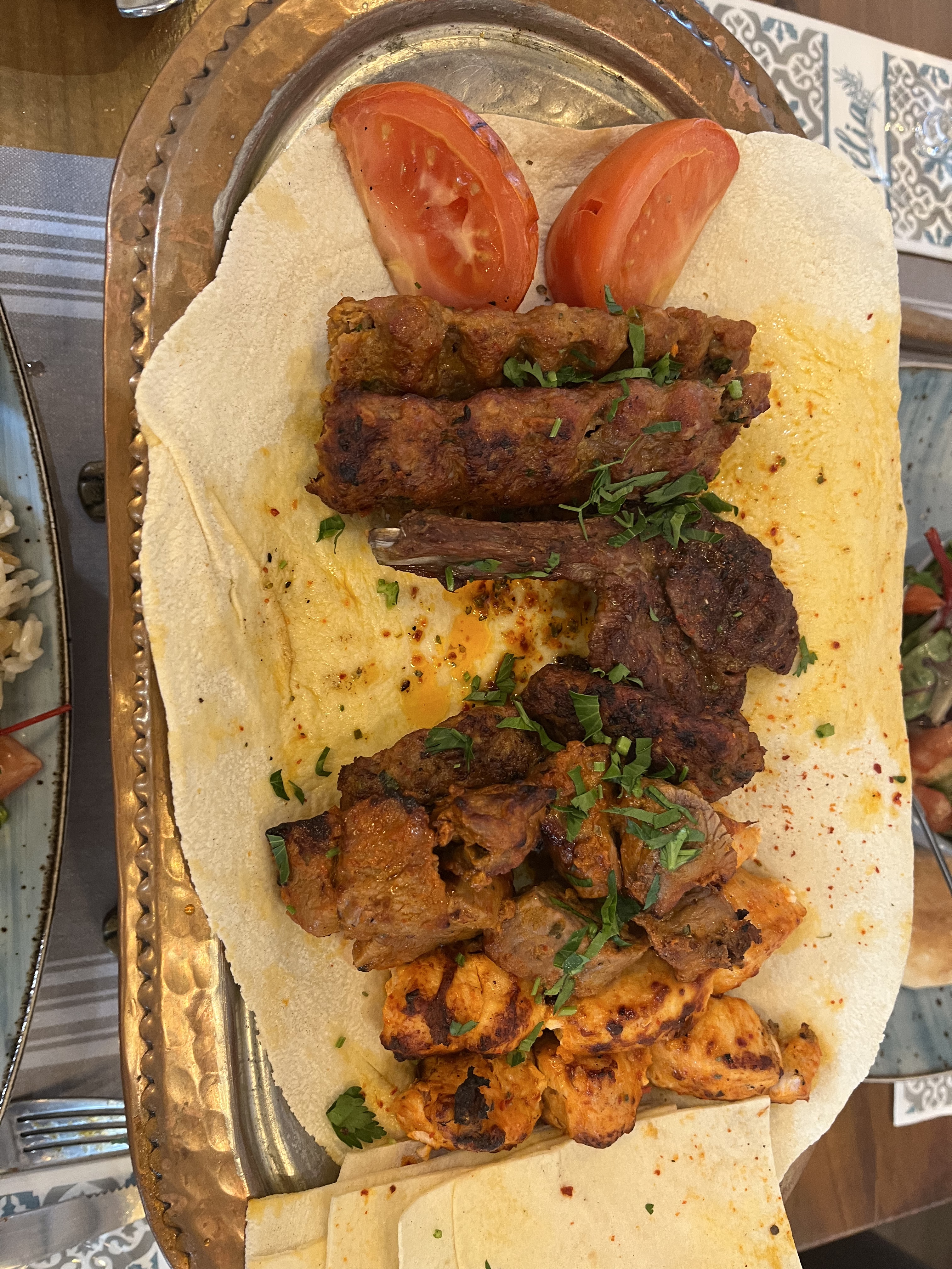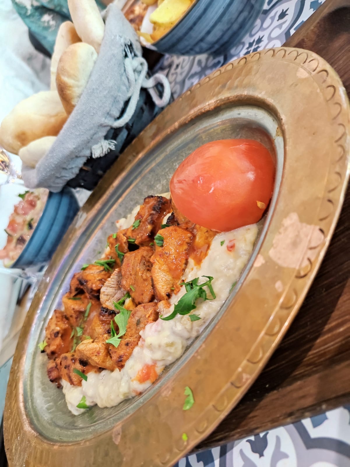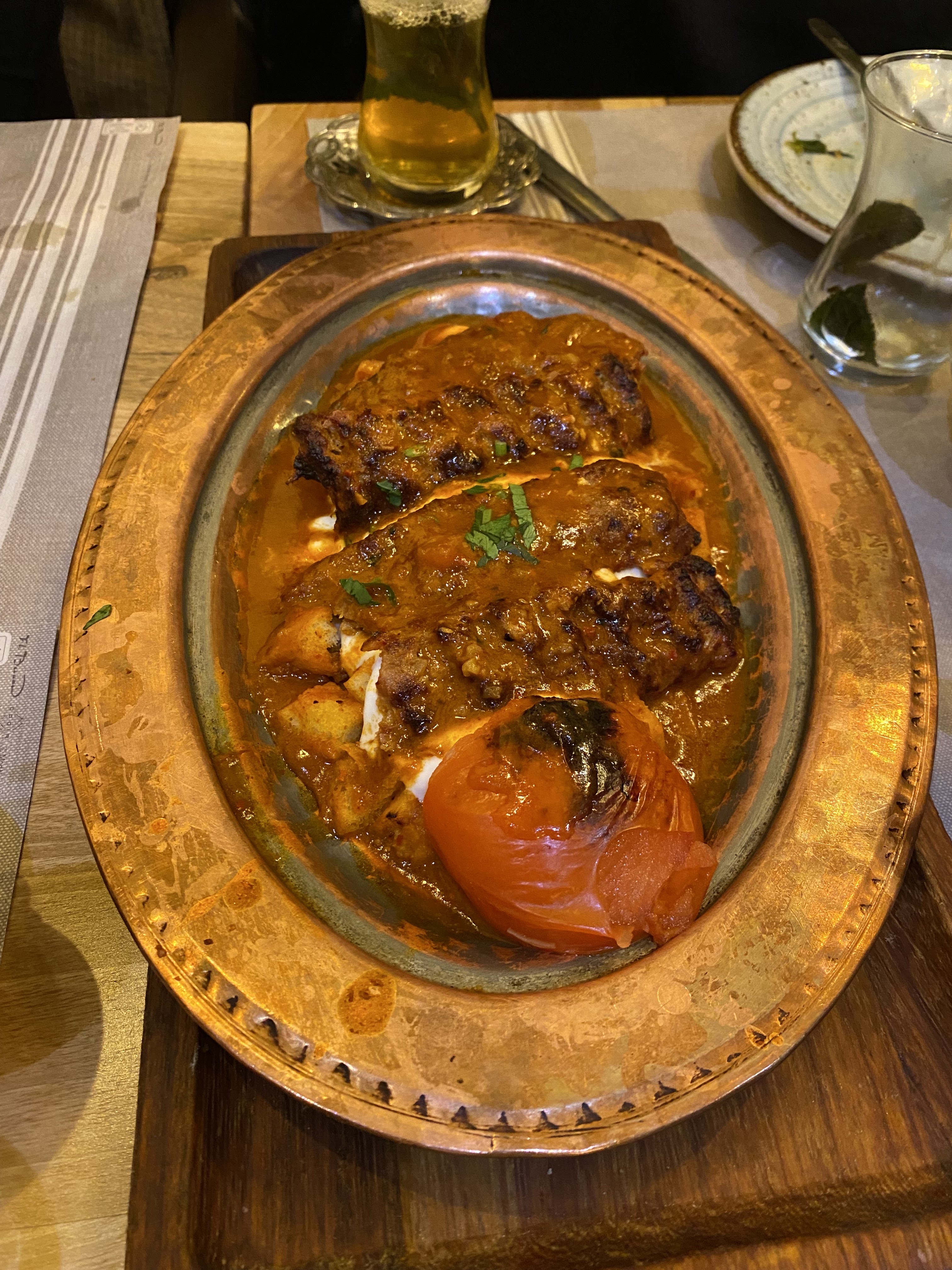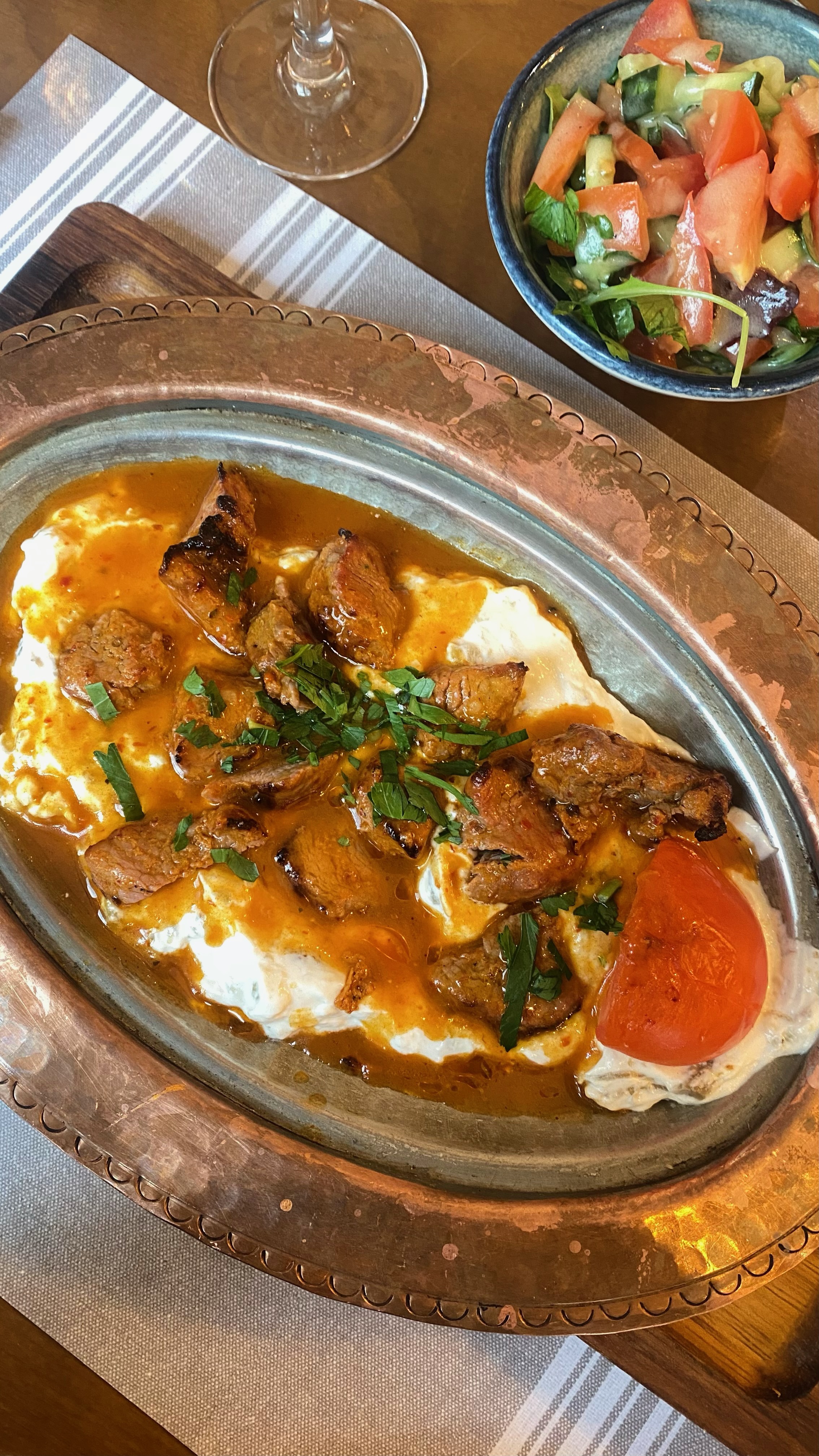 Bon accueil, excellent restaurant. J'aurai aimé plus de sauce tomate dans mon plat le Beyti et je n'ai pas senti l'ail dans la sauce au yaourt. Très bon Kunefe.