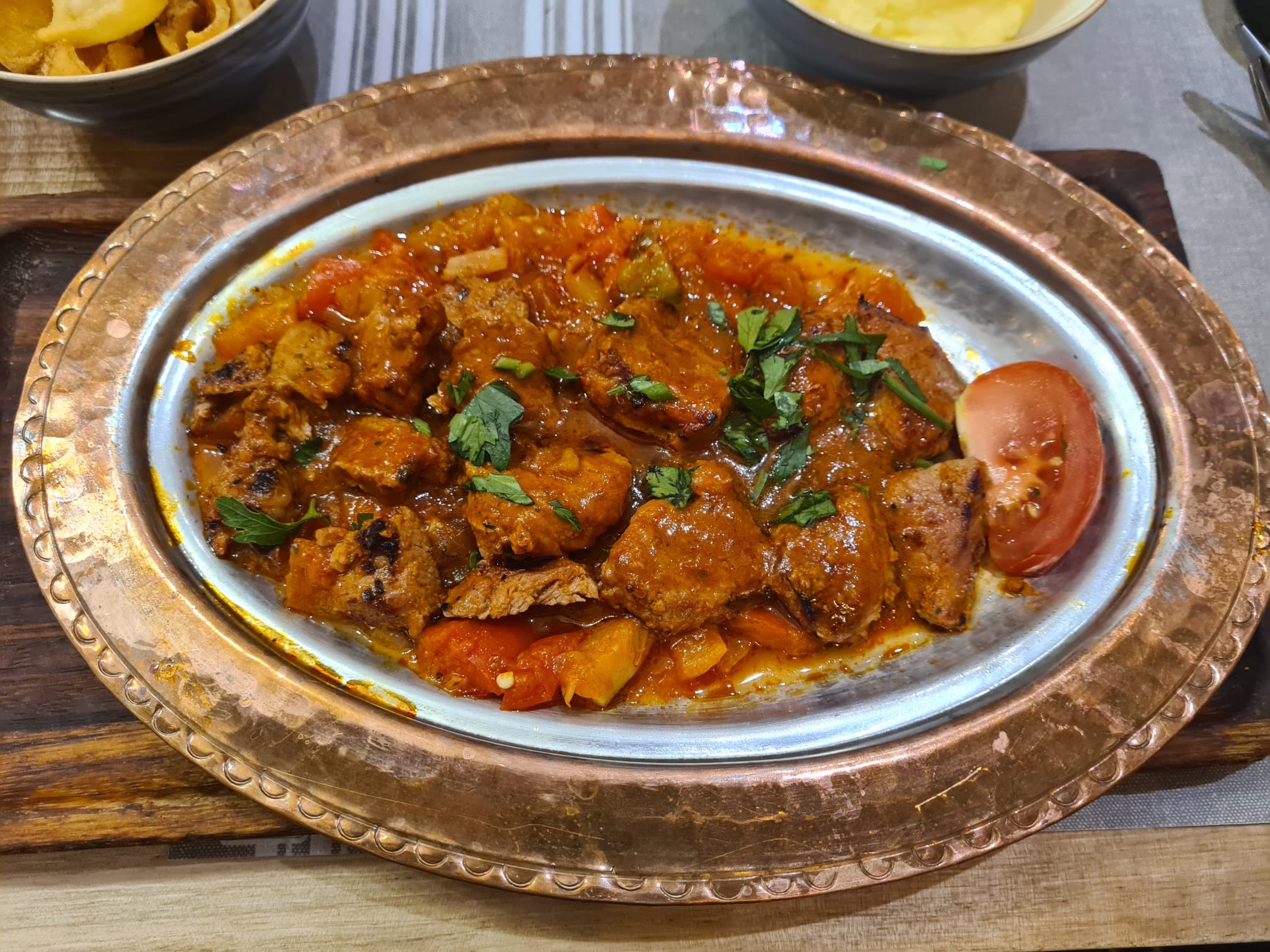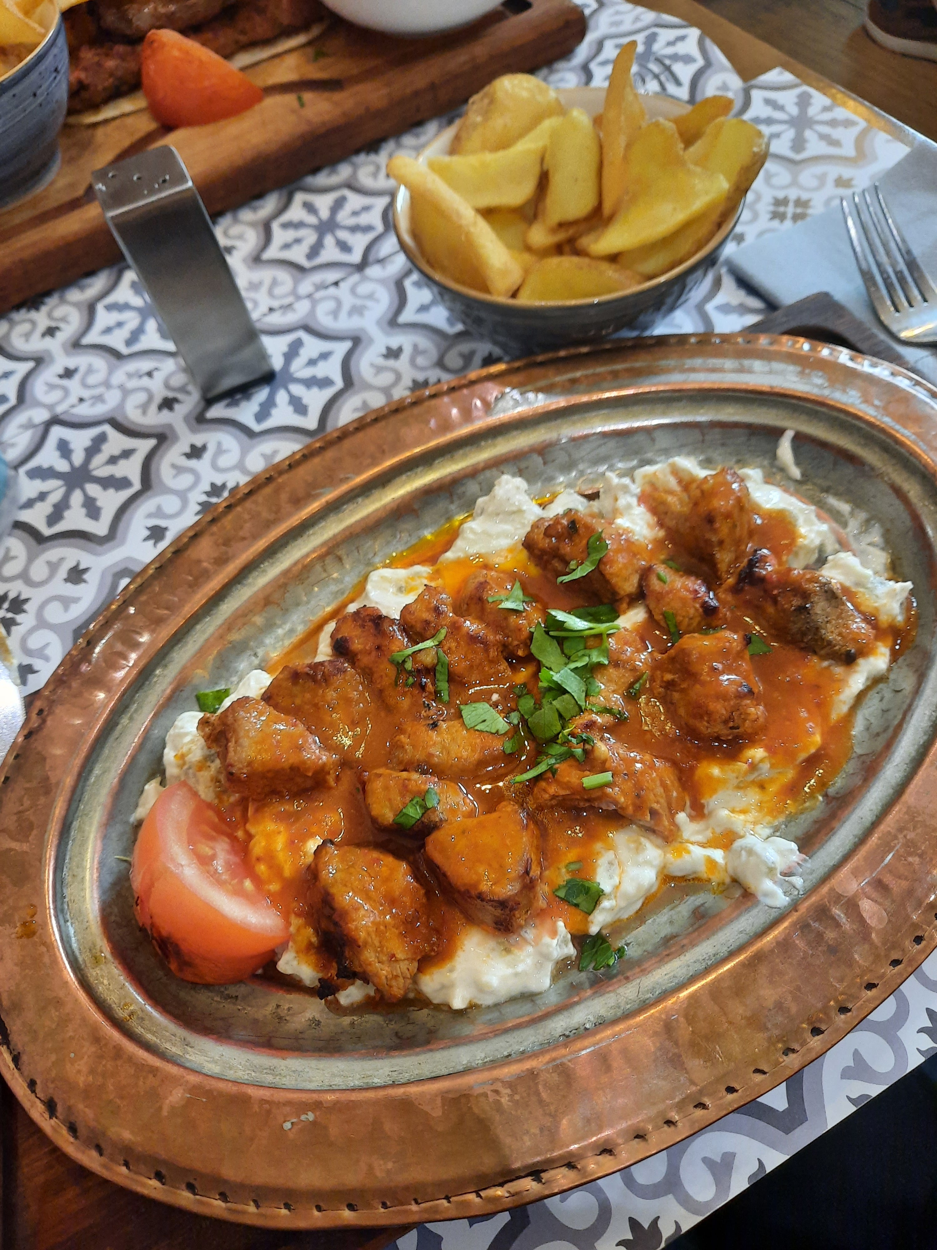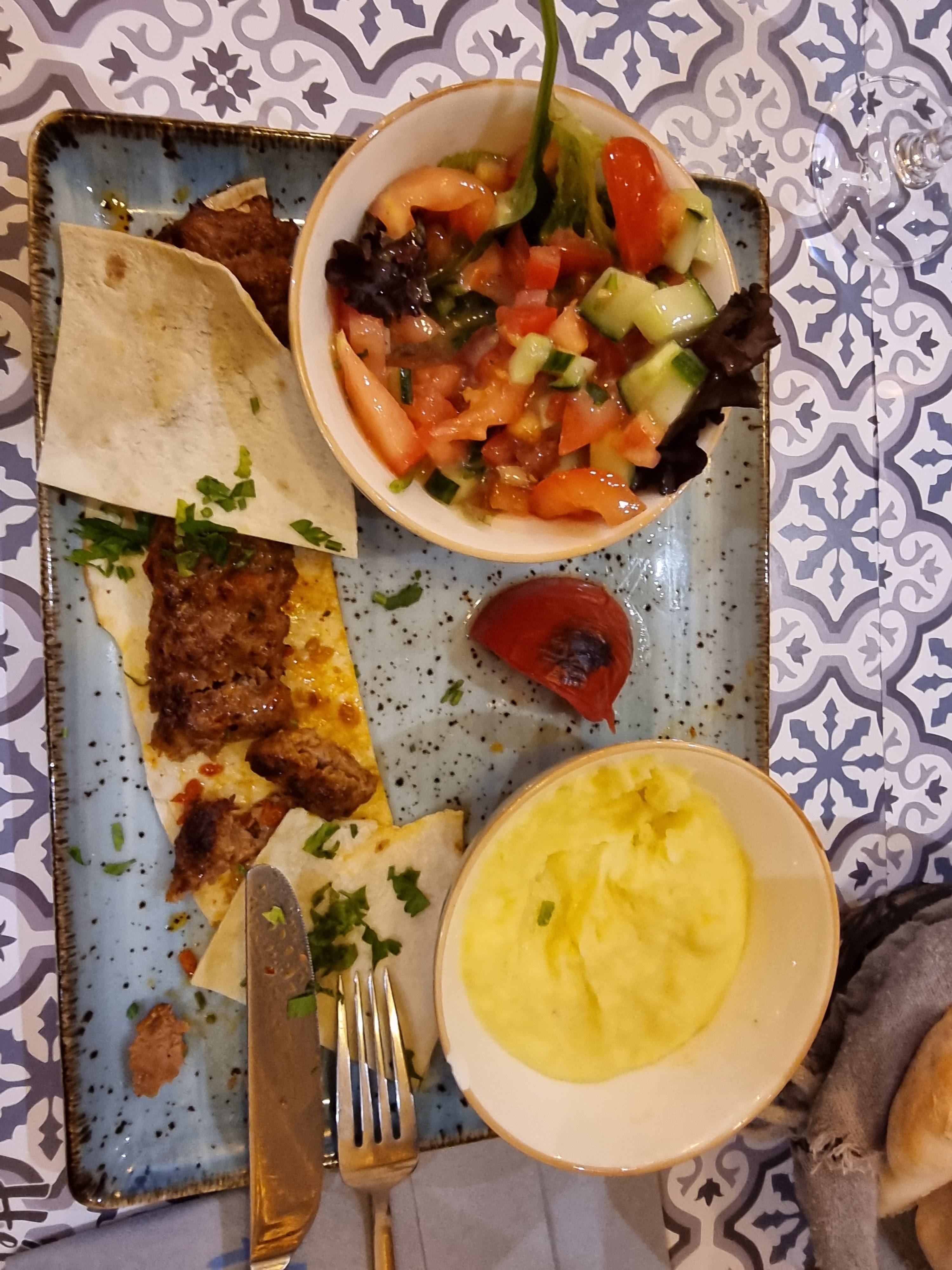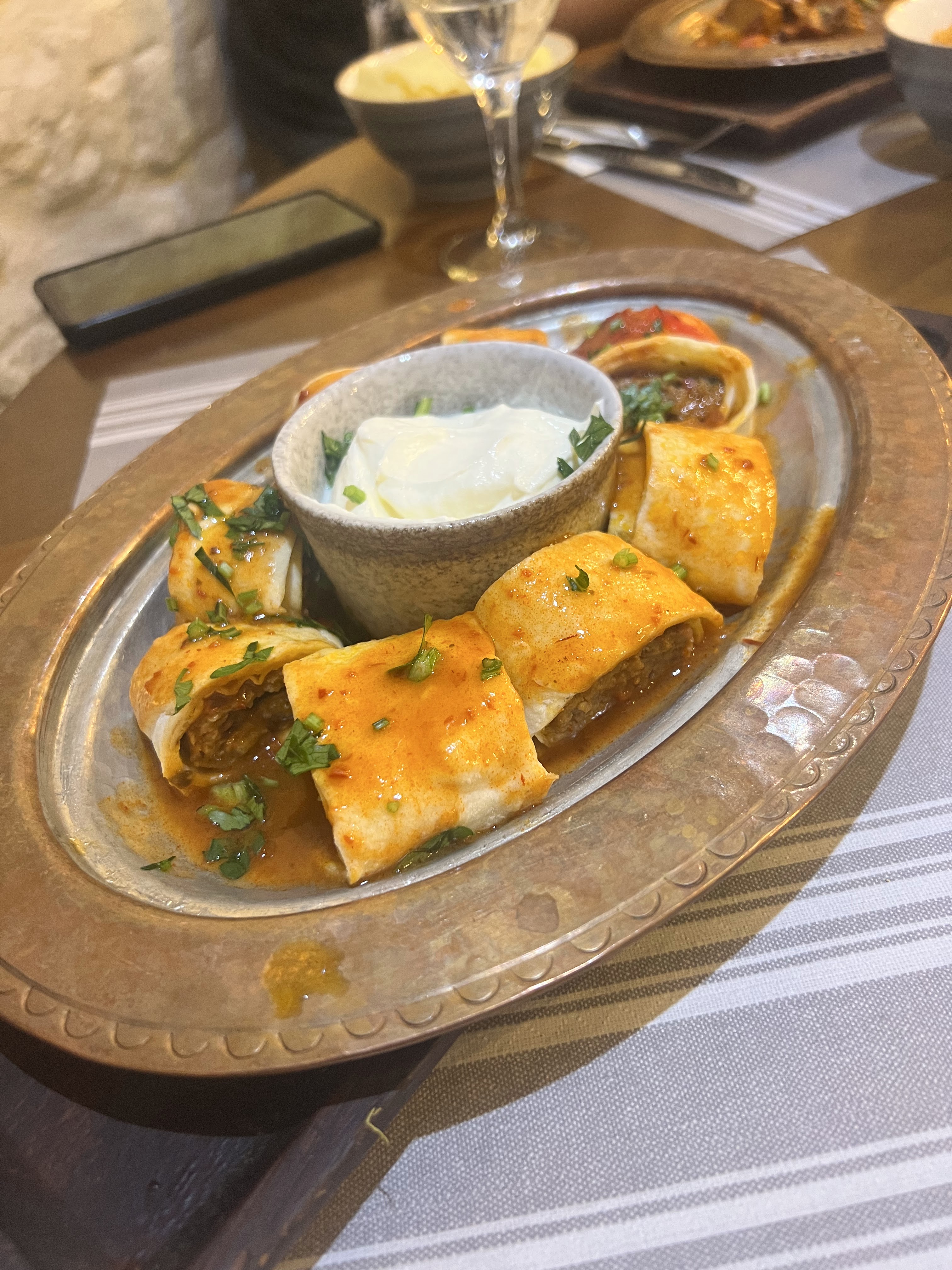 Bon accueil, excellent restaurant. J'aurai aimé plus de sauce tomate dans mon plat le Beyti et je n'ai pas senti l'ail dans la sauce au yaourt. Très bon Kunefe.