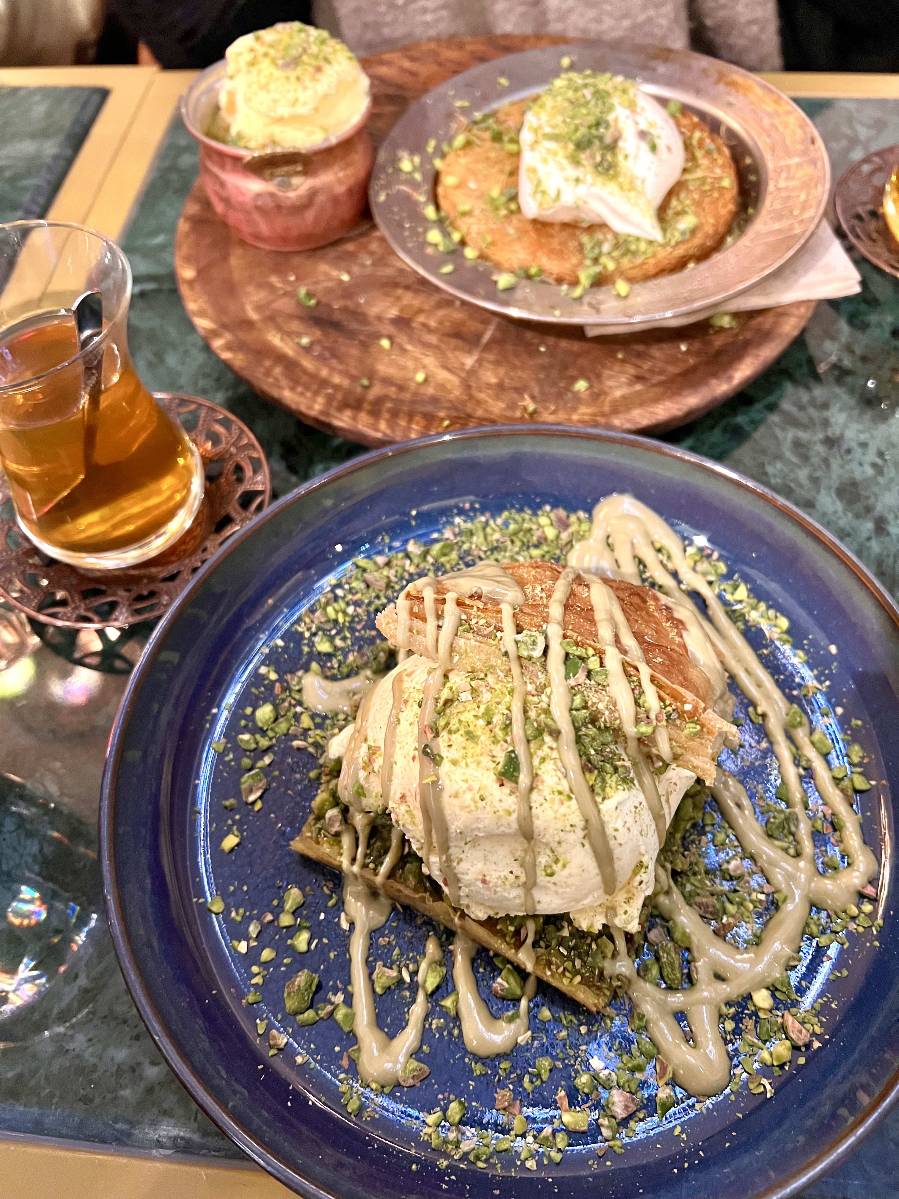 C’était tellement délicieux que j’ai dû arrêté de blablater à table pour bien TOUT savourer. Les pides sont excellente, les plats aussi (mention speciale au köfte fromage) mais alors les desserts ?? In-cro-yable !! Franchement c’est l’un des meilleurs restaurants de Paris et c’est sans appel. Le serveur super agréable on a même eu le thé offert