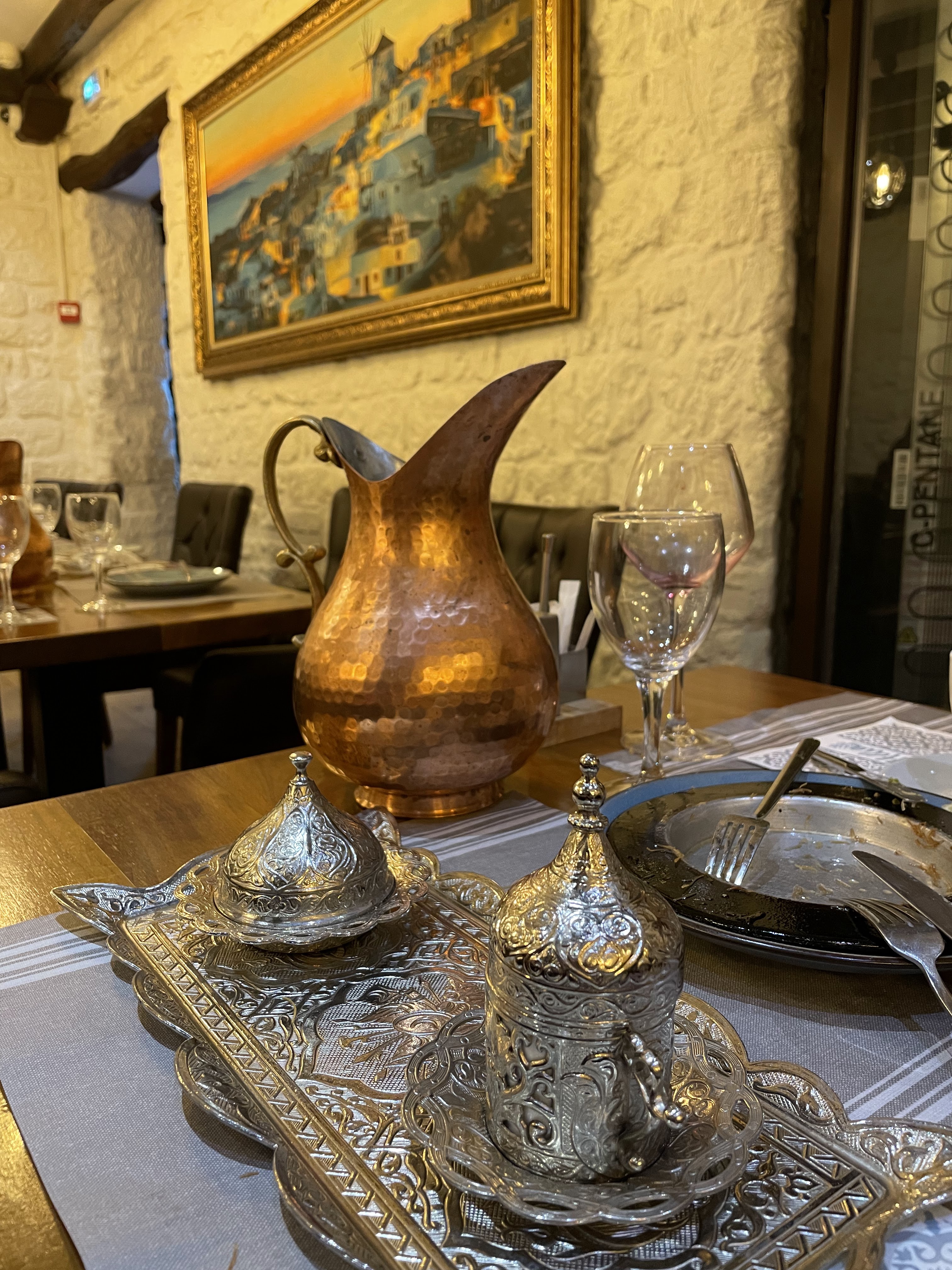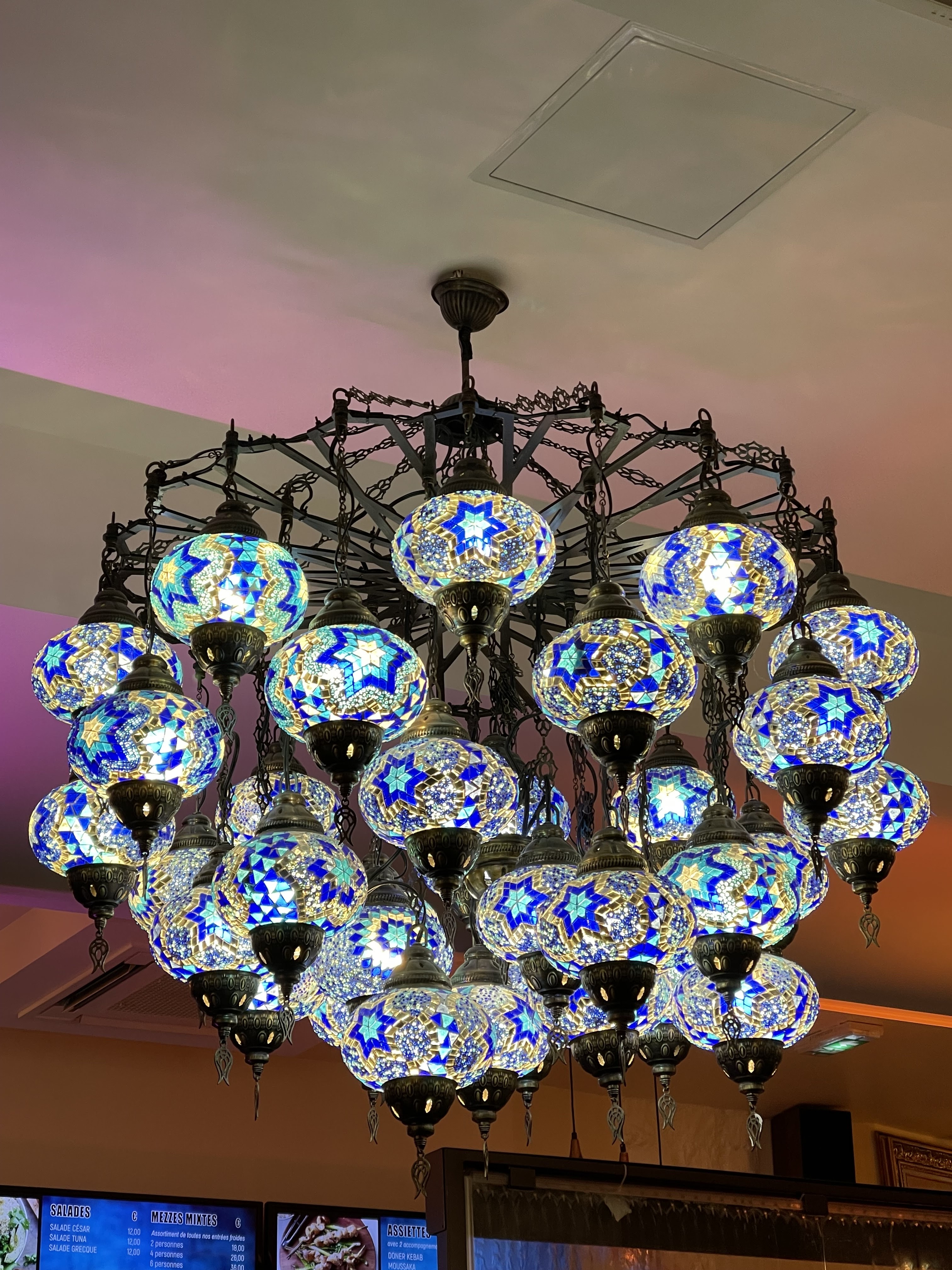 Un restaurant sympathique où l'accueil, la cuisine et les quantités sont au top pour 29 €. Et en fin de repas on vous propose le café ou un thé avec la même qu'en Turquie. Un endroit où je reviendrai sans doute. Décoration avec les mêmes lustres que dans les maisons turques