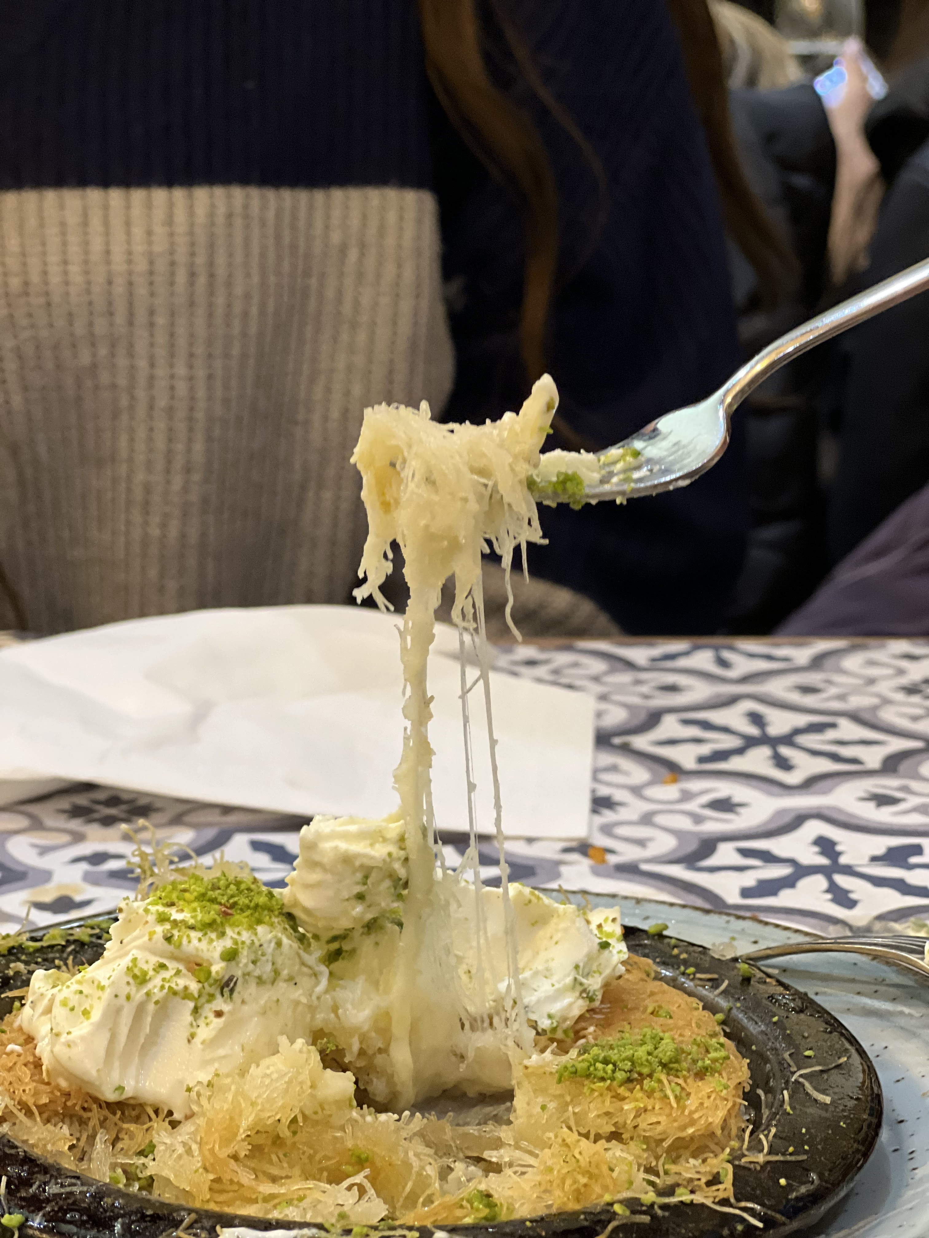 Topissime !!!! C est un restaurant au décor soigné ,entre Orient et occident; on se retrouve dans un cadre chaleureux avec de jolies lampes orientales qui se marient avec des luminaires plus modernes et c est ainsi pour tout:Une réelle harmonie dans ce restaurant très propre et très accueillant. Le personnel est attentif et réactif . La cuisine est fraîche et raffinée , j y ai dégusté des mezzes tous aussi bons les uns que les autres dans une formule vege à 12€ :un délice. Et alors le clou de mon repas est le fameux kneffe qu'on ne trouve pas partout ... et il est excellent !