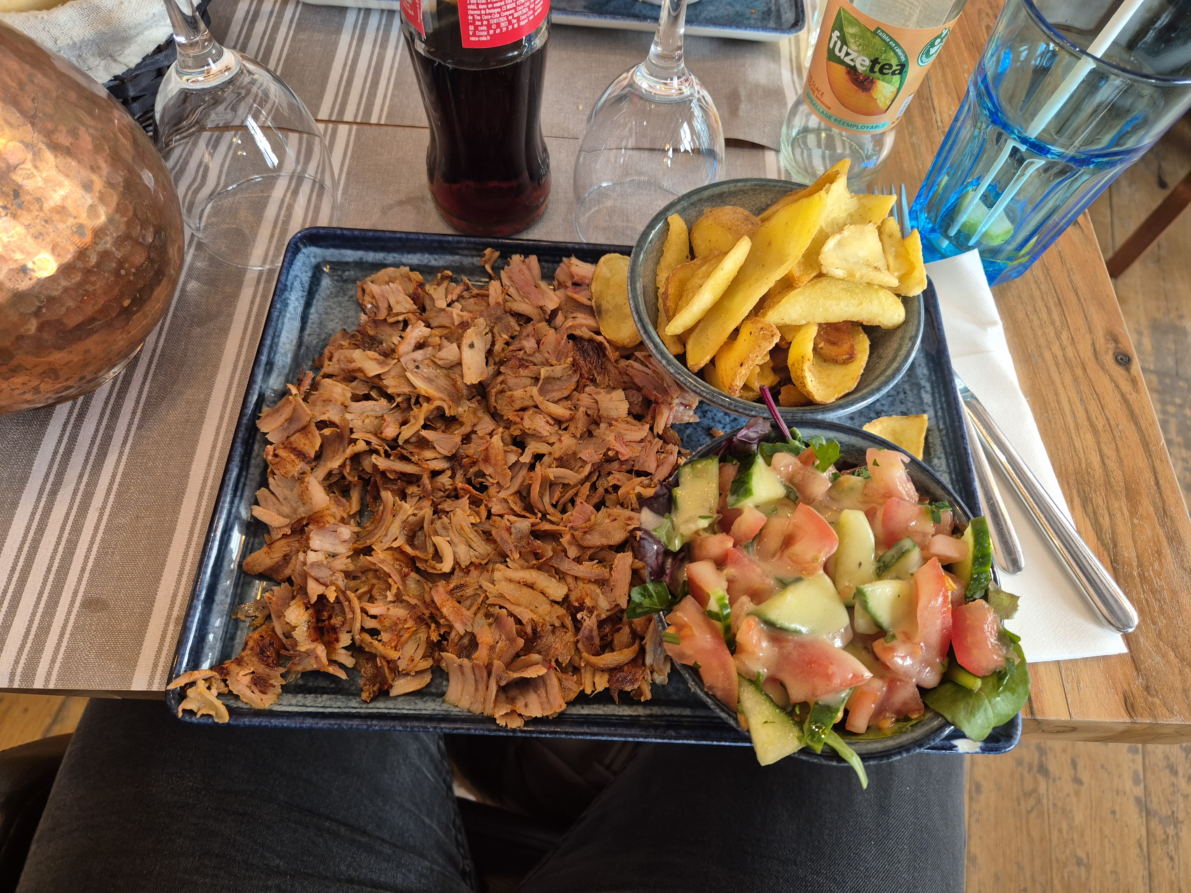 Vendredi soir, nous avons été servi comme des rois et des reines. Repas délicieux, moment très chaleureux surtout en famille. décoration cosy. Merci Ferhat et son ami aussi😉