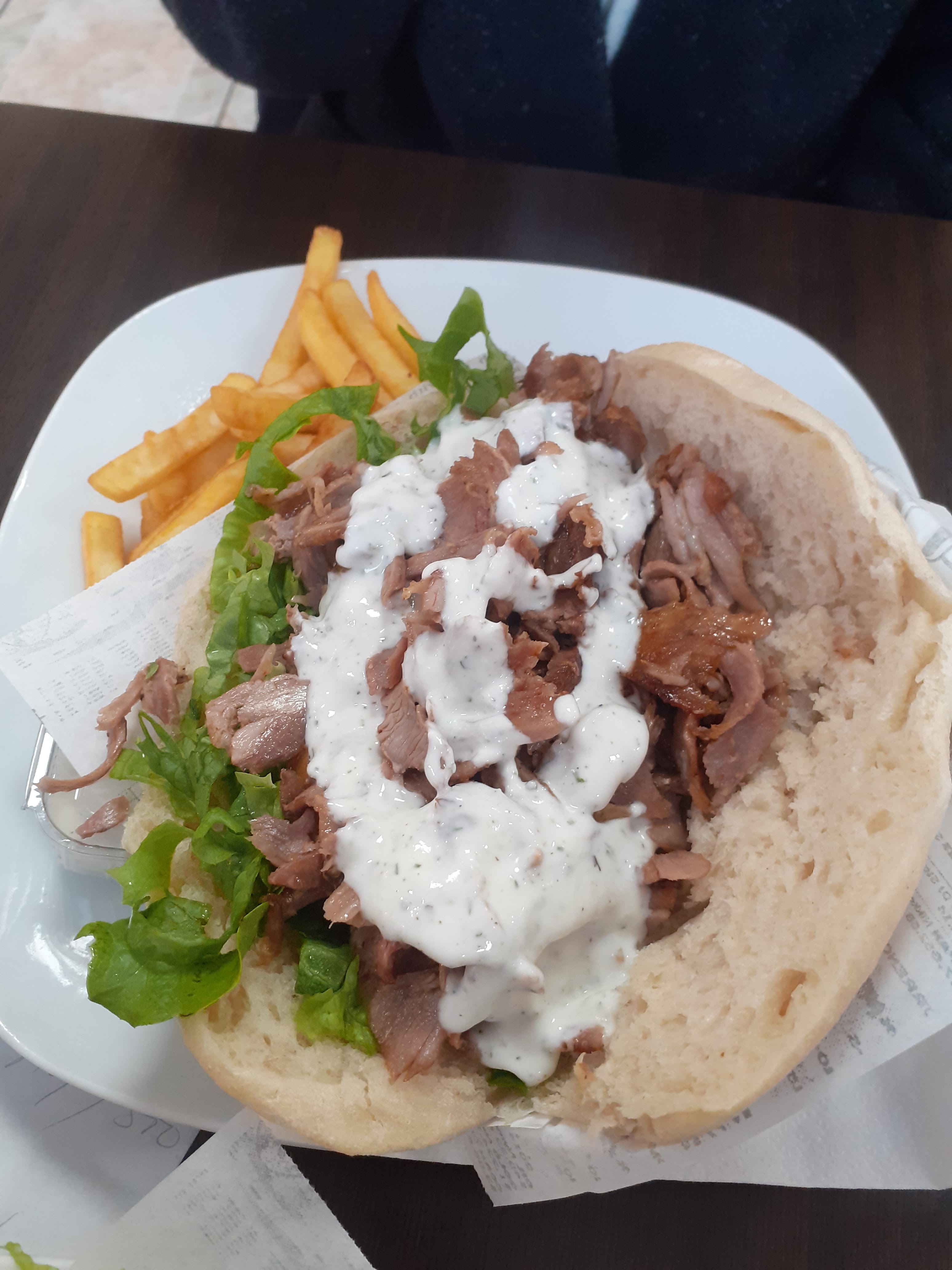 Accueil très agréable, sourire, terrasse ombragée ! Pour ce qui est du menu : pain maison juste excellent, viande kebab grillée à souhait et abondante dans le sandwich ! Frites tout ce qu'il y a de plus classique mais bien cuites et assaisonnées justement. Pour finir le prix : j'ai rarement vu ça, un menu kebab + frites + boisson à 6e, que demander de plus ? Je recommande vivement cette adresse à tous les aficionados de la brochette tournante !