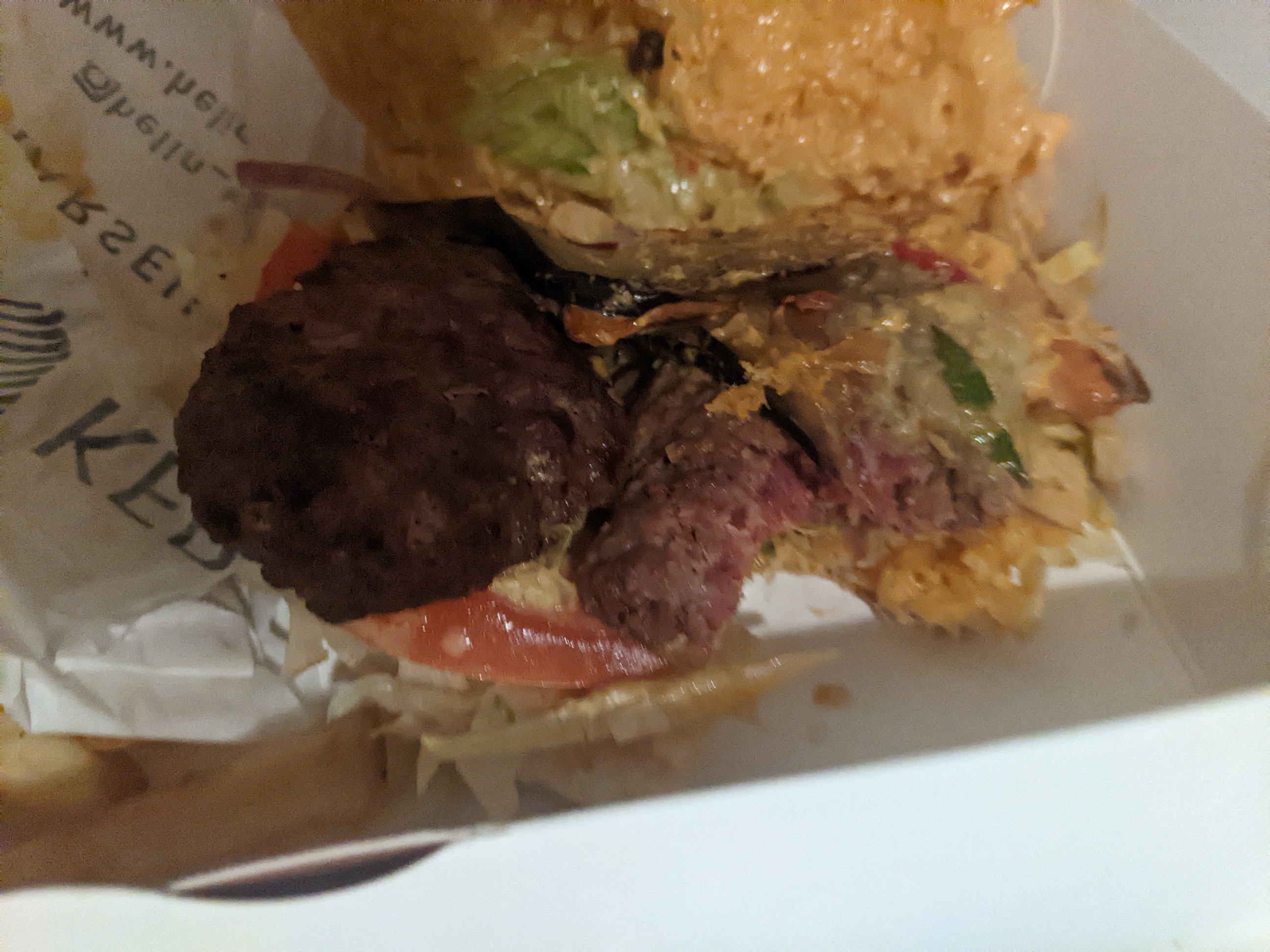 Honteux très mal servie ! Viande sec morceau de caoutchouc, 2eme fois que je commande première fois bien servie mais avec un menue complet manquant!!! 2eme fois il oublie une boisson sur 2menus même un enfants gére mieu des commandes. 3vieux morceau de viande par sandwich rapport qualité prix scandaleux je recommande pas du tout à fuir ! Il faut changer de métier à ce stade là.