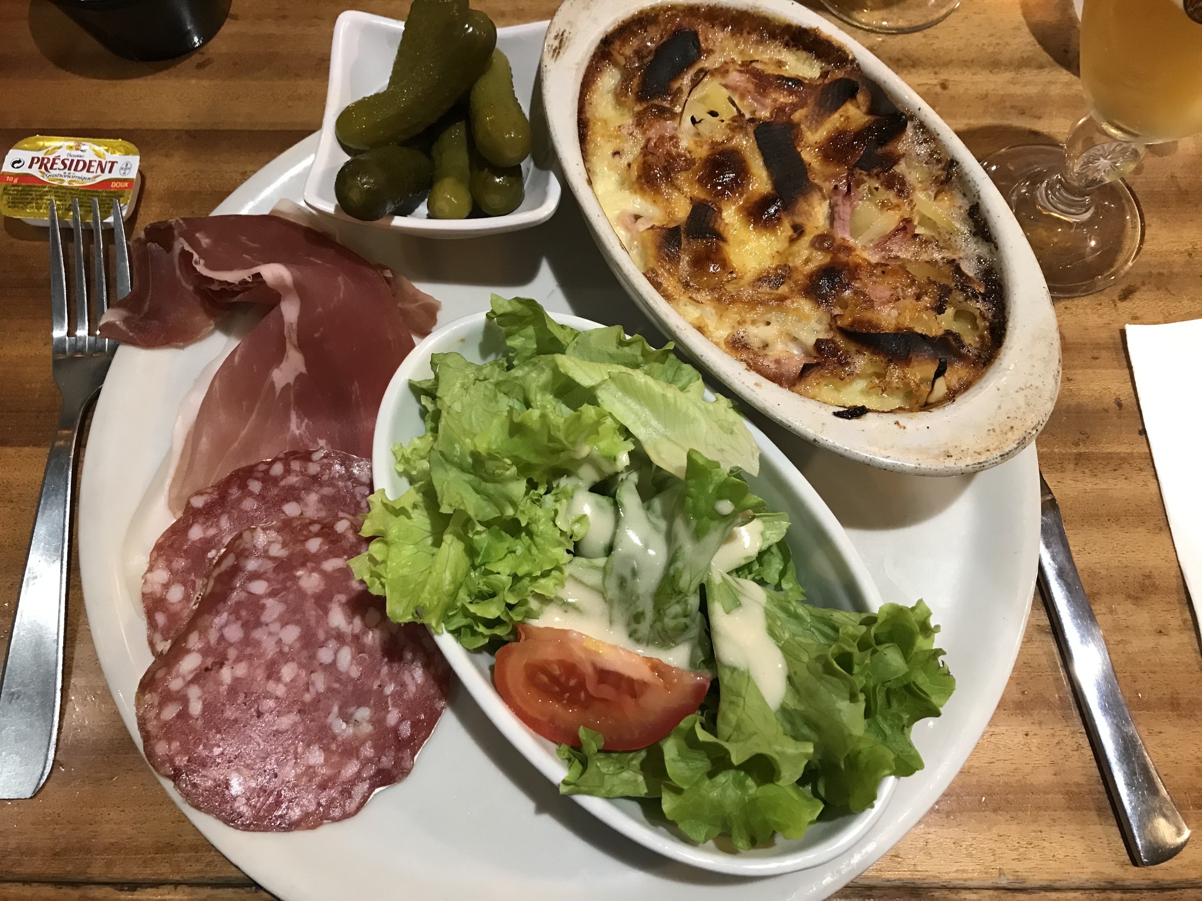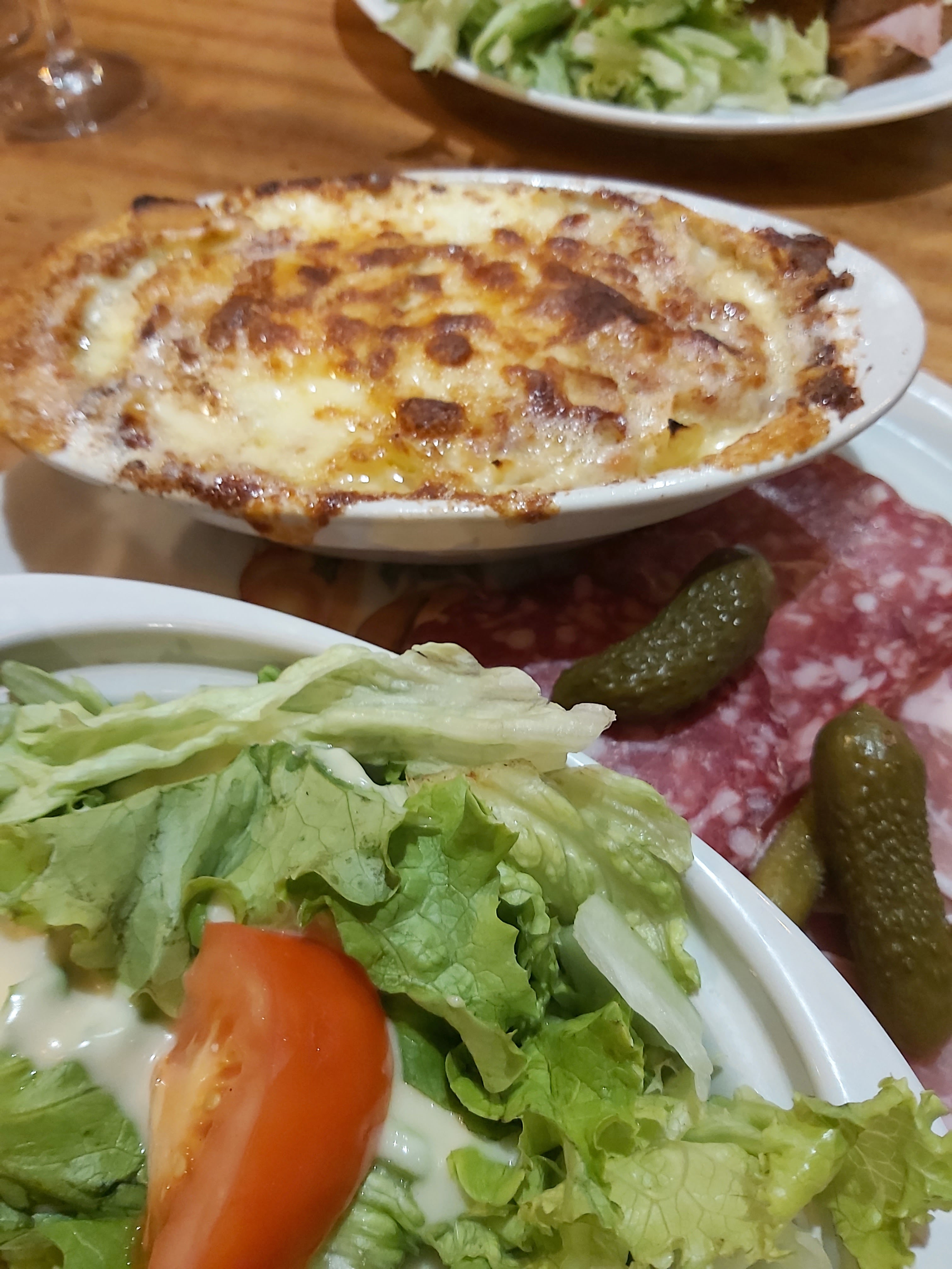 Tartiflette plutôt bonne, et copieuse. On aurait apprécié un peu plus de charcuterie. Honnête