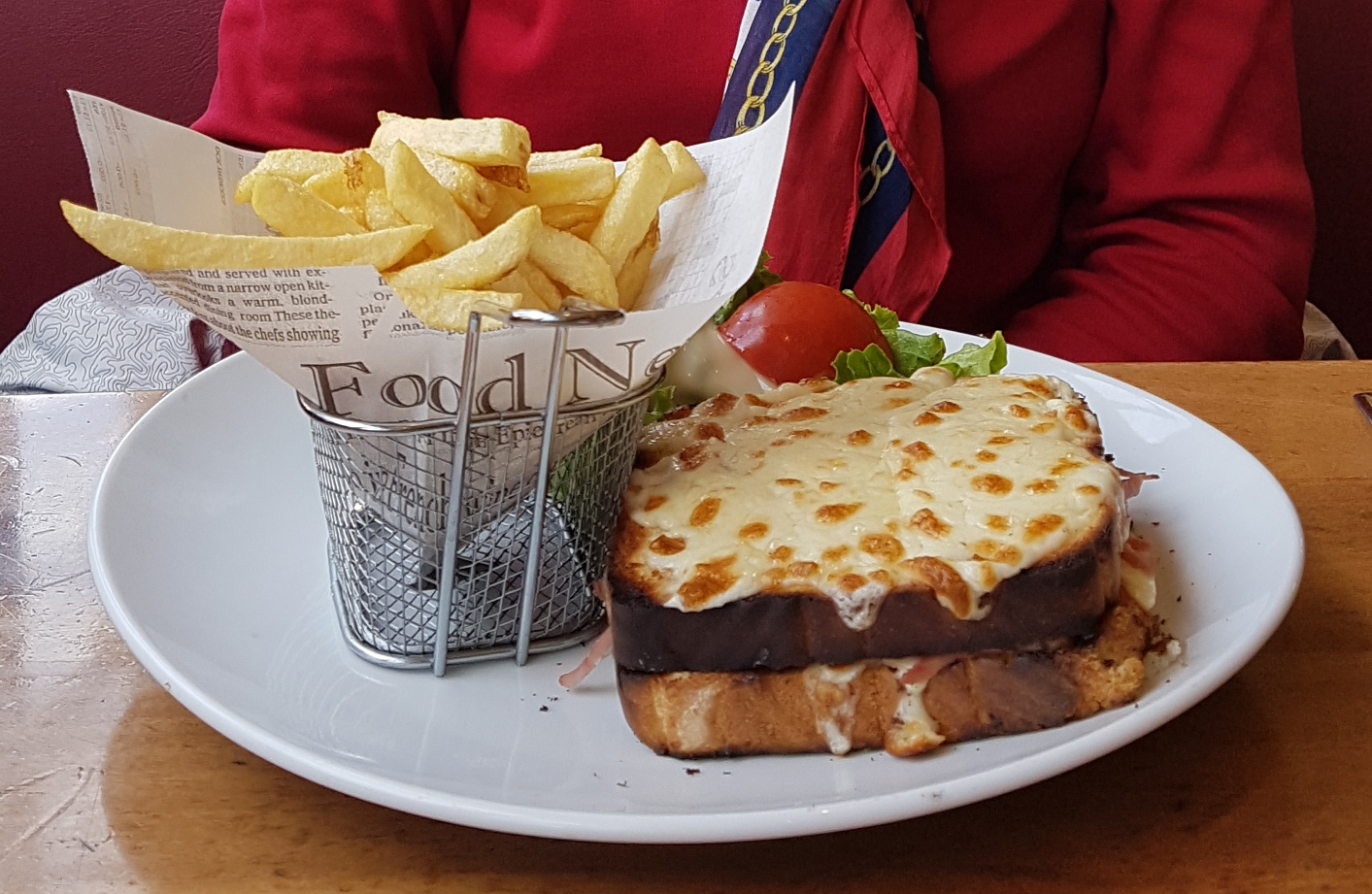Halte dans ce pub pour manger un croque monsieur. Ce fut une déception, frites pas cuites, salade d’accompagnement avec des morceaux noirs déjà cuit par le temps. Je pensais vraiment trouvé mieux, c’est dommage
