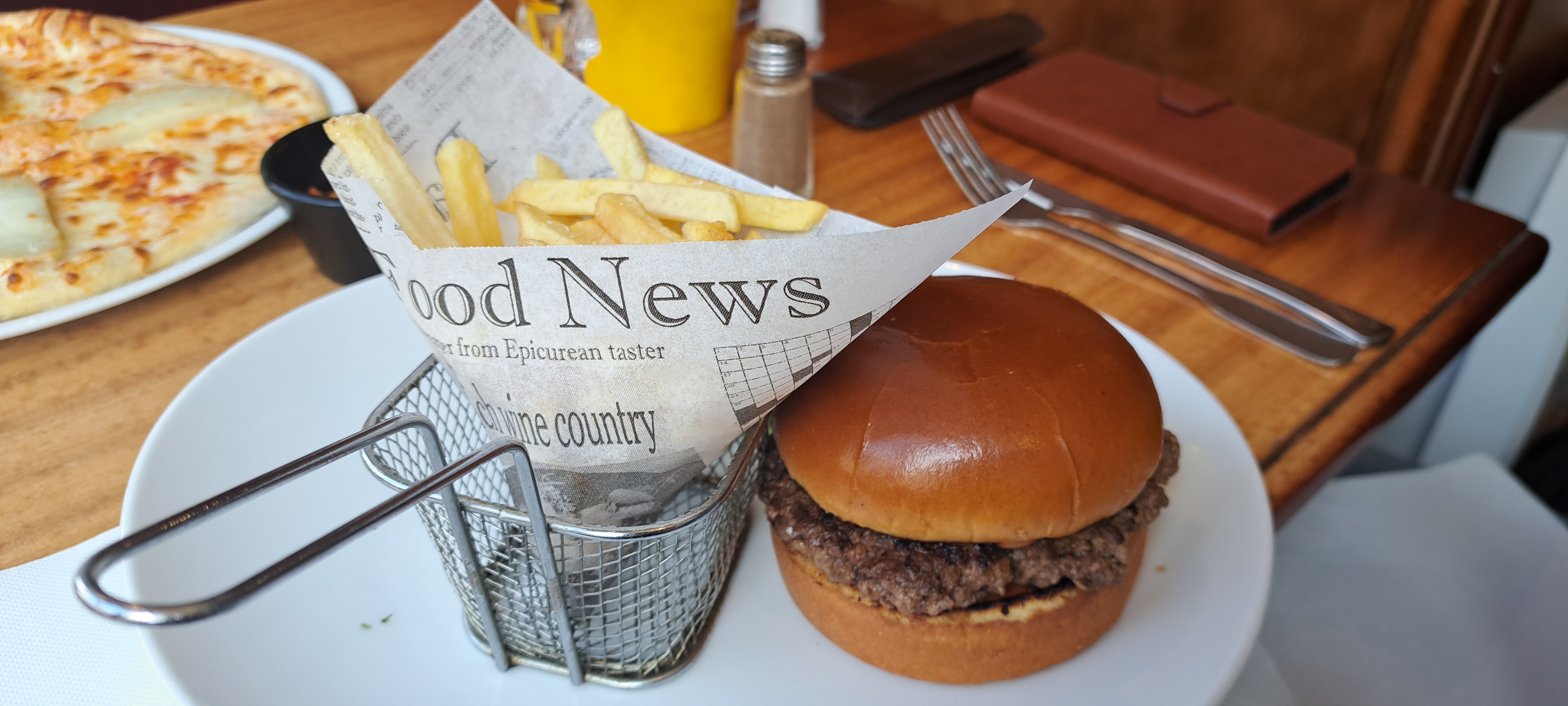 Nous avons commandé un burger XXL à partager par deux personnes et ils nous ont généreusement offert 2 burgers moyens pour un meilleur partage. Egalement avec des frites et de la salade en plus. Nous avons adoré et nous reviendrons certainement :)