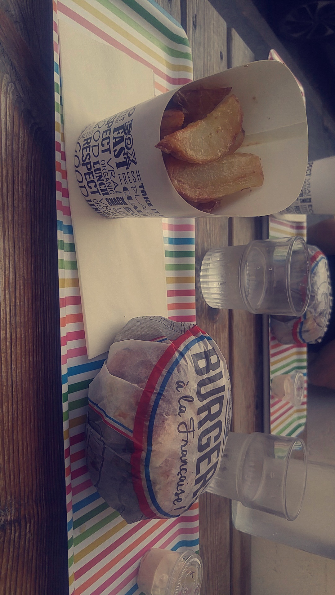 A la base j'étais juste venu manger un Burger, mais le serveur m'a dit je cite Écoute mon Berlou, ce n'est pas rentable si tu prend pas de frites avec. N'ayant pas plus faim que ça, j'ai refusé gentiment quant soudain le patron est venu est m'a défié au bras de fer. Les frites étaient bonnes.
