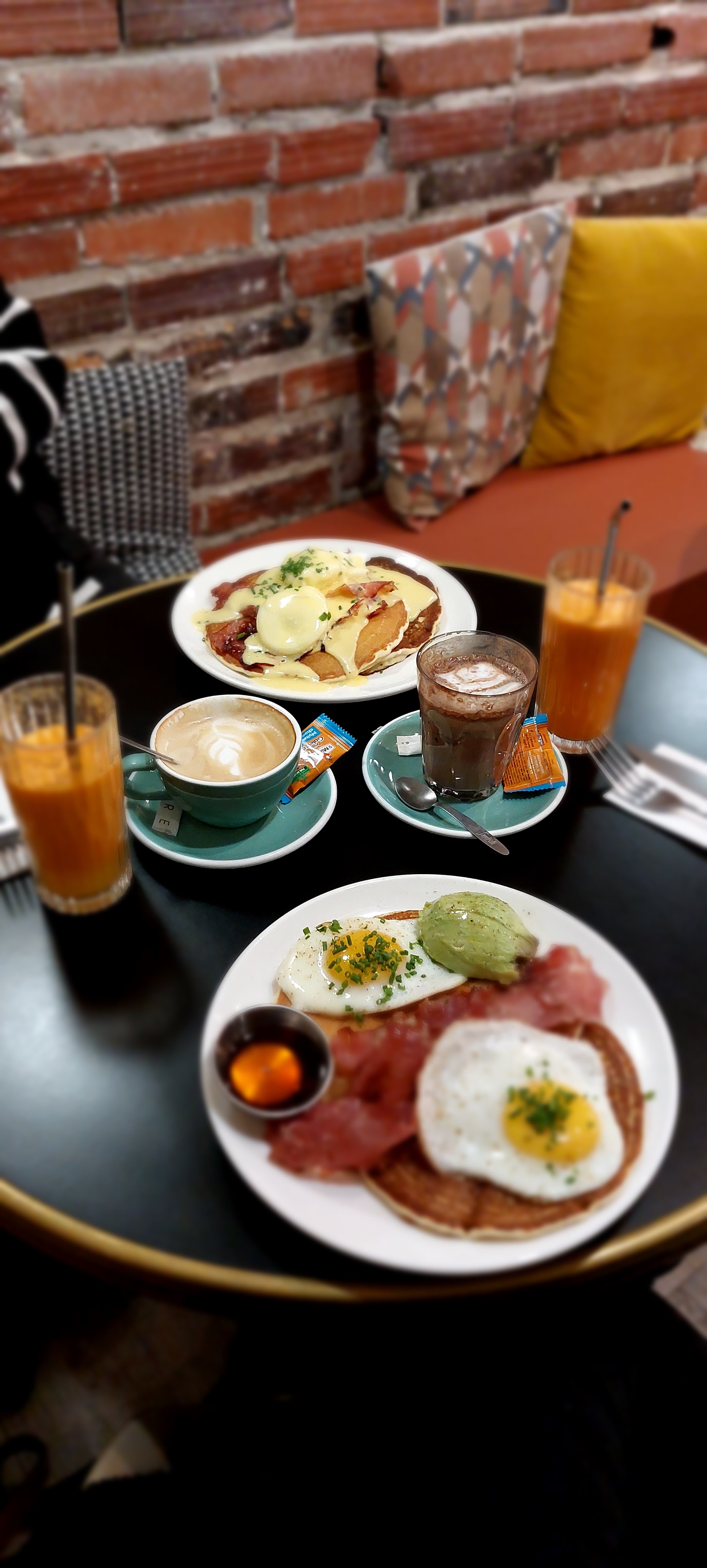 Très bon petit déjeuner. Les pandcakes oeuf bacon excellent. Jus d orange maison ex... On m a recommandé cette adresse, que je recommande vraiment . 4 adultes et 2enfants de 2ans. Lieu cosy joli. Serveuses , serveurs très sympathique.