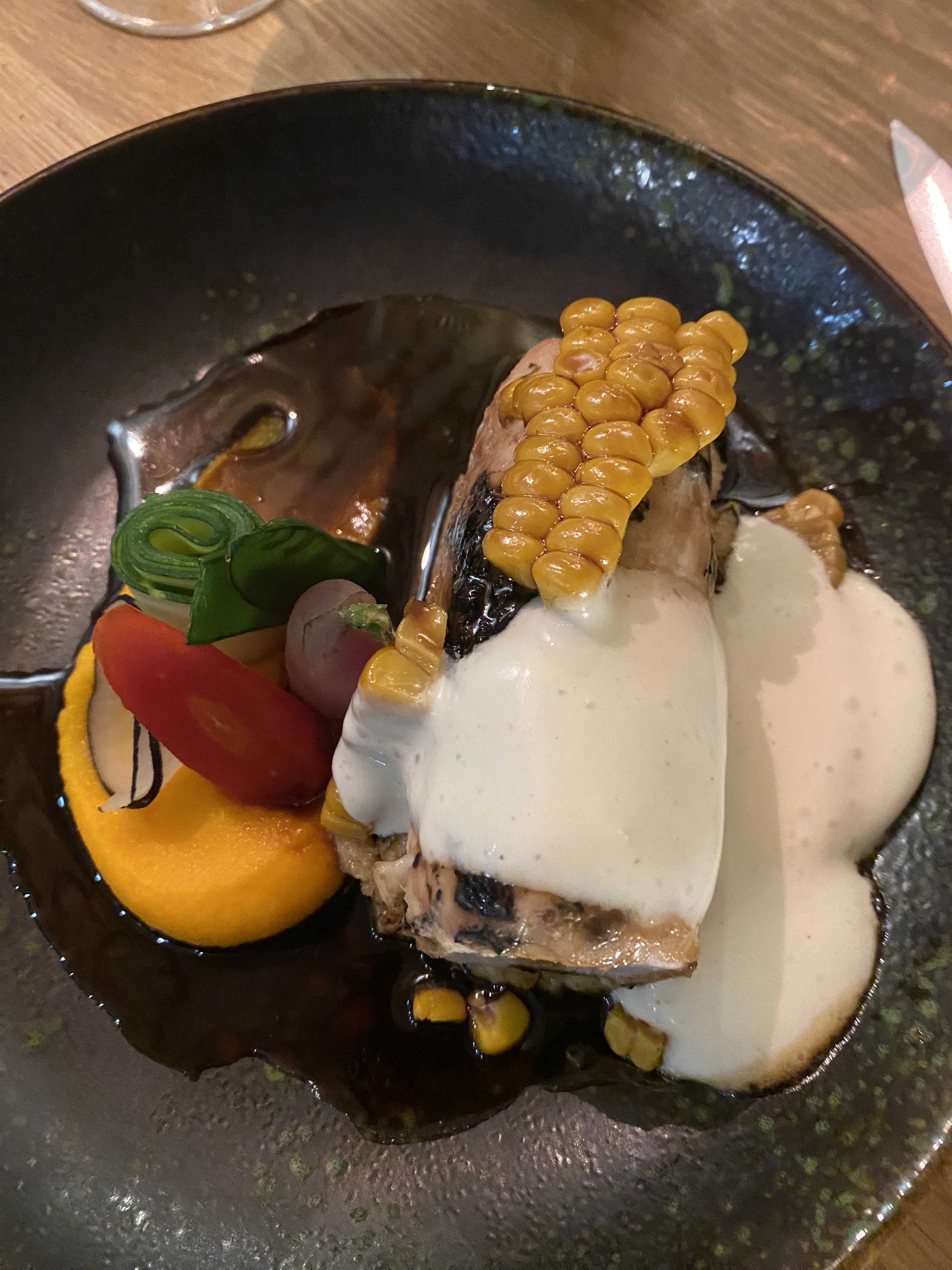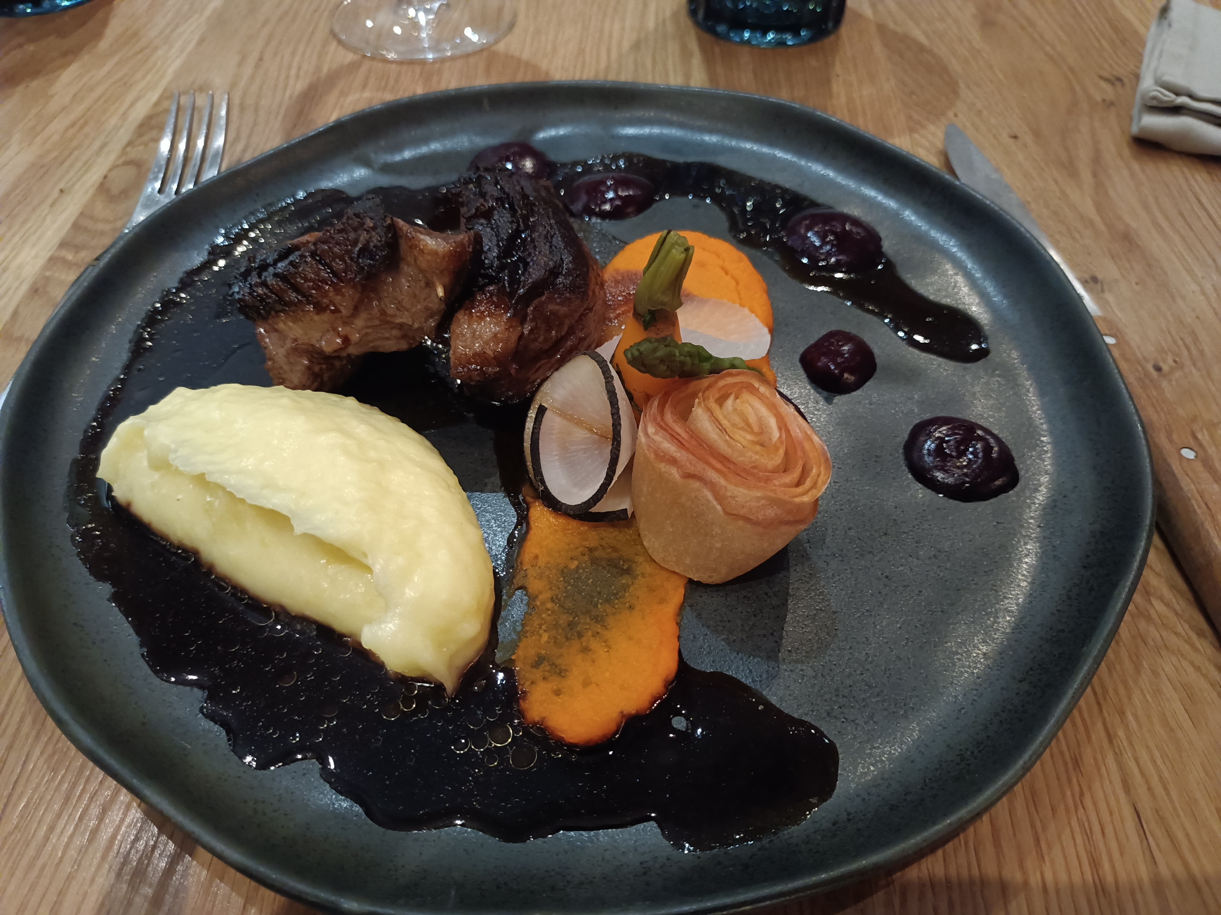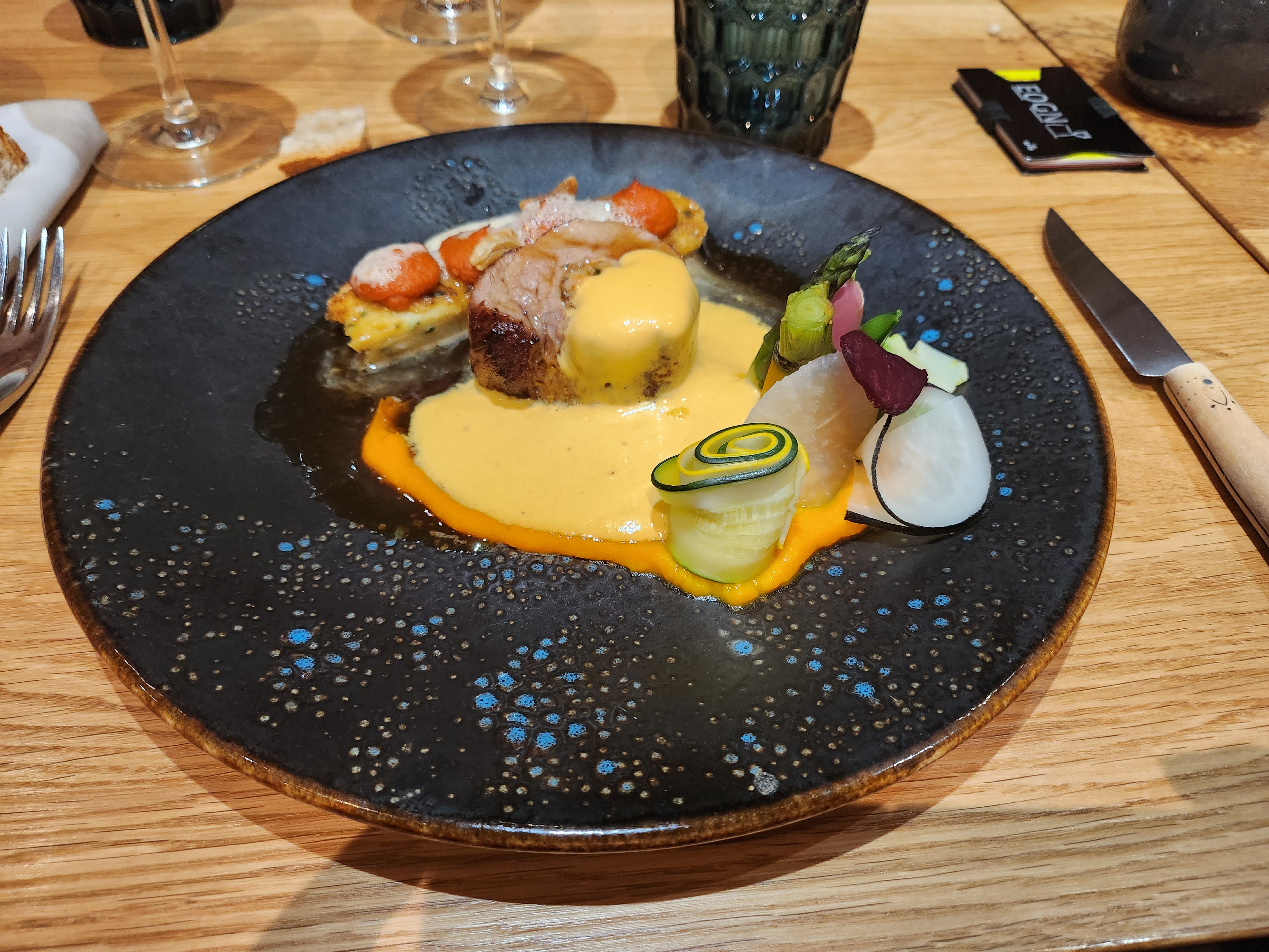 Une cuisine élaborée et très bonne. On sent qu’il y’a une certaine recherche de la part du chef afin de concevoir des plats aux milles et une saveurs. Peut être un peu de trop de mélange sur certains plats, mais dans l’ensemble ça reste EXCELLENT 😁 De l’amuse bouche au dessert, en passant par le vin… on se régale !!