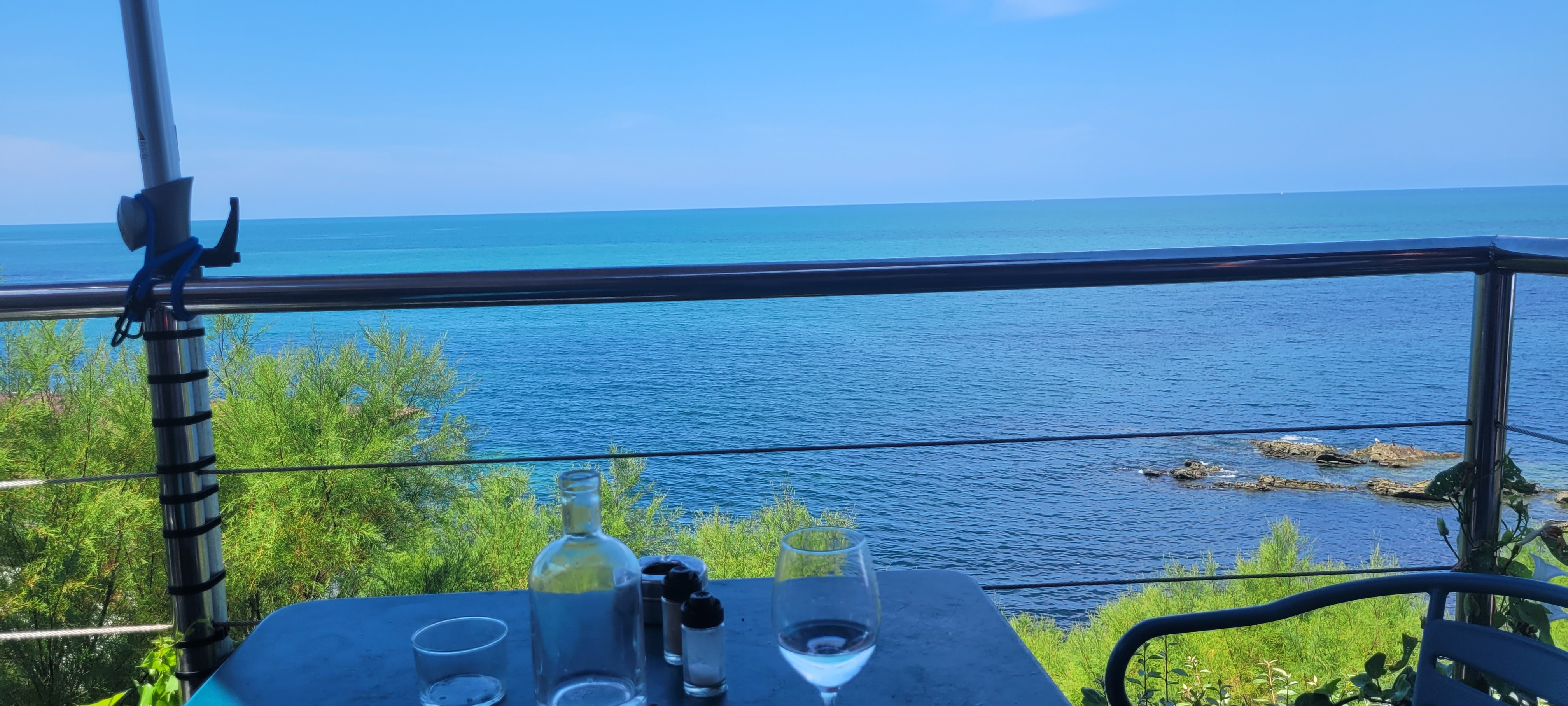 Bel endroit avec vue sur la mer. Il fait bon boire et manger sur l agréable terrasse.