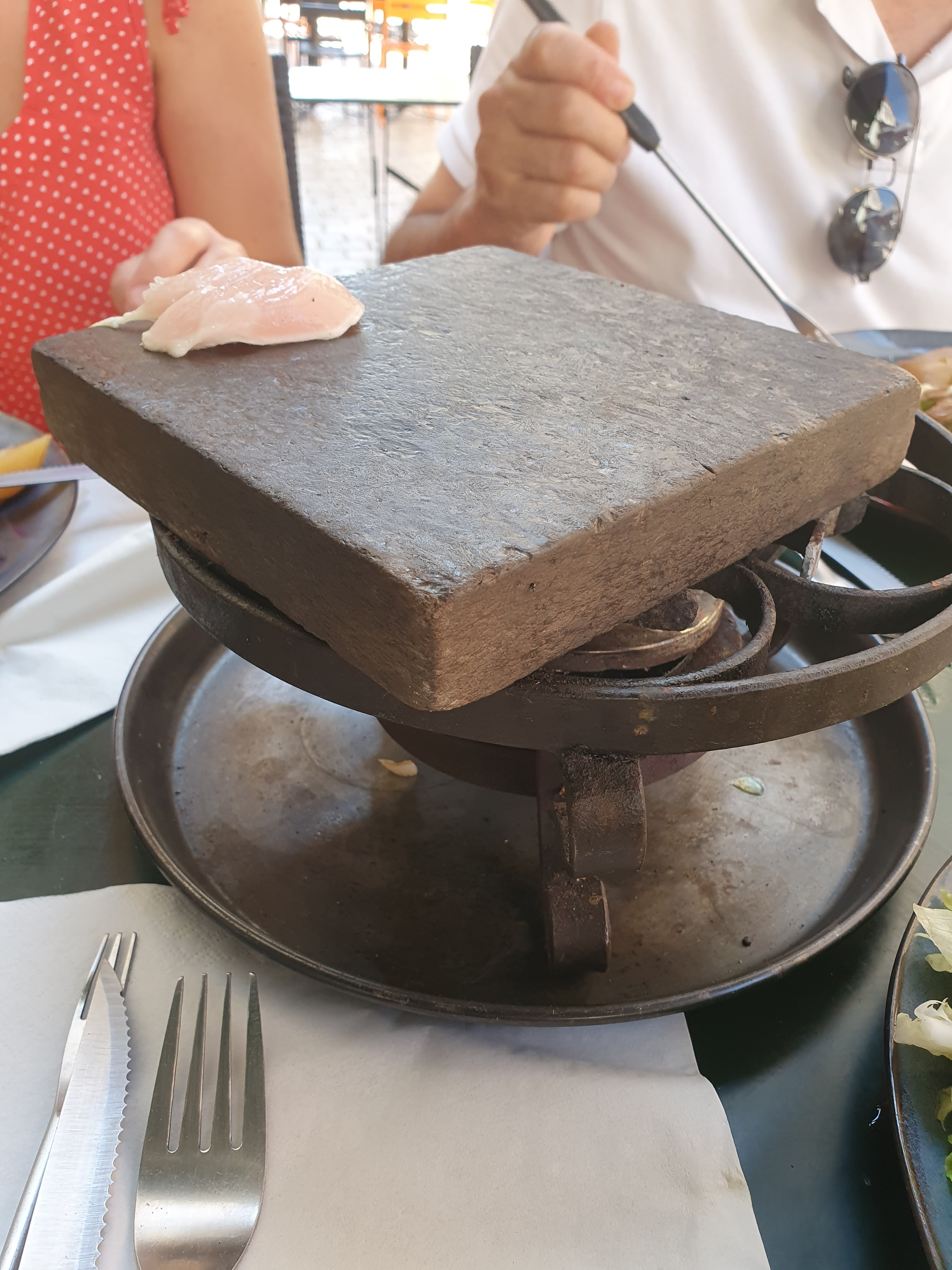 Assez déçus. - les pommes de terre baignent dans l'huile... Elles sont imbibées par la graisse et sont complètement ramollies. - la pierre de cuisson est plutôt petite. Lorsque l'on est plusieurs à se partager une pierre pour cuire la viande et les légumes, ce n'est pas pratique. - nous n'avons pas trouvé ça fou dans l'ensemble. Il y a un potentiel mais il faudrait peaufiner la cuisine, surtout la cuisson des pommes de terre. Le service est correct.