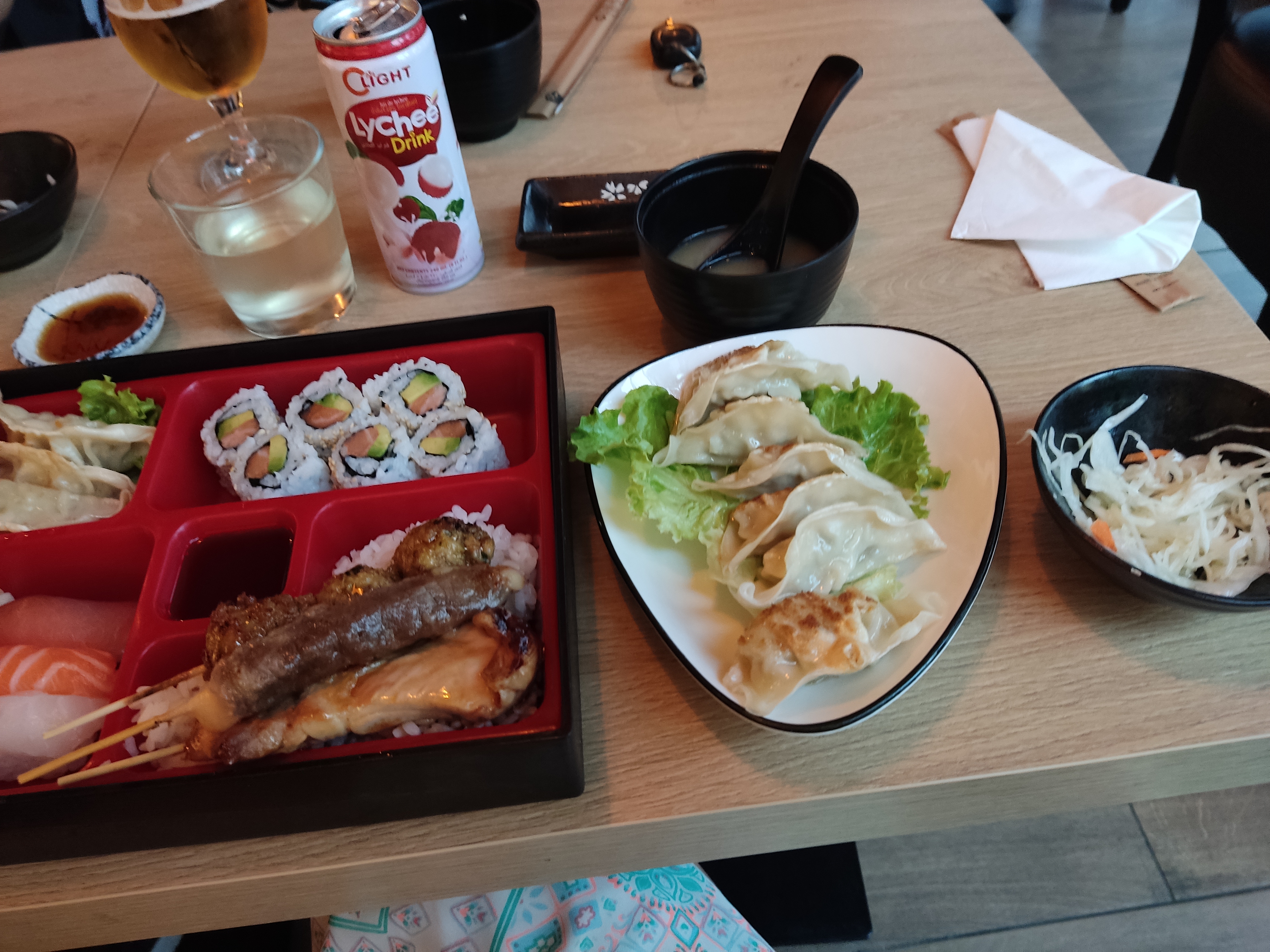 Restaurant très agréable avec une bonne ambiance tamisée, calme et paisible. Un personnel et service de qualité avec un serveur et une serveuse extrêmement souriante et chaleureux. Nourriture japonaise de qualité et servi très copieusement dans une vaisselle soignée. Je recommande vivement ce restaurant, un des meilleurs rapport qualité prix dans le secteur.