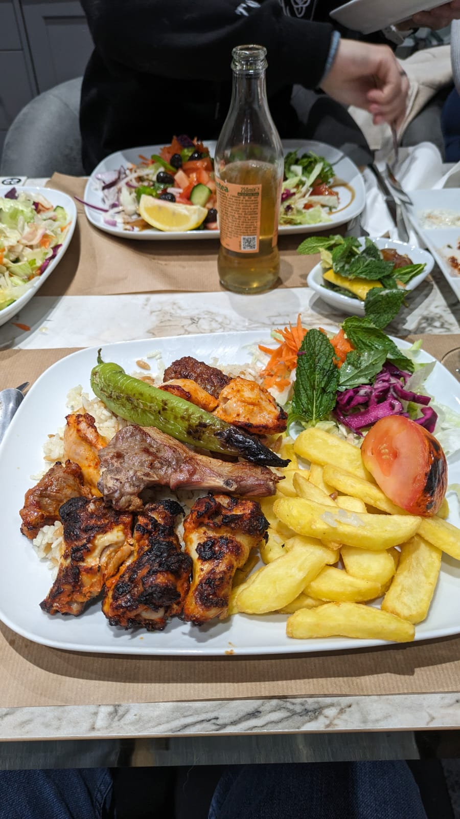J’y suis allé avec ma femme pour rompre le jeûne. À notre arrivée tout est déjà prêt : une soupe au lentilles, vraiment très bonne, accompagnée de mezzé froid. Ensuite nous avons commandé une grillade mixte: la viande était d’une qualité incroyable et l’assiette était vraiment bien garnie.Pour finir en beauté le baklava et le riz au lait qui vient mettre la petite touche sucré de la soirée.Pour résumer je recommande vivement!!!!!!!