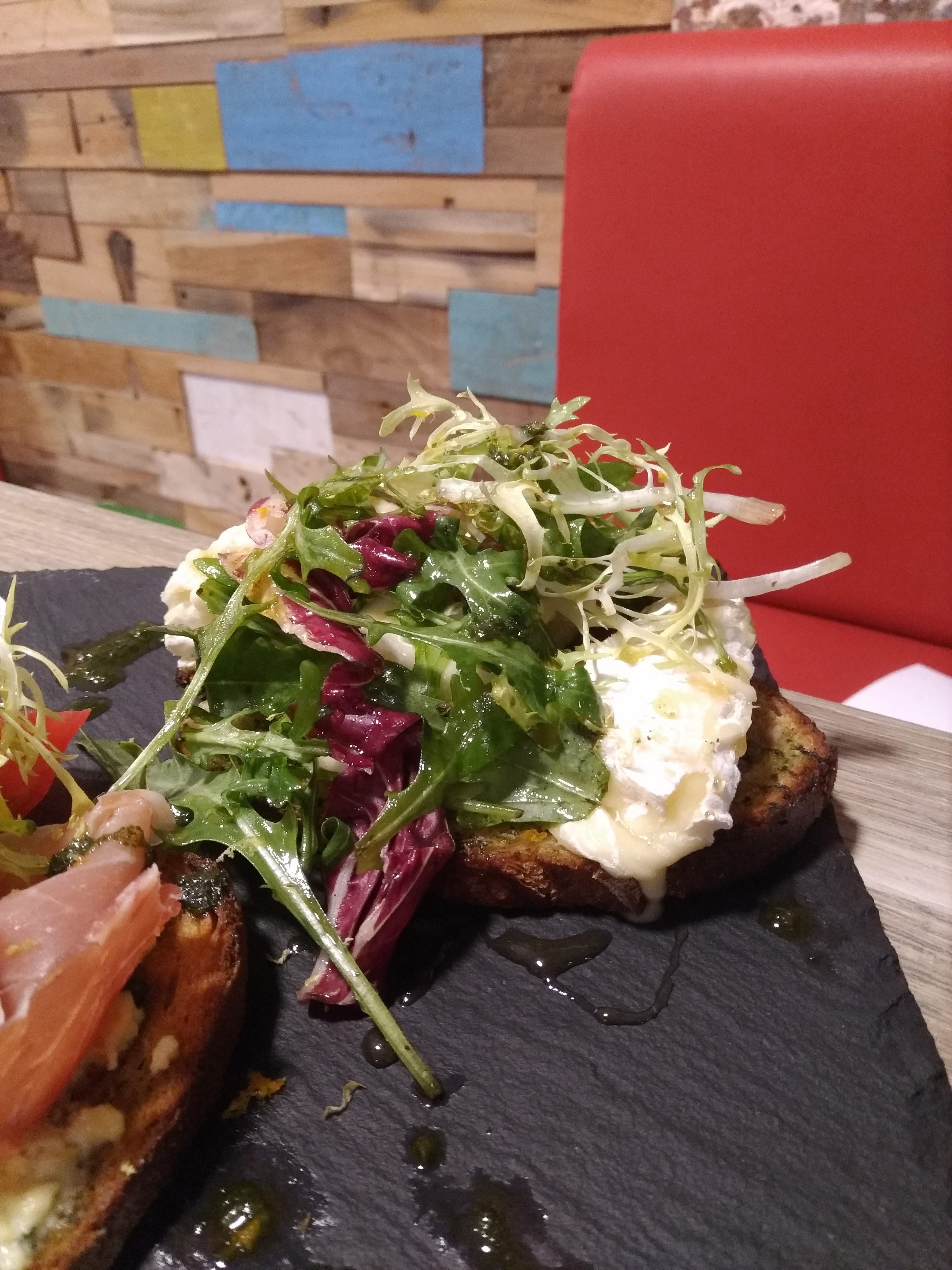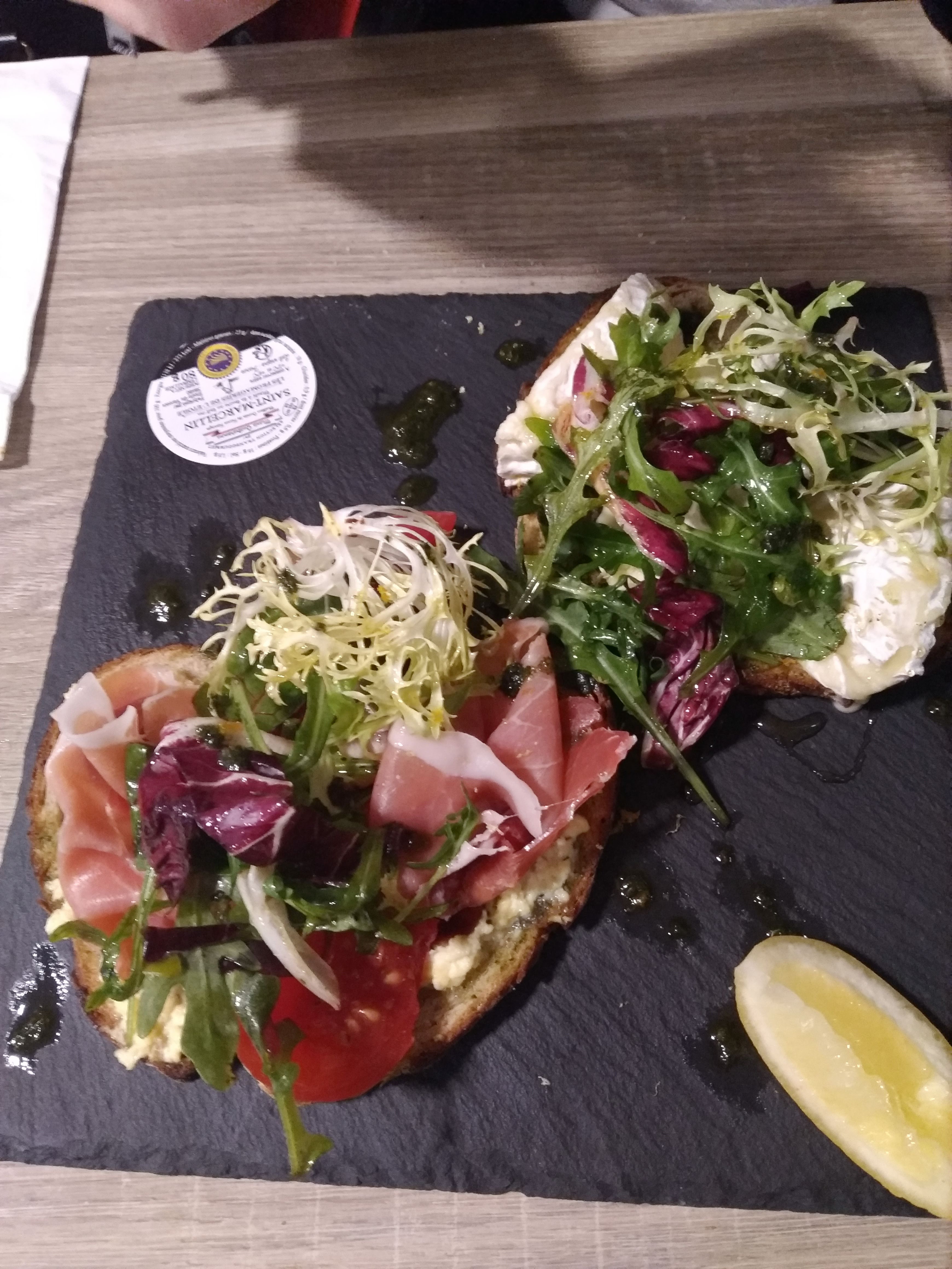 Endroit original, calme et très ensoleillé ! Parfait pour un déjeuner en terasse. L’accueil était parfait et l’entrée ainsi que le désert etaient excellents.