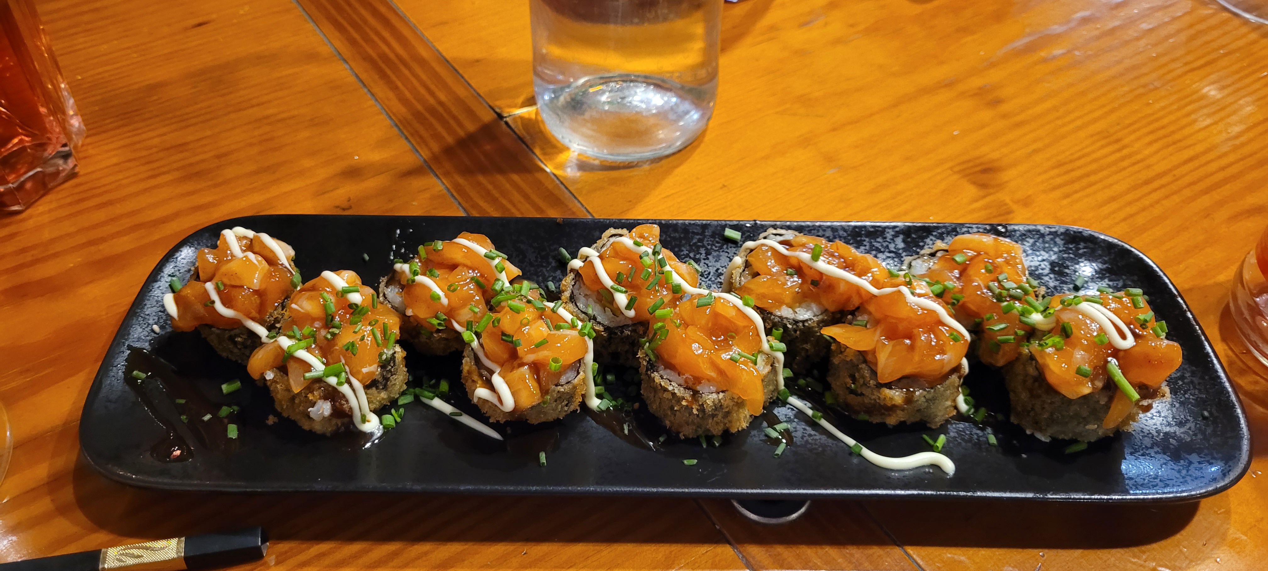 Nous avons prit un plateau à partager ainsi que des rouleaux de printemps. Malgré un temps d'attente un peu long (normal au vu de notre commande), les sushis étaient très bons, nous avons été moins fan des rouleaux de printemps. Personnel très serviable, et le lieu est très joli.
