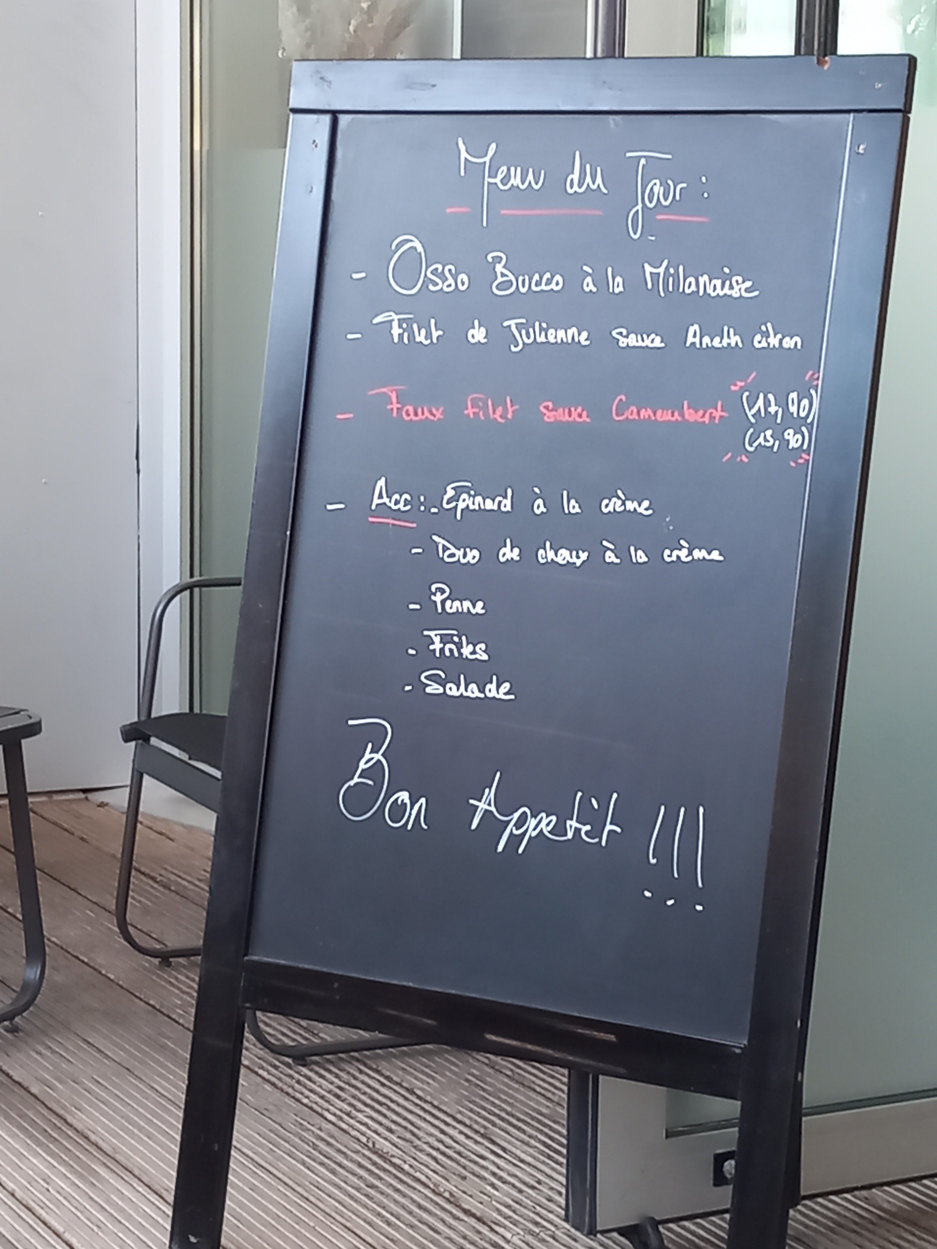 Superbe restaurant je recommande avec prix abordable 15,90€ le menu normal avec entrée plat du jours desserts et 6€ le menu enfant avec entrée,plat du jour pour les enfants et dessert. A venir essayer si vous-en avez l’occasion,Bonne journée.