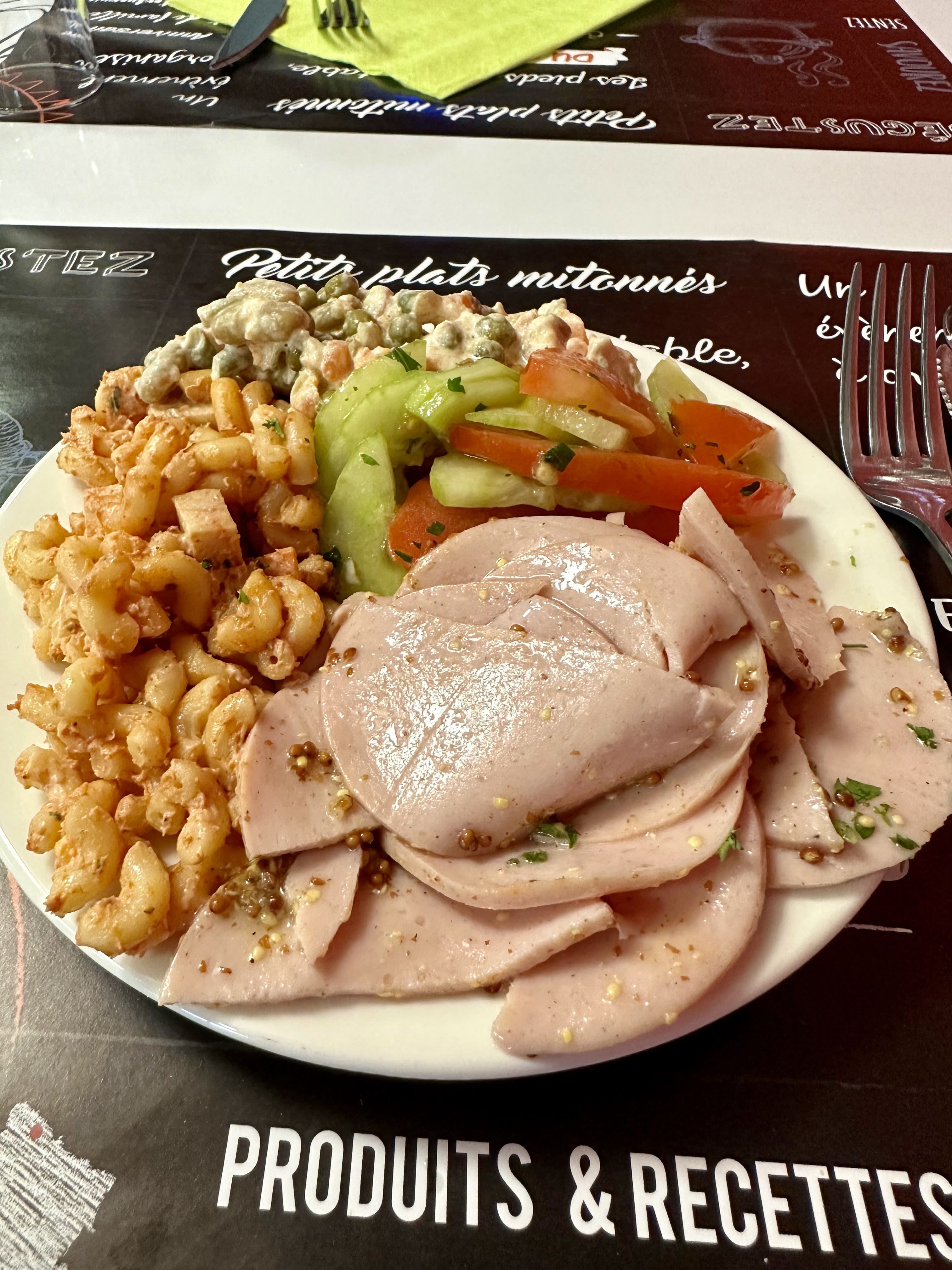 Véritable choix pour les entrées,plats pas franchements chauds ,mais bons ,malheureusements services un peu lent.