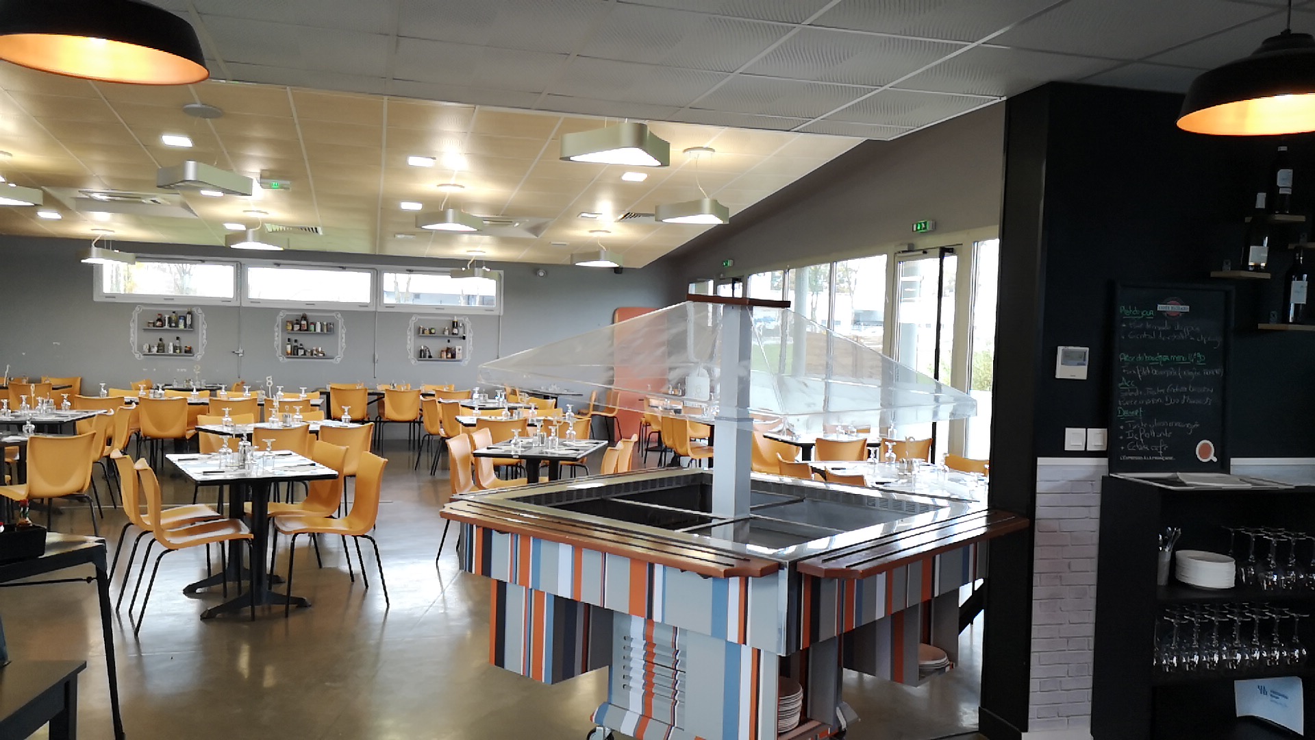 Grand parking, restaurant et bar très propre, buffet d'entrée variée, on a bien mangé, serveurs sympathique et souriant,.