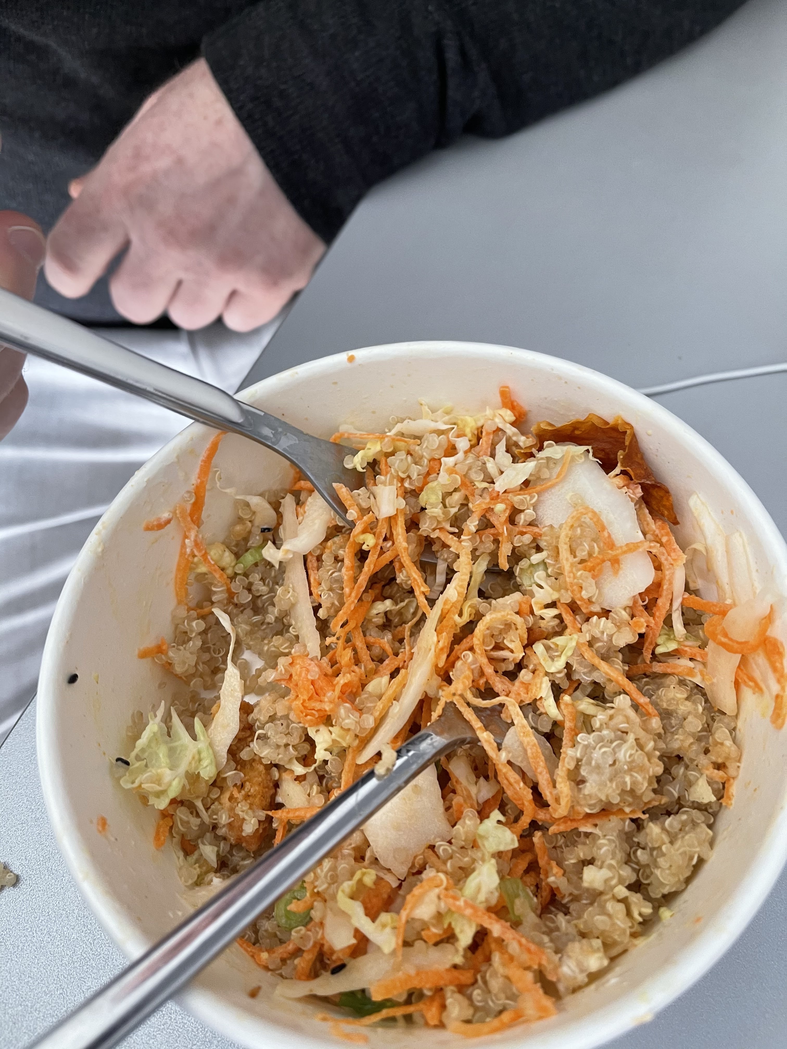 Alors, par où commencer ? Je ne peux que recommander à 1000 % ! Enfin un peu de nouveau dans Courbevoie, bien dommage que Covid soit là ! Car l’endroit est très design ! Les produits sont frais et bons (préparé en face du client). Je ne peux que vous souhaitez la bienvenue et une bonne continuation. En résumé, je n’ai qu’un seul mot à dire: FONCEZ ! Ps:les chips de patates douces maison une douceur indescriptible.