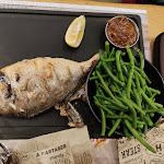 1ere visite dans ce restaurant et très bonne surprise. Le cadre est très sympa, le restaurant accueillant, autant que le personnel très souriant et très pro. Nous avons opté pour une sangria en apéritif et un plat unique : filet de bar haricots verts et salade et steak au poivre avec frites. J'ai adoré le filet de bar parfaitement cuit à la braise alors qu'à la base j'avais commandé la daurade entière. Petite confusion de la part de la serveuse (ou manager même je pense) au moment de la prise de commande mais lorsque je lui ai signalé elle a immédiatement proposé très gentiment de le changer mais comme j'avais hésité avec le filet de bar j'ai décliné son offre et je ne regrette pas car je n'en ai pas laissé une miette ! Les haricots verts étaient vraiment très bien cuisinés et salade parfaitement assaisonnée. Quant au steak au poivre et aux frites, ça reste un grand classique mais le plat était très bon, viande tendre et bien cuite et frites croustillantes comme il faut. Le service a été rapide, les serveuses attentionnées et très agréables. La carte est très variée et tout a l'air savoureux, gourmand et appétissant. Pressée d'y retourner quand j'en aurai l'occasion. Si vous passez par Parly 2, n'hésitez à sortir du centre commercial et faire quelques mètres pour vous poser le temps d'un repas. Pas de photos à poster tellement tout nous a semblé alléchant dès que nous avons été servis au point d'attaquer immédiatement nos assiettes ☺️😔