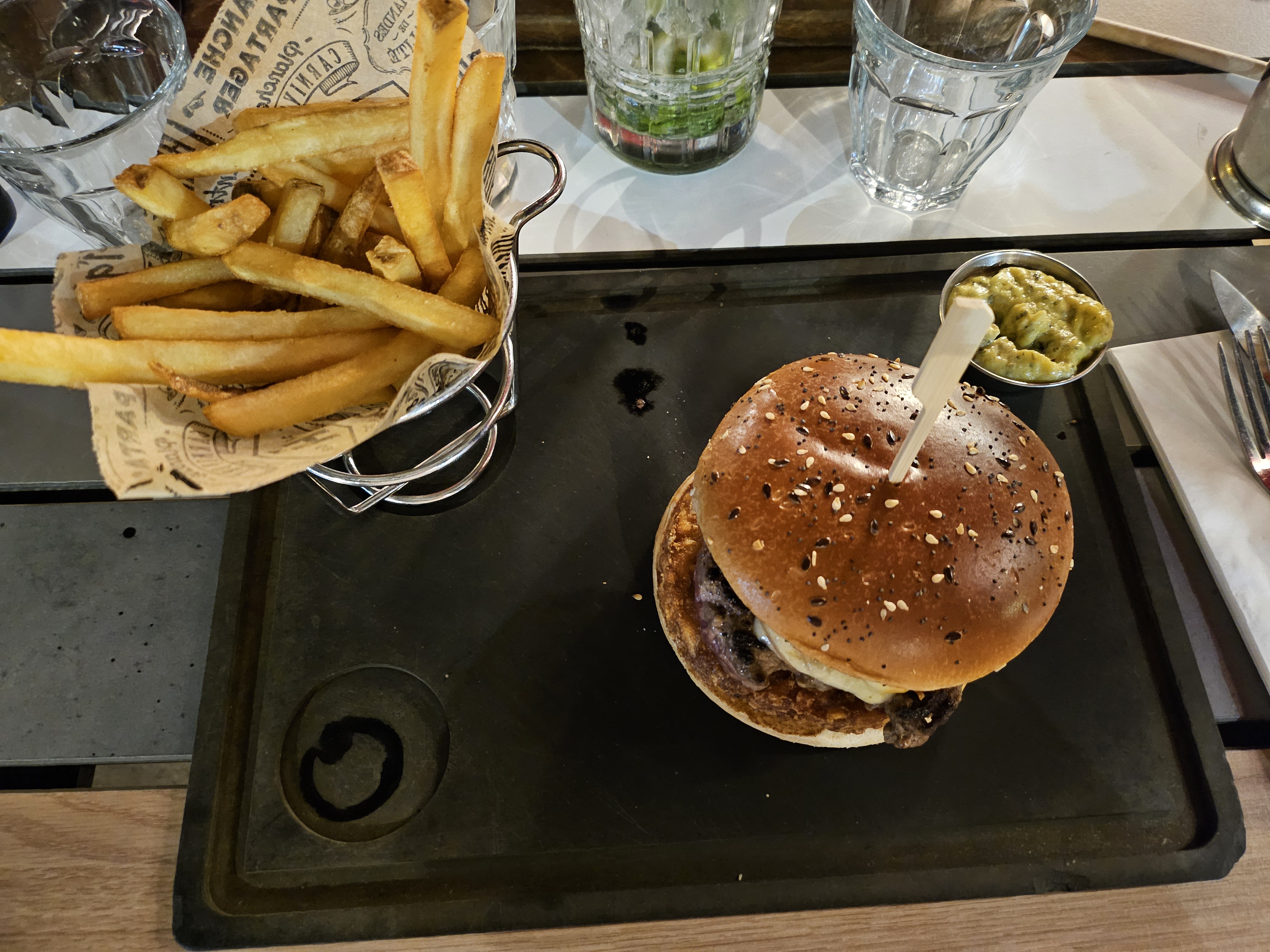 -Arrivé à 12h30 -Prise de la commande à 13h30 -Servi à 14h -Fin du repas à 15h finalement Tout ça pour un burger et un café gourmand Je conseille pour la nourriture de bonne qualité, mais à éviter tout jour férié ou week-end, où vous attendrez 1h qu'on se souvienne que vous existez et qu'on daigne prendre votre commande