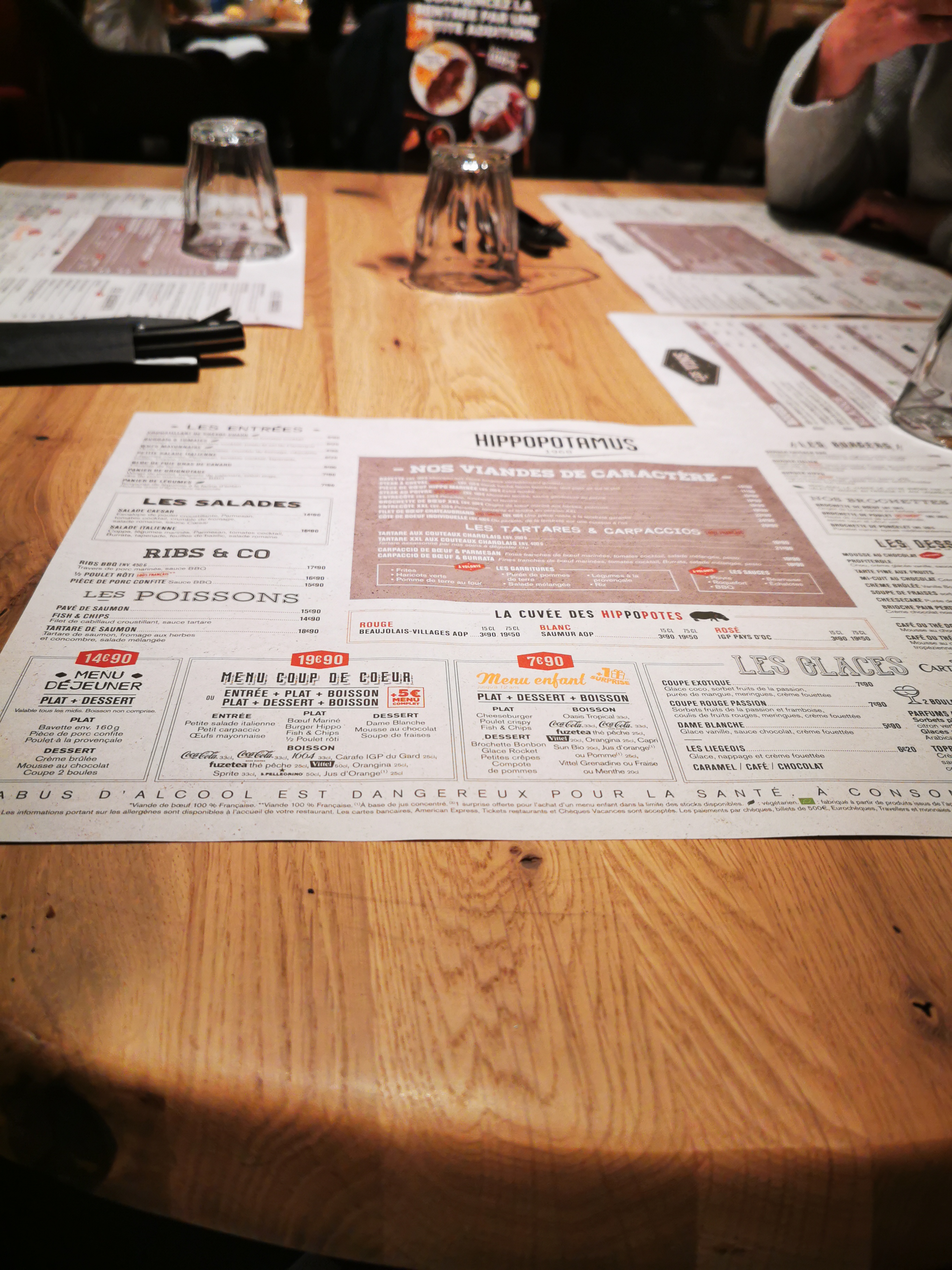 C’est Hippo, donc sans surprise, et c’est aussi pour cela qu’on y va. Mais la qualité et l’empressement du service, la qualité des viandes, et la générosité des desserts font qu’on y revient avec grand plaisir. Bon point (et vraie surprise) pour la qualité remarquable du burger du menu enfant, absolument délicieux avec son pain brioché. Ah oui, les enfants, l’autre argument qui tue. Pour eux, tout ici fonctionne, du sourire de la serveuse à la pochette surprise. Et vu le prix du menu enfant, même papa approuve.
